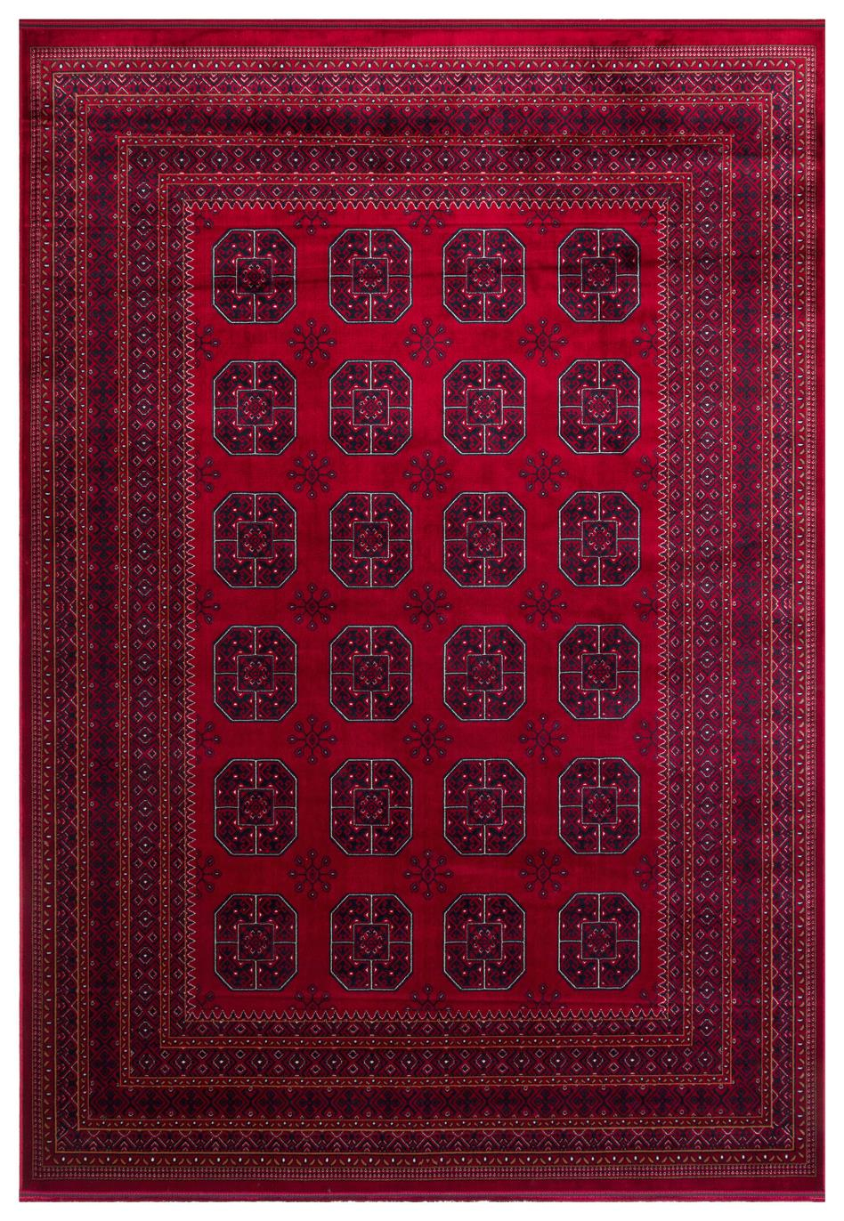 AFGAN DESENLİ KIRMIZI RENGİ VİSKON SIKI DOKUMA KAYMAZ TABANLI İNCE MAKİNE HALISI (HERAT-02)