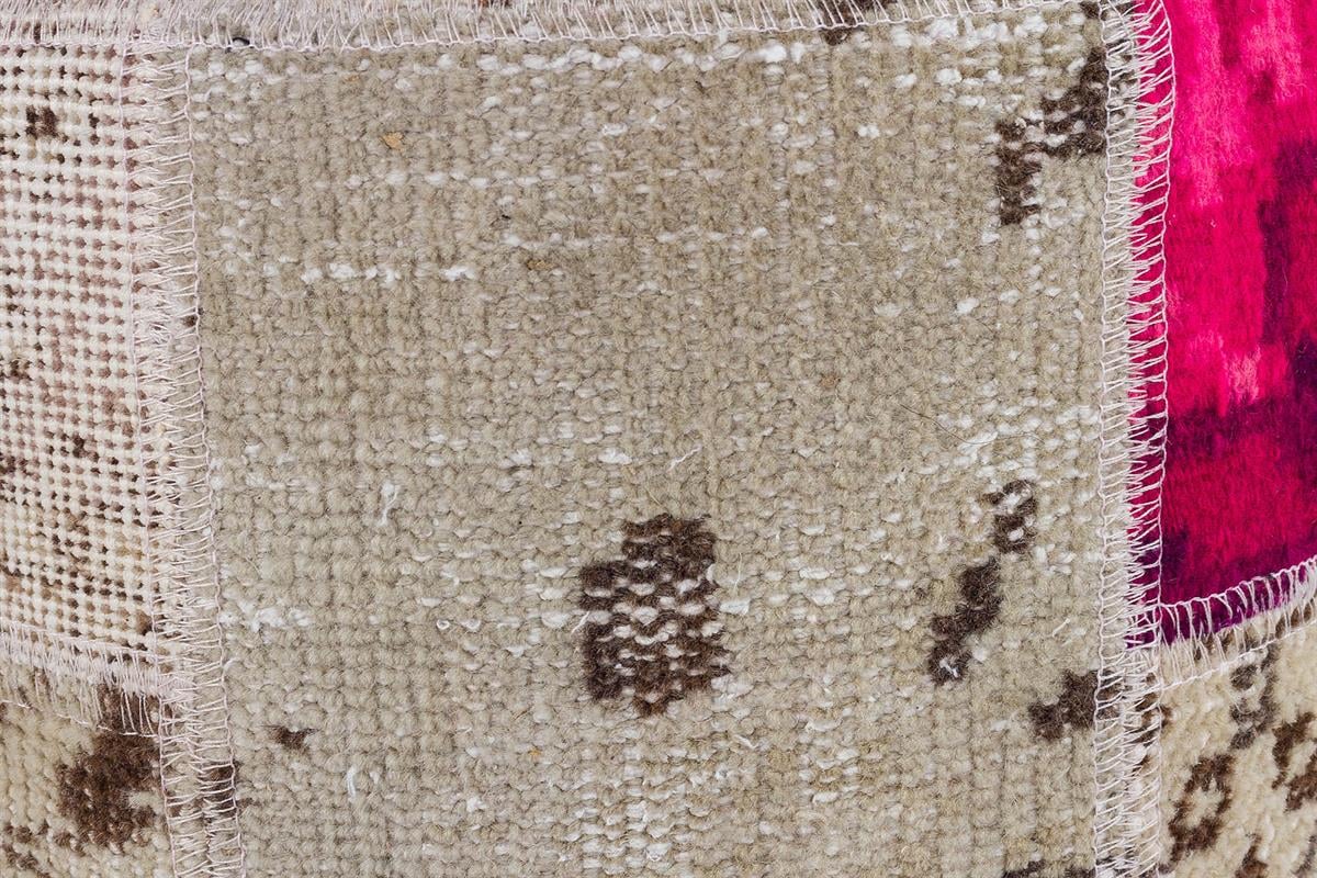 BEJ KARABAĞ KİLİM EL DOKUMA PATCHWORK YUVARLAK PUF