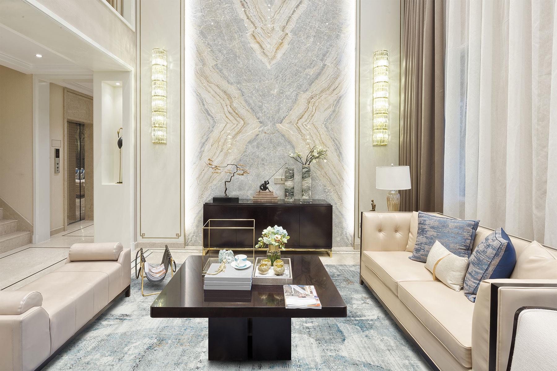 CREAM BLUE XW Yumuşak İpeksi Tuşeli Yüksek Alçak Oymalı Modern İnce Makine Halısı