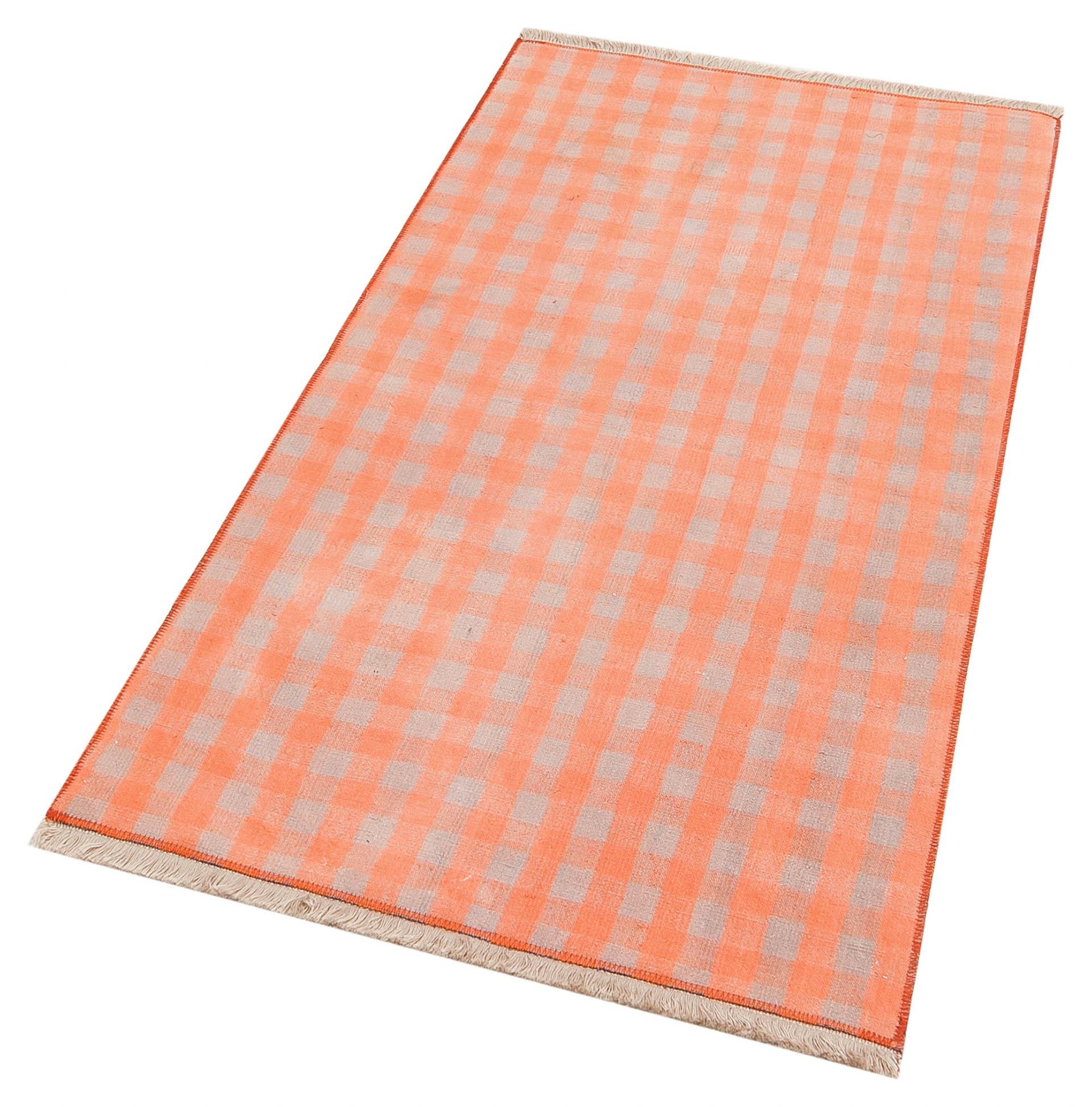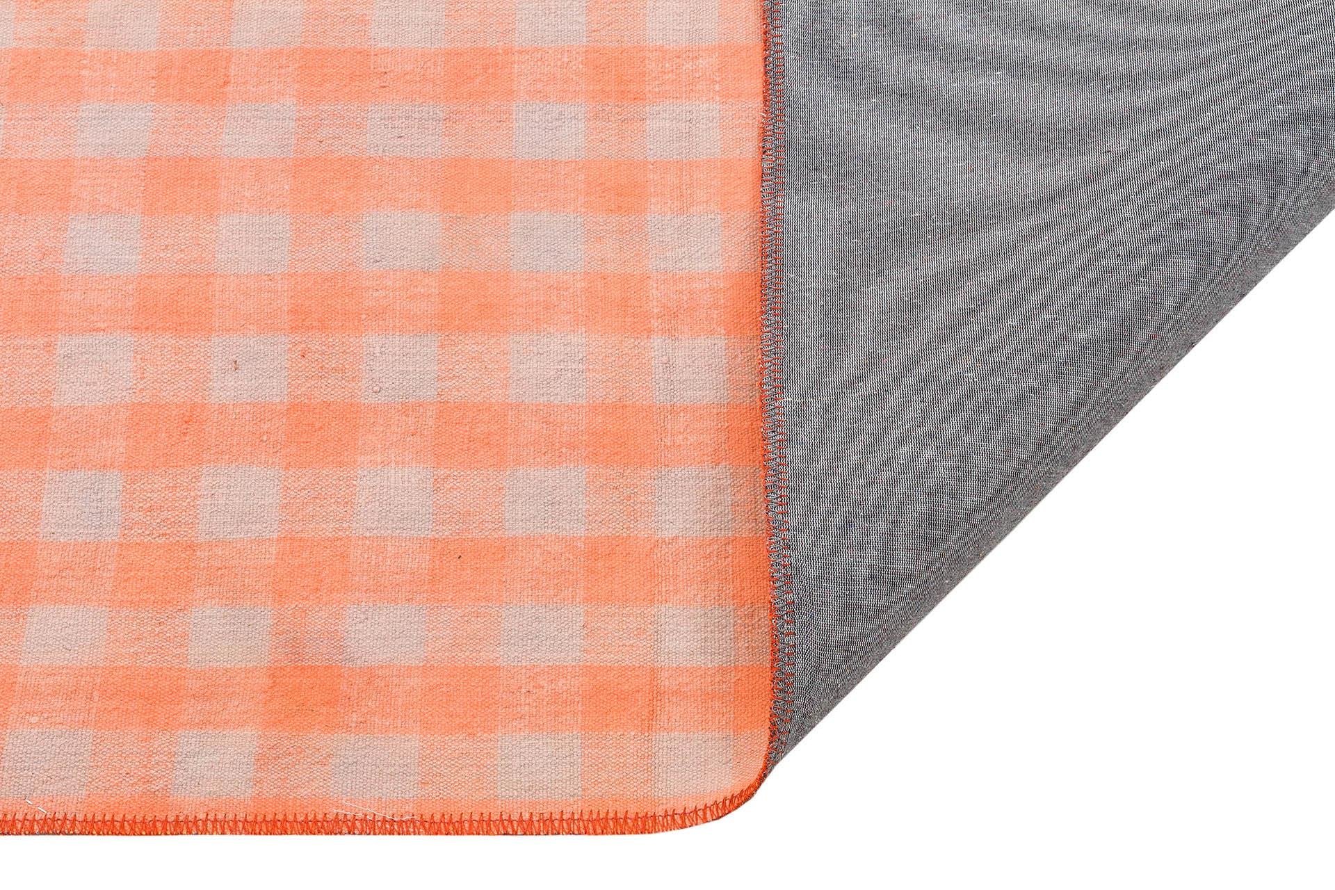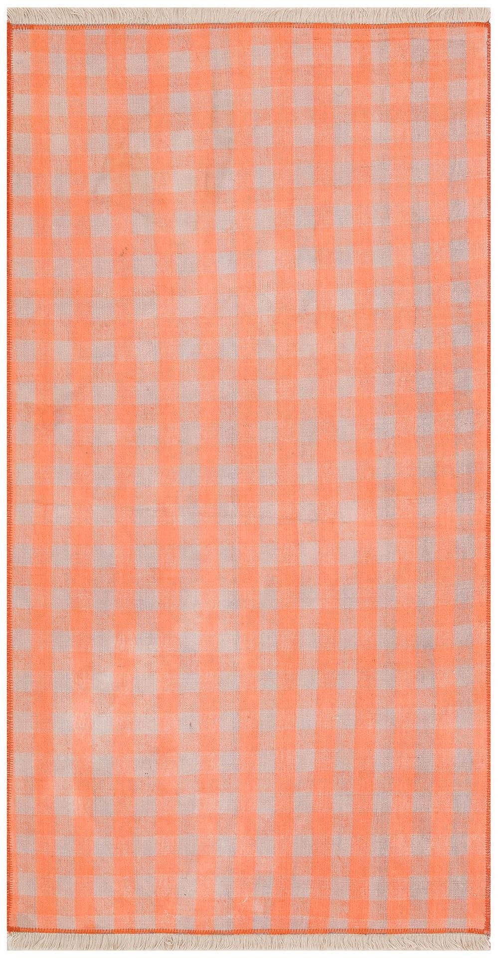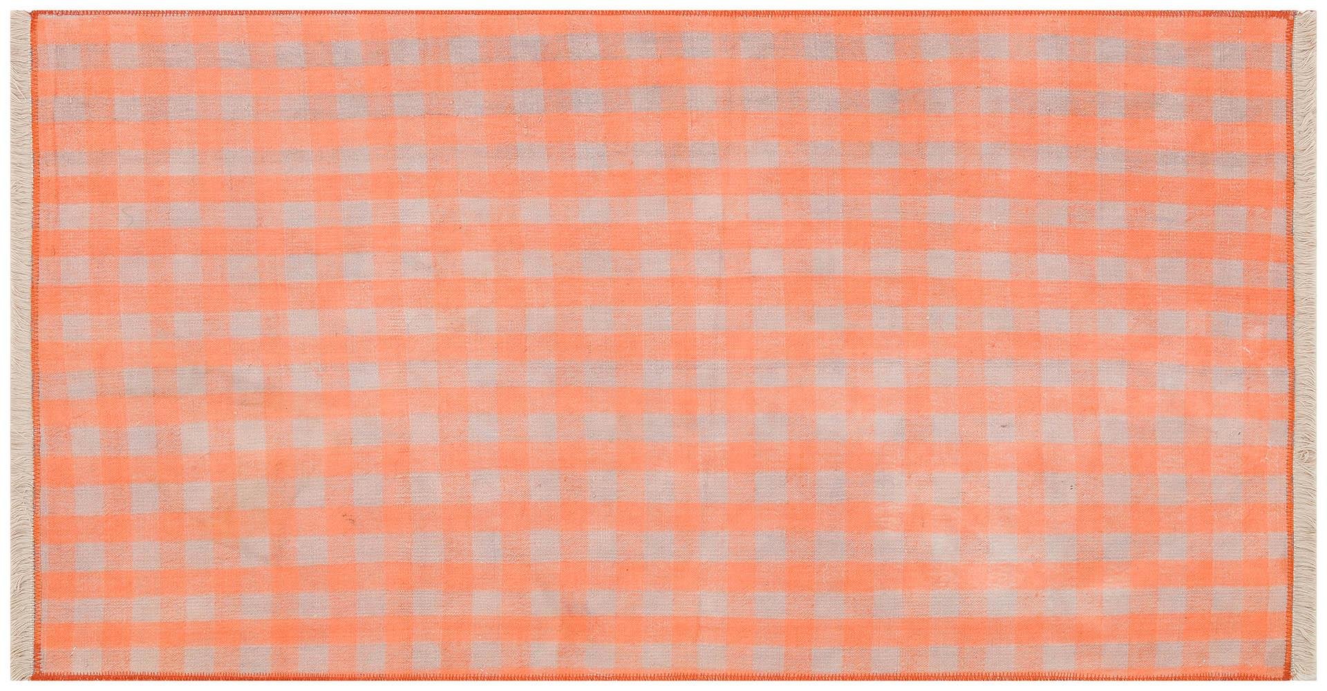 EL DOKUMA BAKİR RENGİ KARELİ DESEN KENDİR KİLİM (KL-11787)