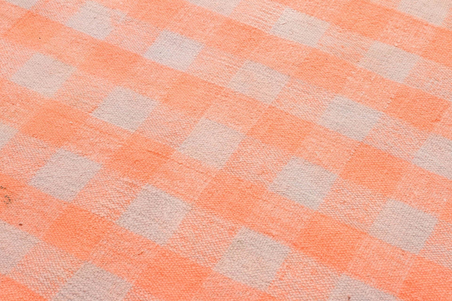 EL DOKUMA BAKİR RENGİ KARELİ DESEN KENDİR KİLİM