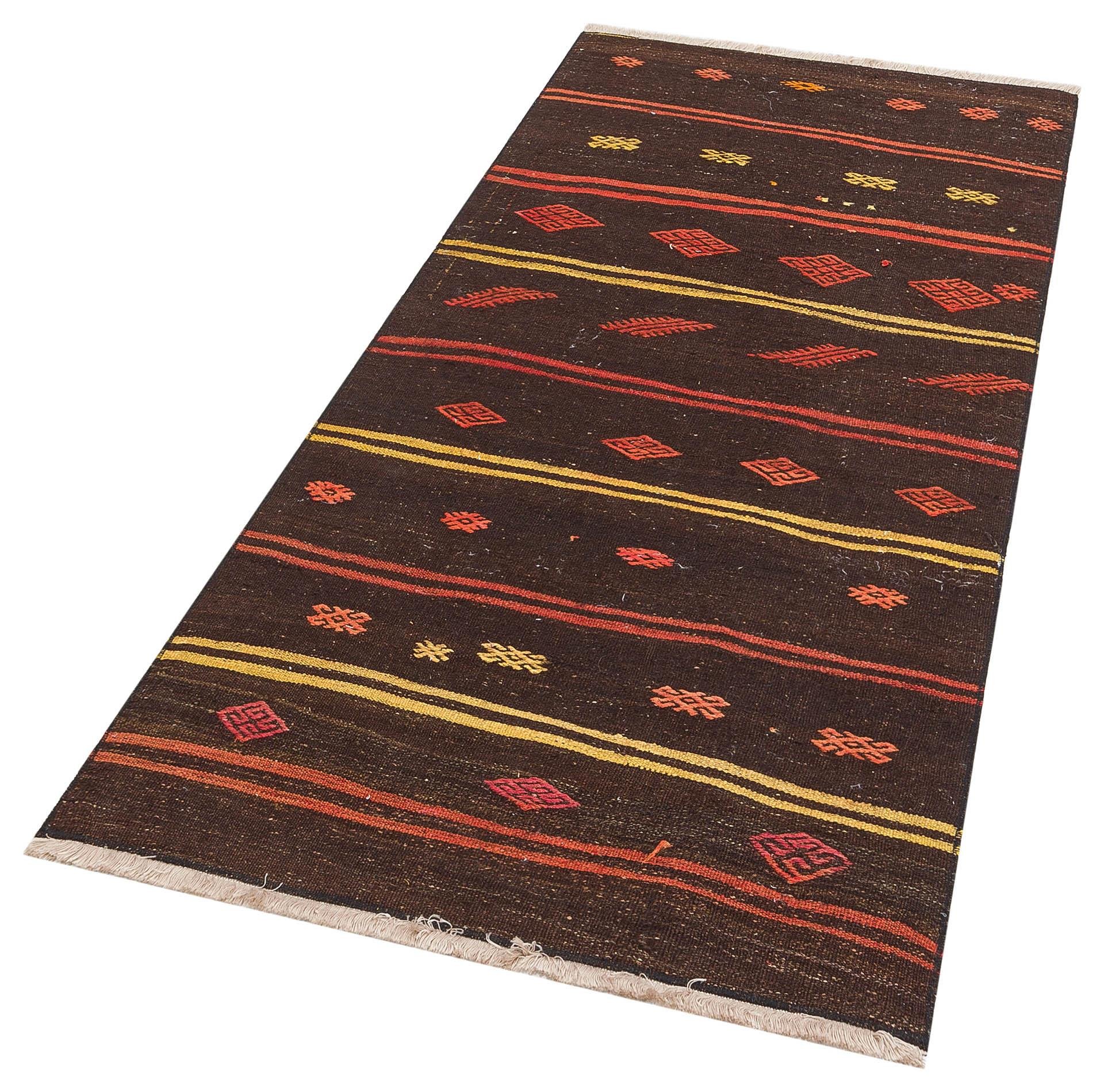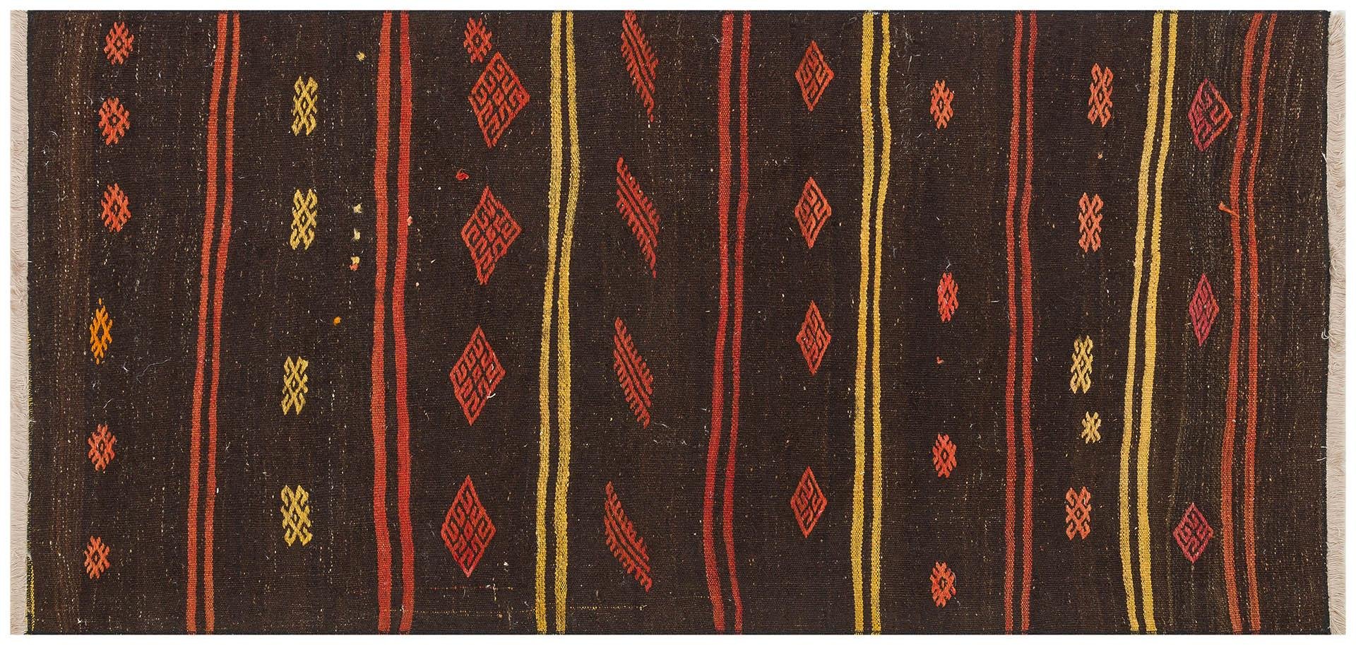 ANADOLU EL DOKUMA KİREMİT RENGİ ÇİÇEKLİ DESEN KEÇİ KİLİM (KL-4162)