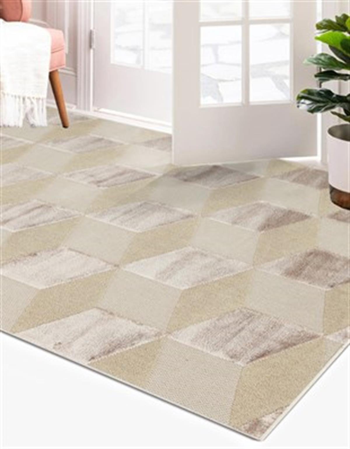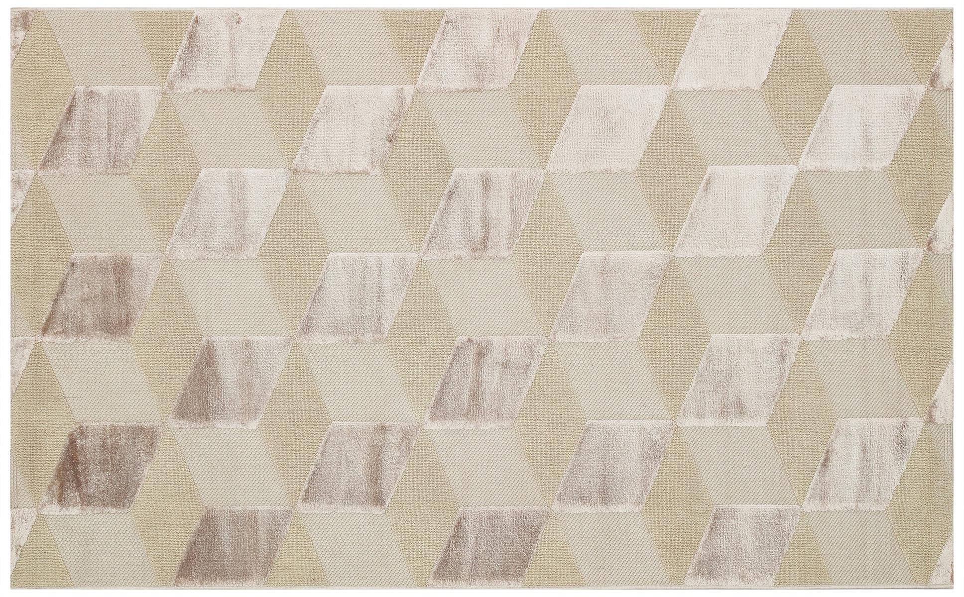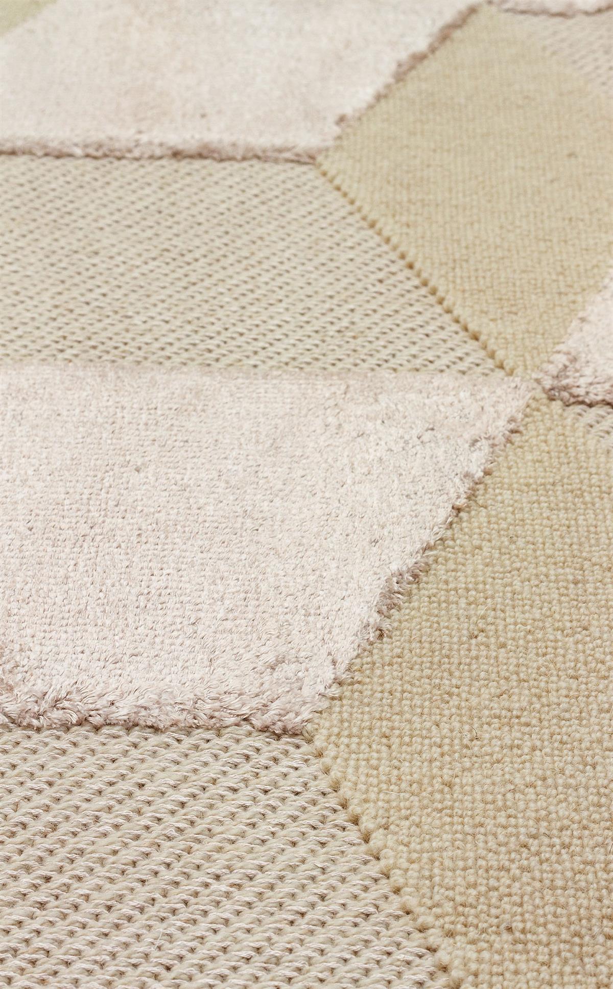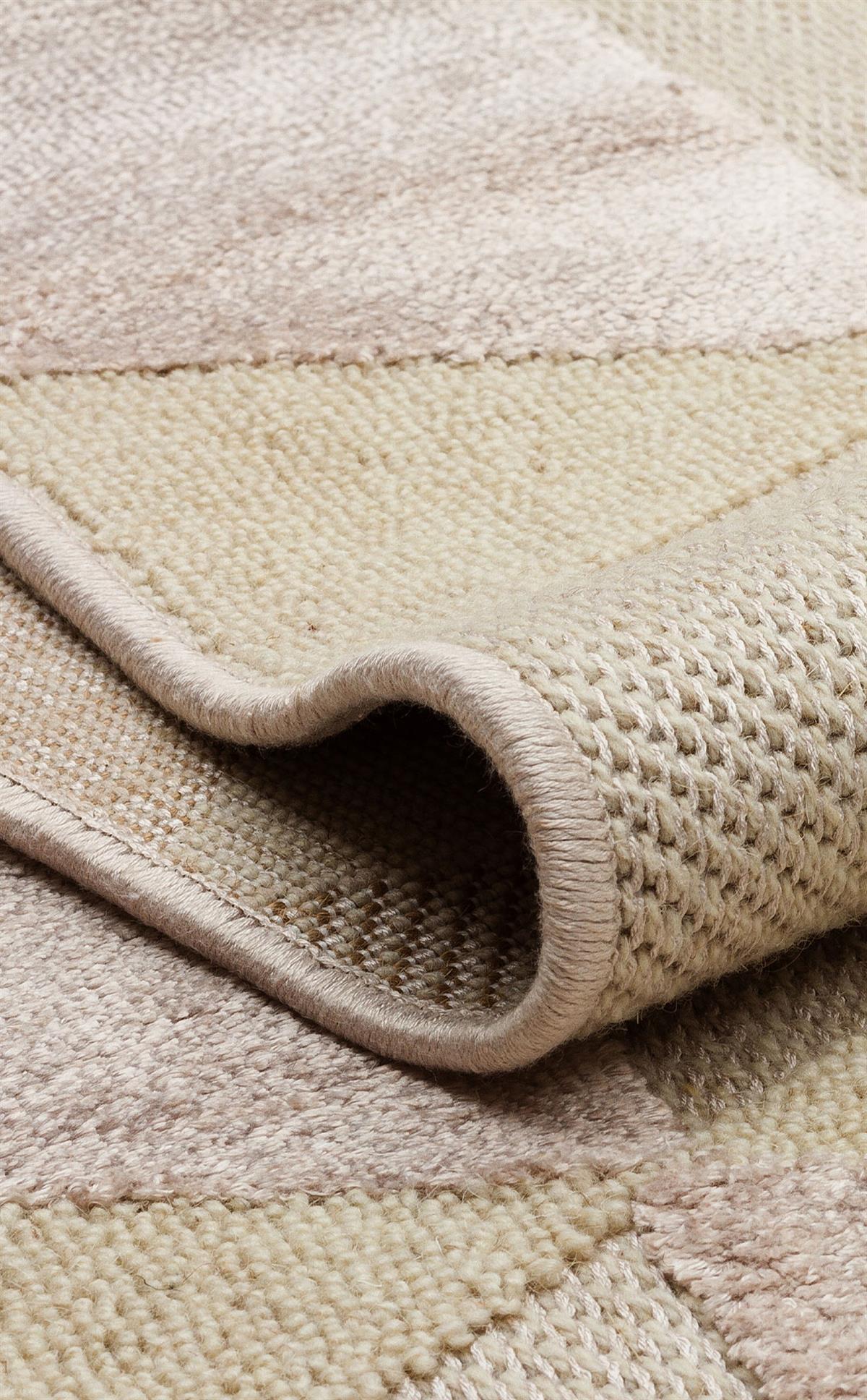 BEİGE DYED YÜKSEK ALÇAK DOKULU NATUREL YÜN VE VISKON MODERN DOKUMA HALI (ZNT-05)
