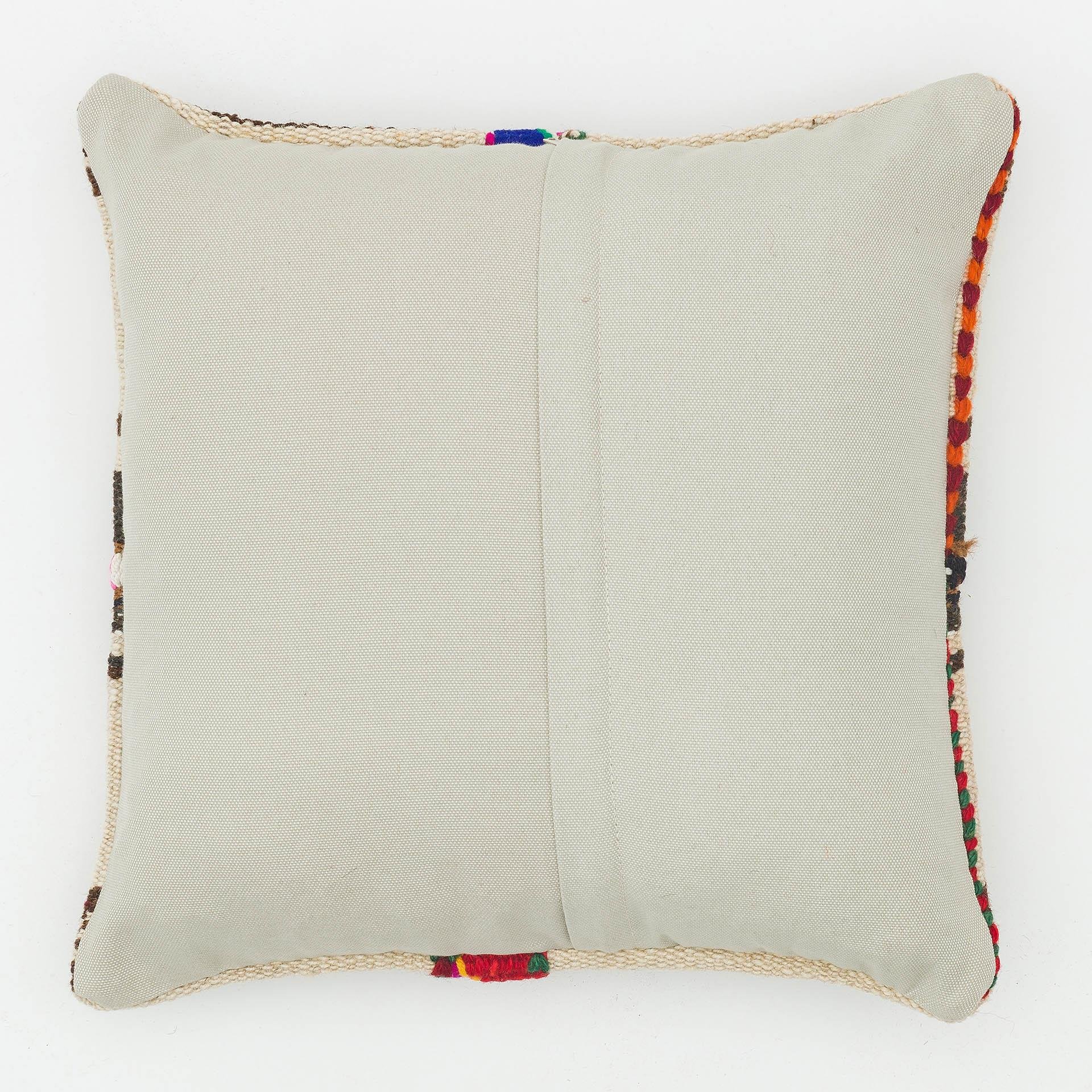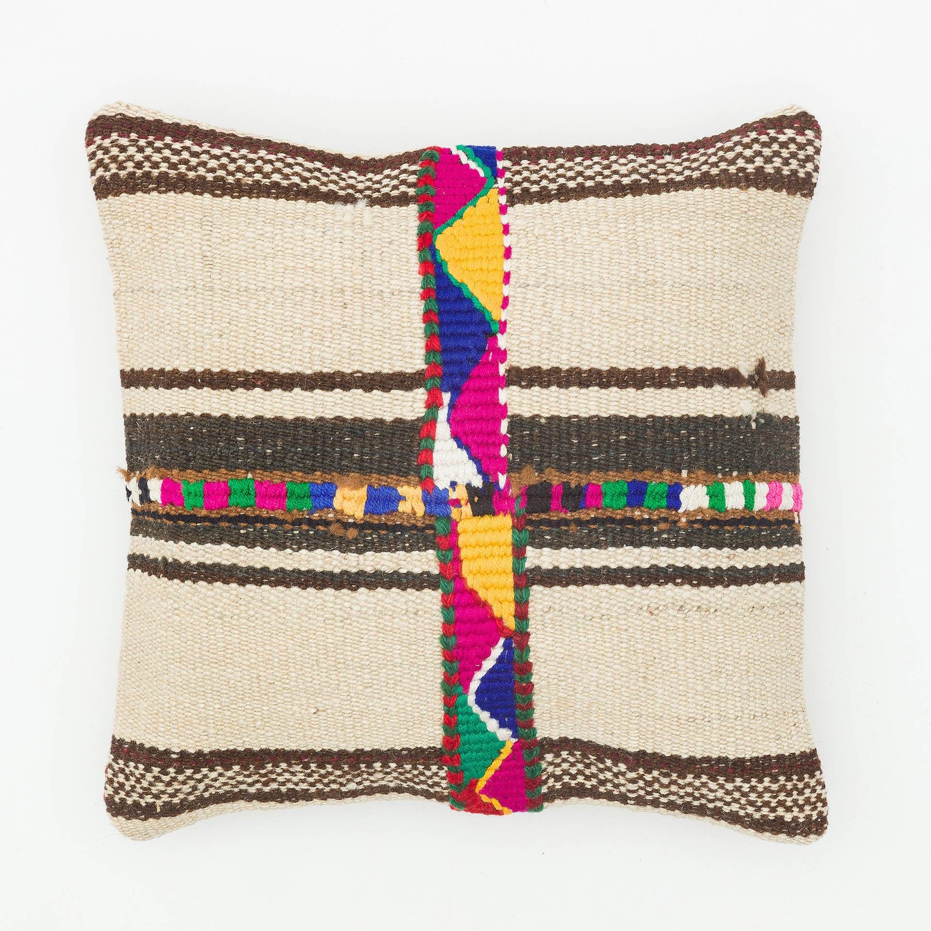 BEJ KAHVERENGİ DESENLİ EL DOKUMA KENDİR KİLİM YASTIK KILIFI (KR-13565)
