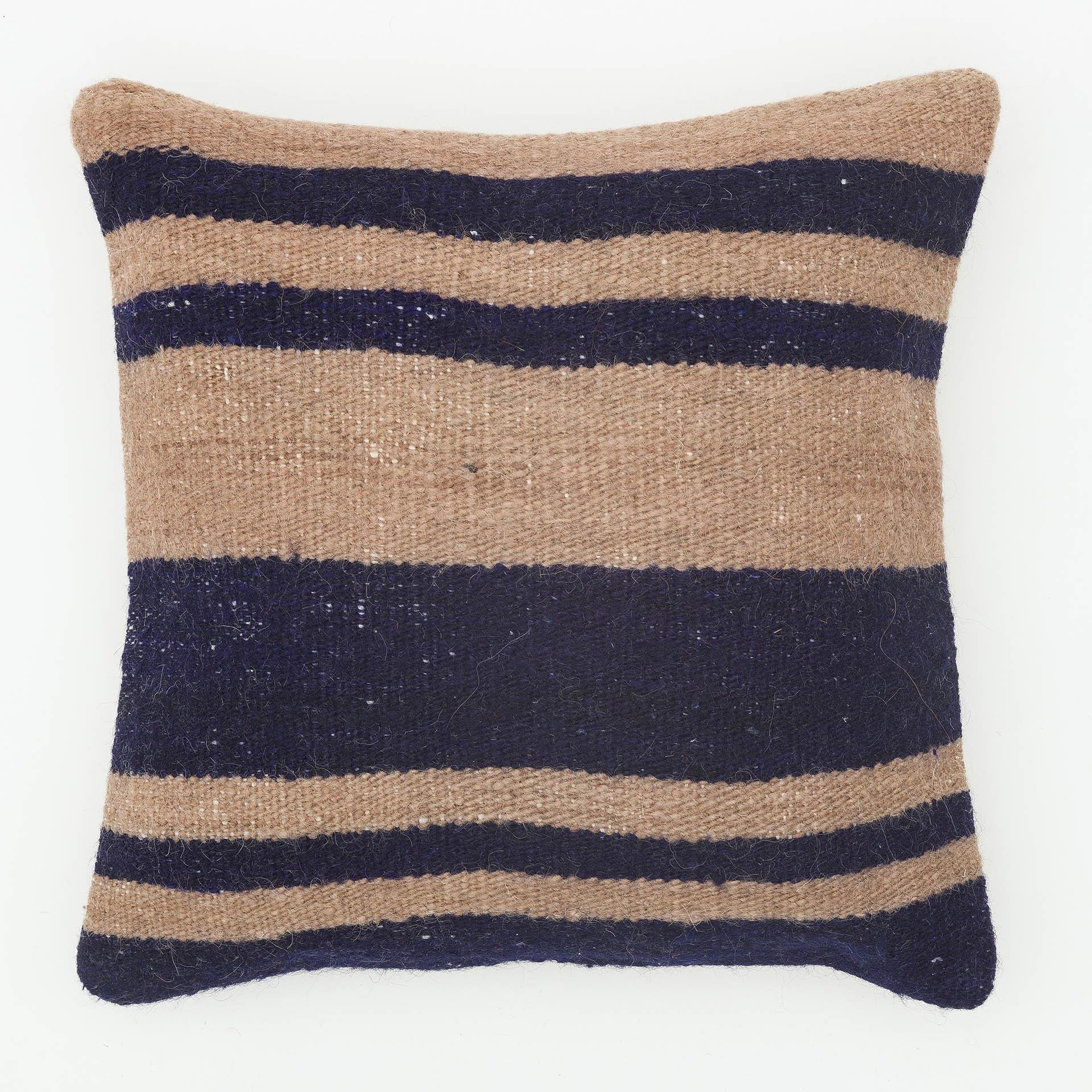 BEJ SİYAH ÇİZGİ EL DOKUMA VİNTAGE EL DOKUMA YASTIK KILIFI (KR-13639)