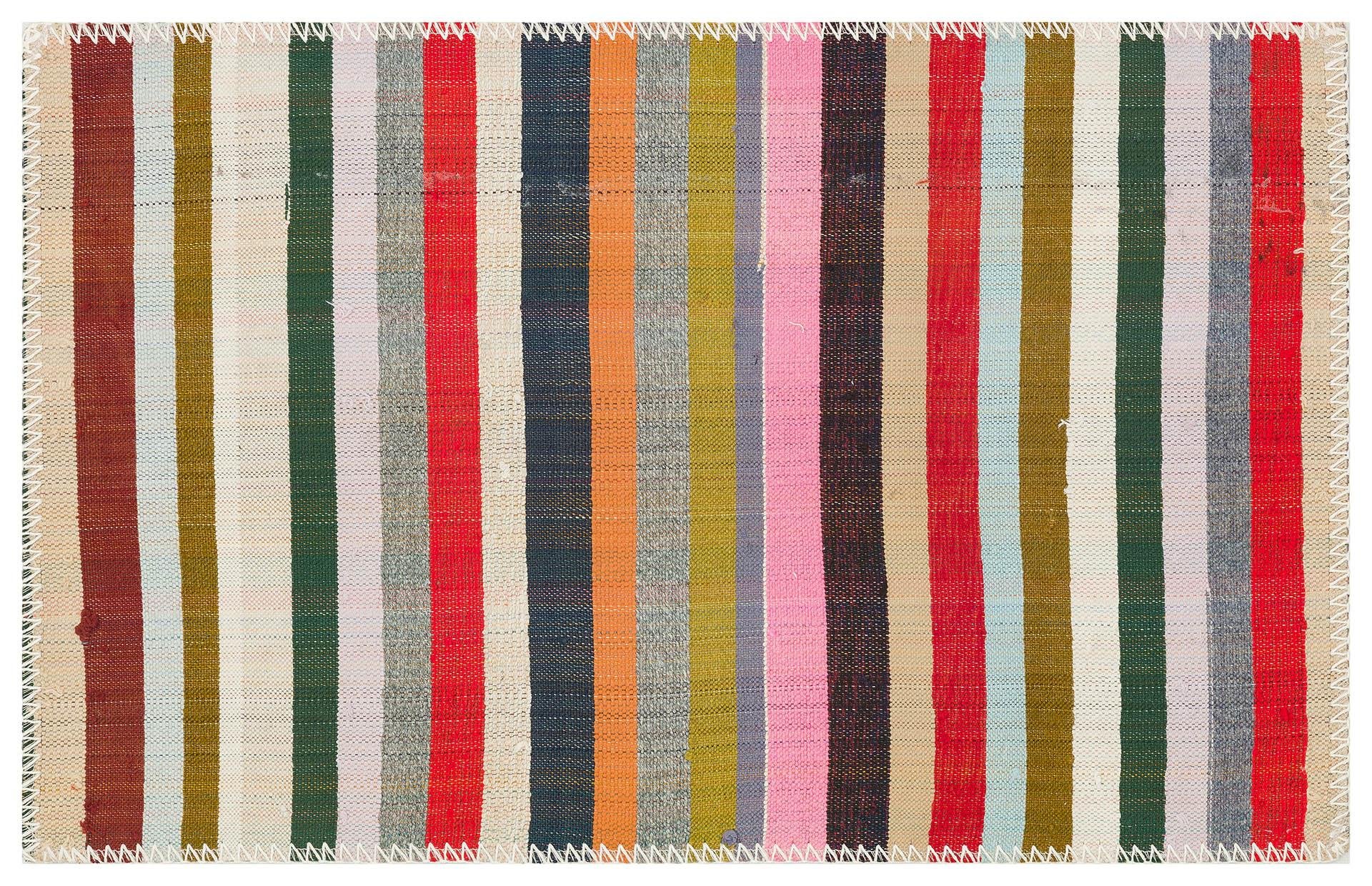 ÇOK RENKLİ ÇİZGİLİ DESEN EL YAPIMI KENDİR KİLİM PASPAS