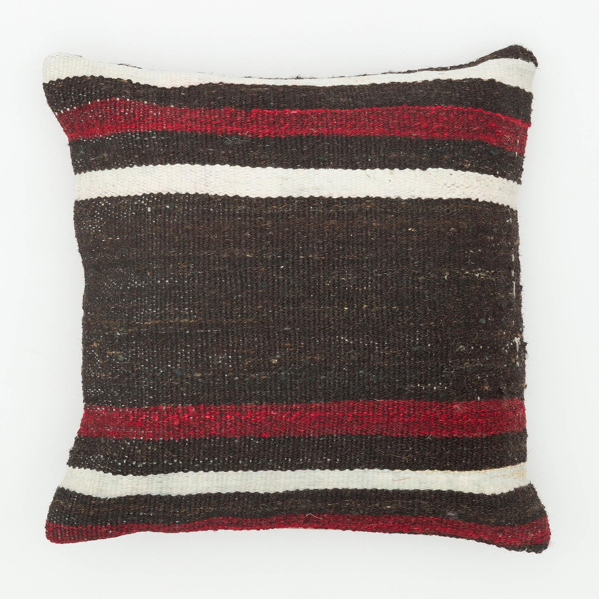 EL DOKUMA SİYAH KIRMIZI BEYAZ ASTARLI YASTIK KILIFI (KR-13687)