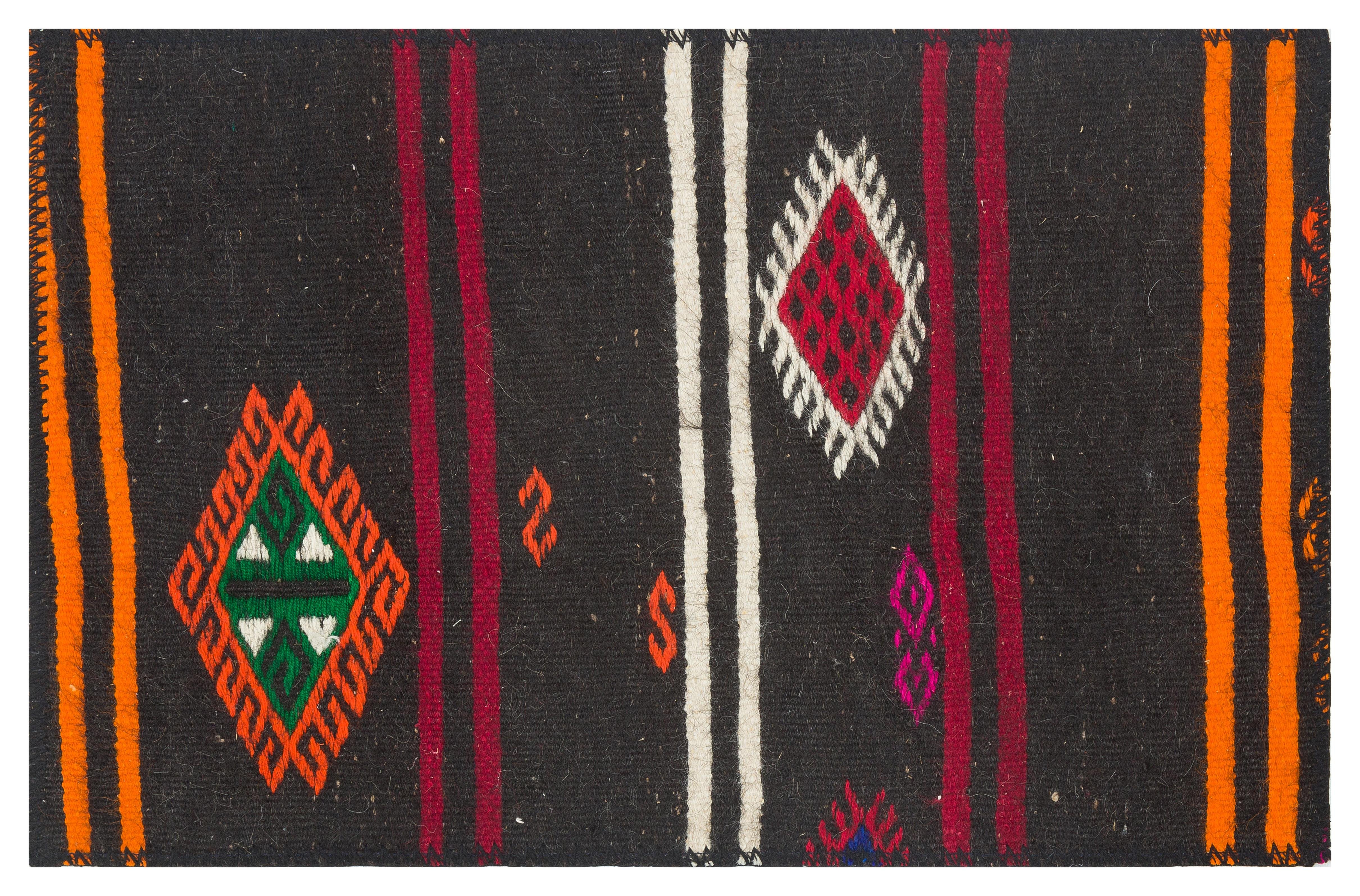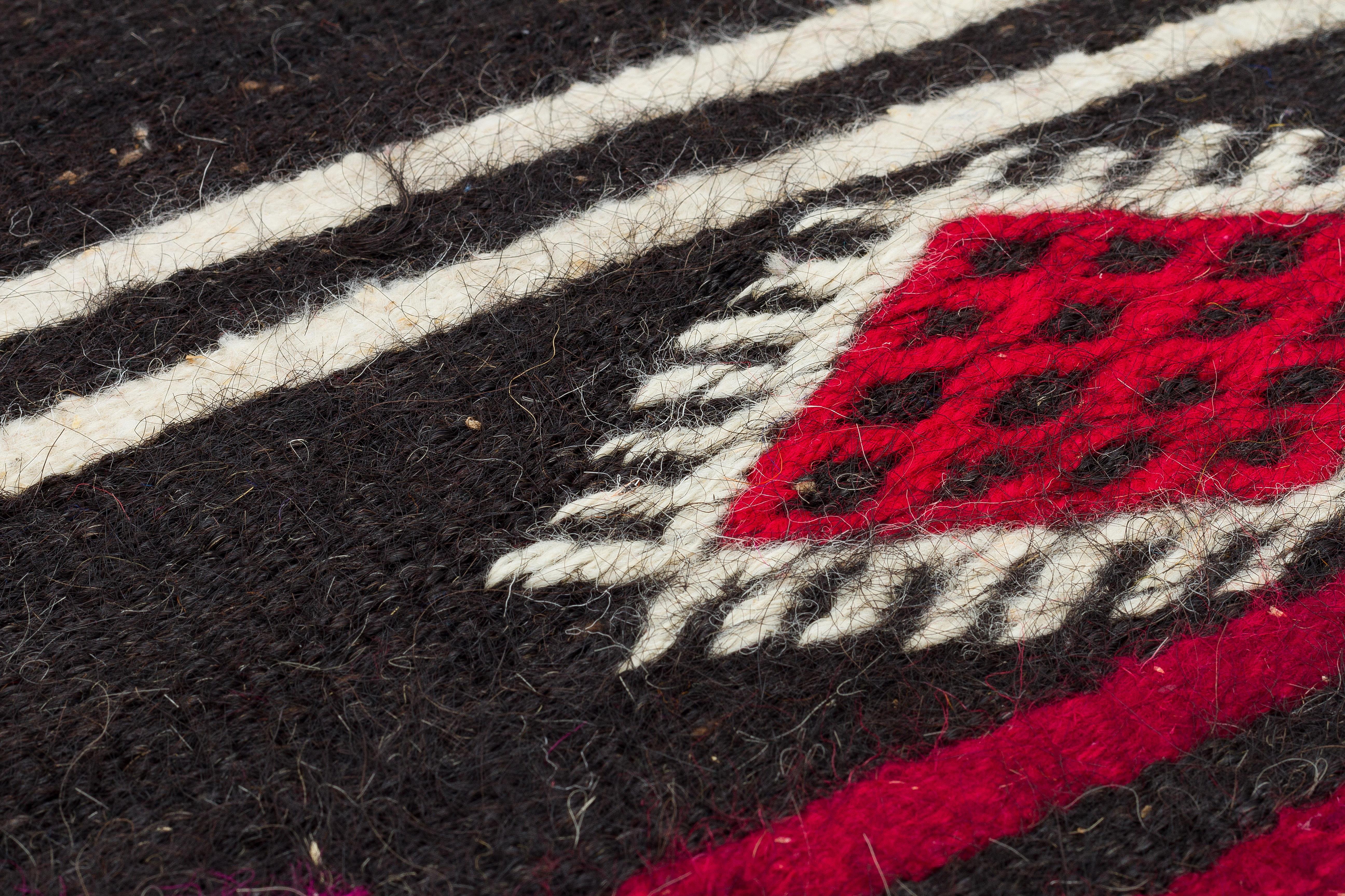 EL DOKUMA SİYAH RENGİ GEOMETRİK DESEN KİLİM PASPAS
