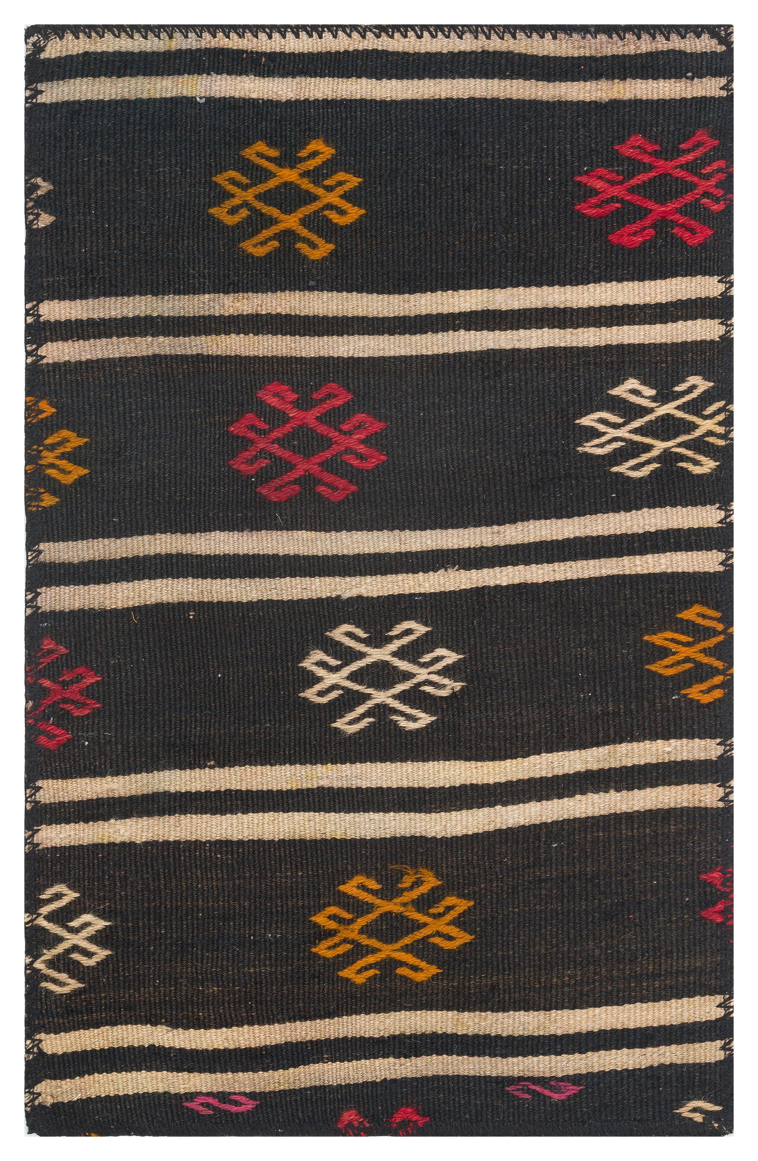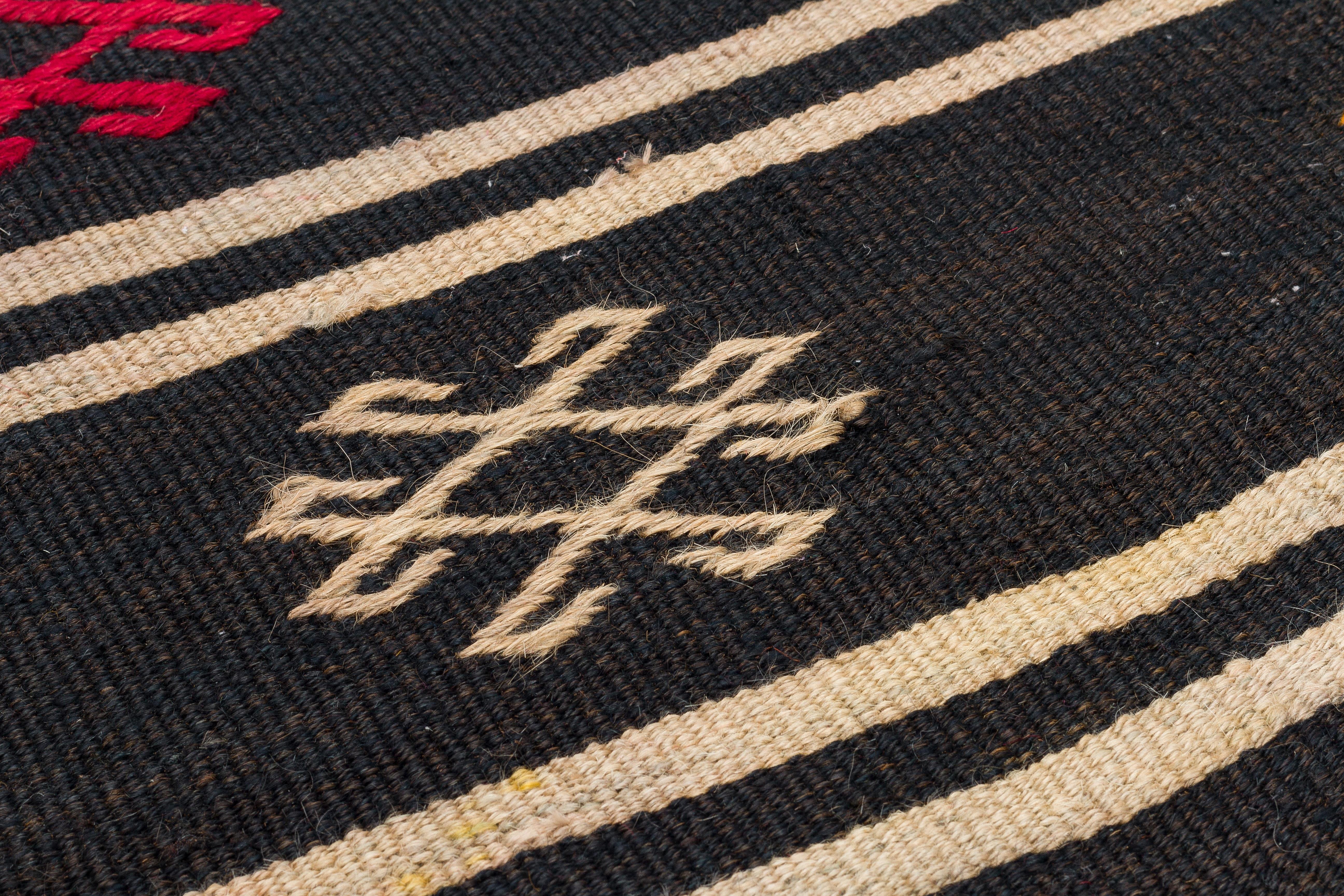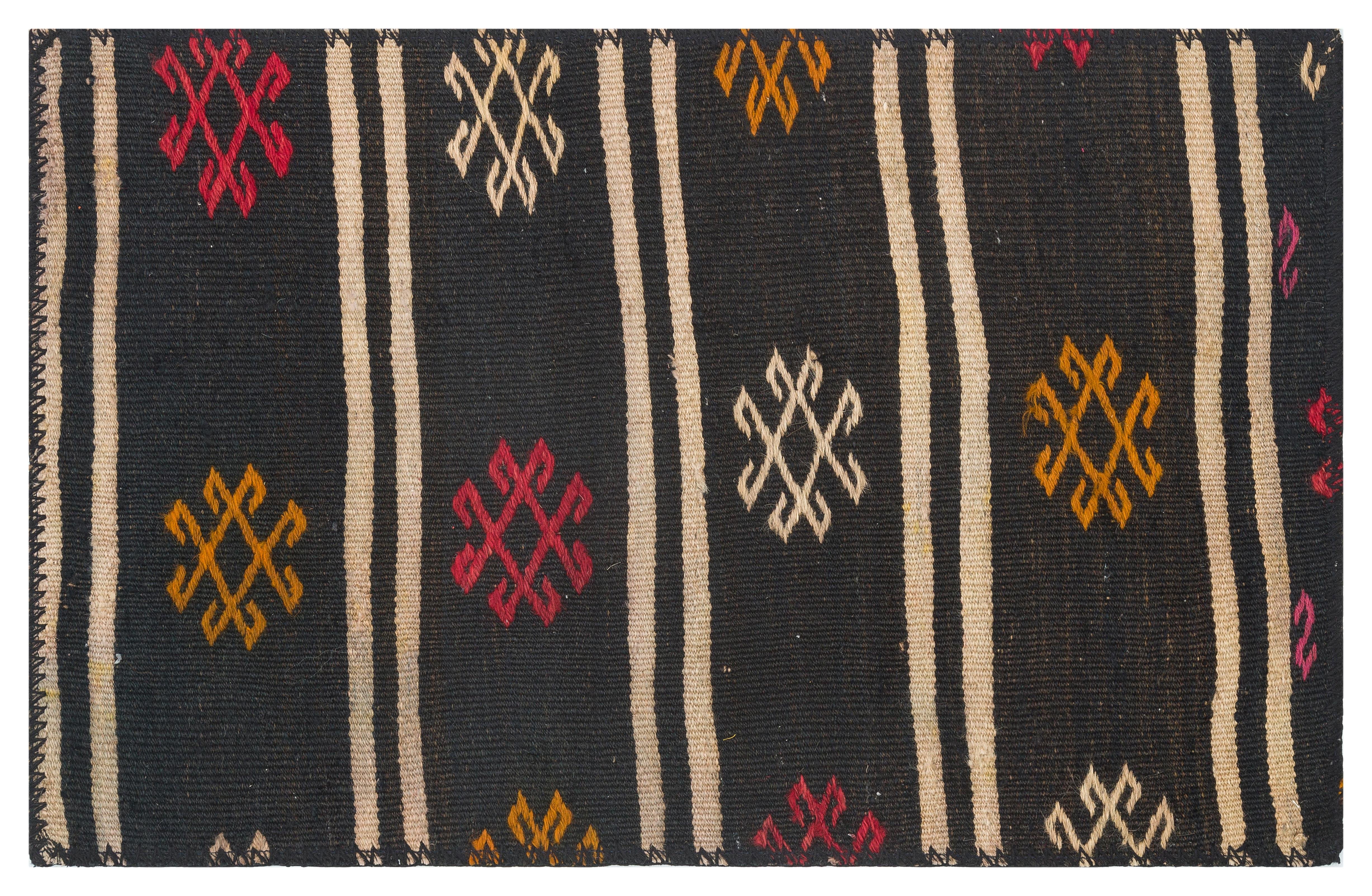 EL DOKUMA SİYAH RENGİ GEOMETRİK DESEN KİLİM PASPAS