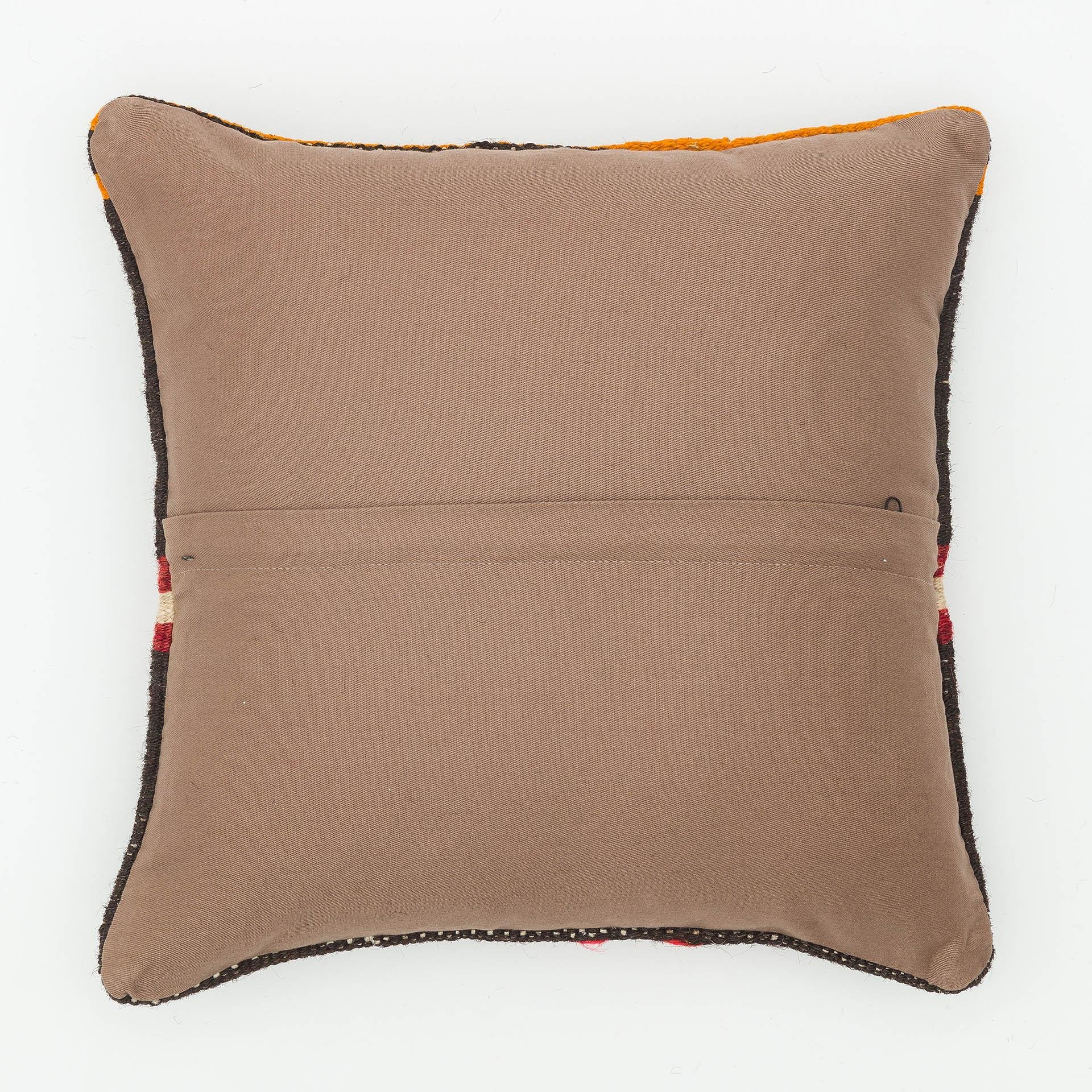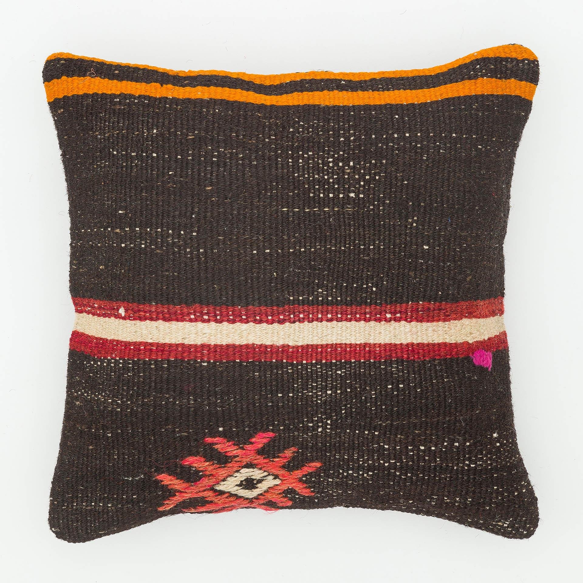 EL DOKUMA SİYAH SARI RENK ÇİÇEKLER VİNTAGE YASTIK KILIFI (KR-13694)