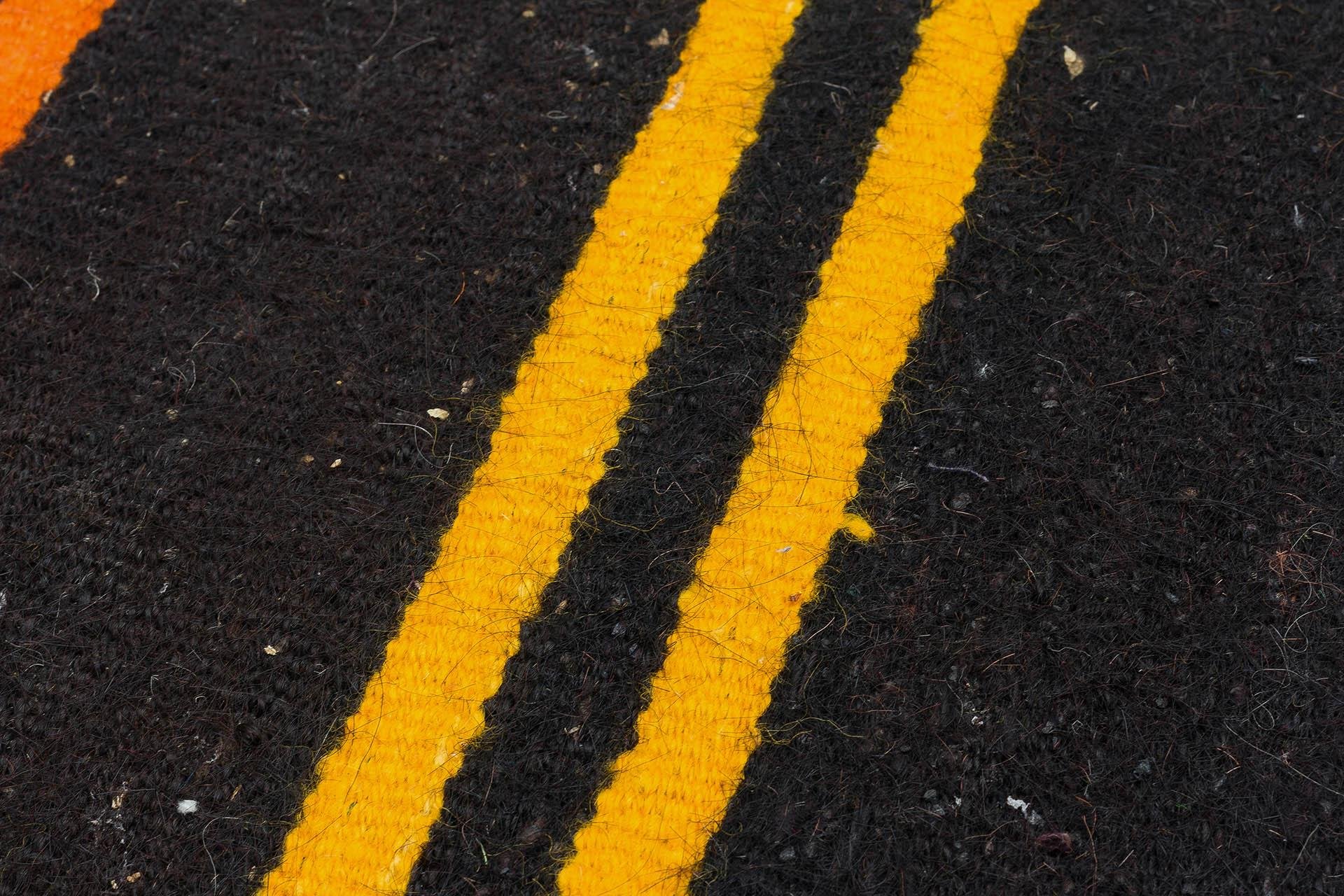 EL DOKUMA TURUNCU KIRMIZI RENGİ ÇİZGİLİ DESEN KEÇİ KILI YÜNLÜ KİLİM PASPAS