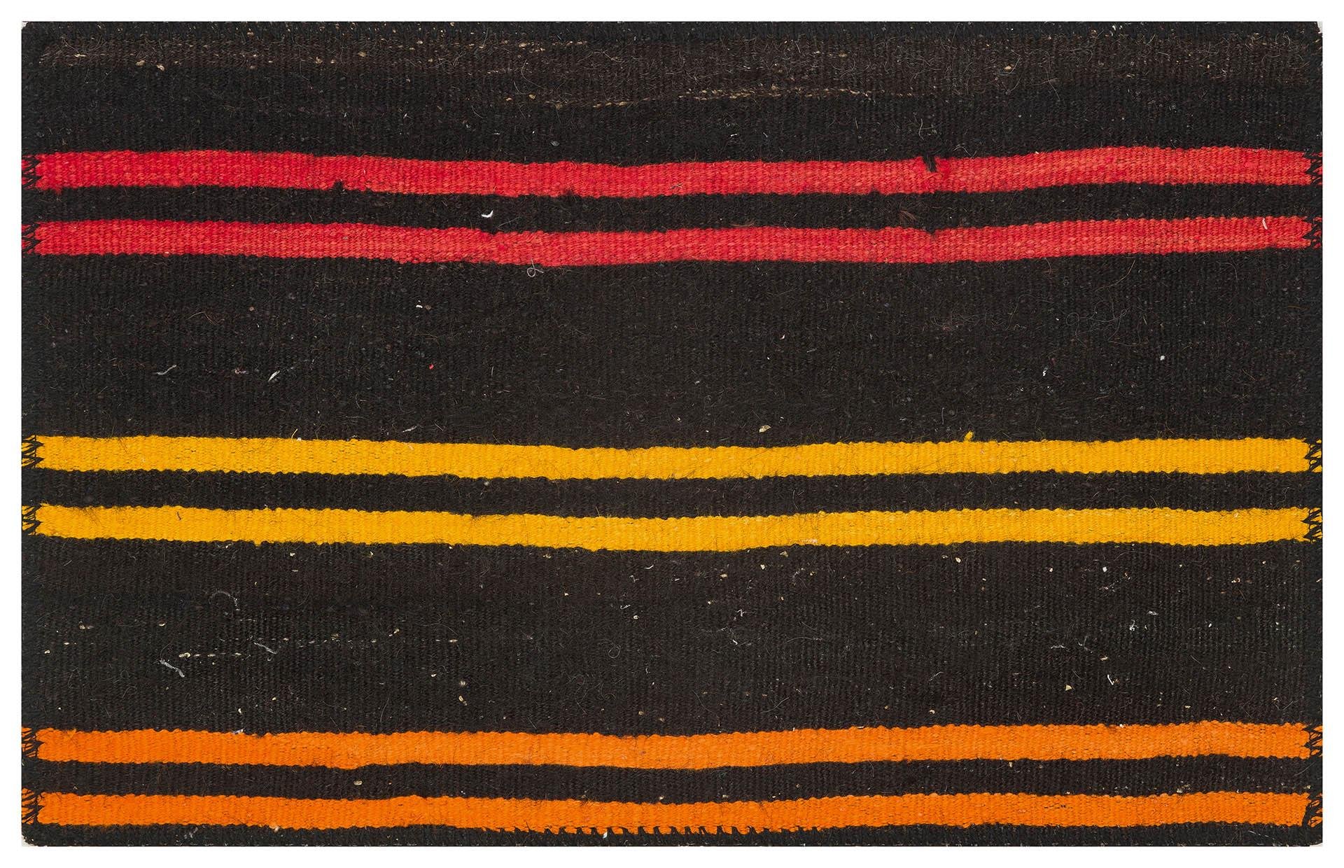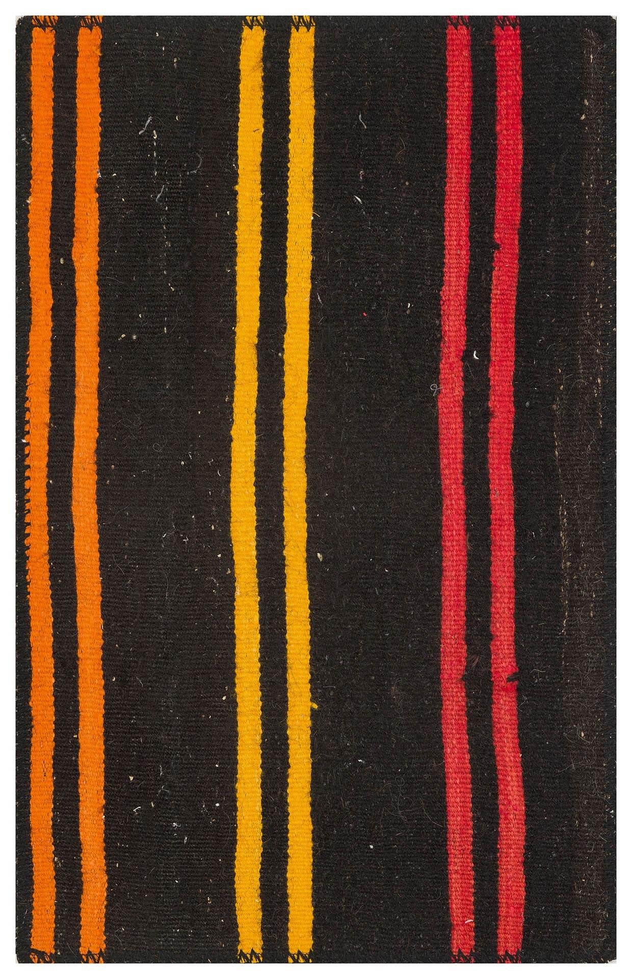 EL DOKUMA TURUNCU KIRMIZI RENGİ ÇİZGİLİ DESEN KEÇİ KILI YÜNLÜ KİLİM PASPAS (PS-2108)