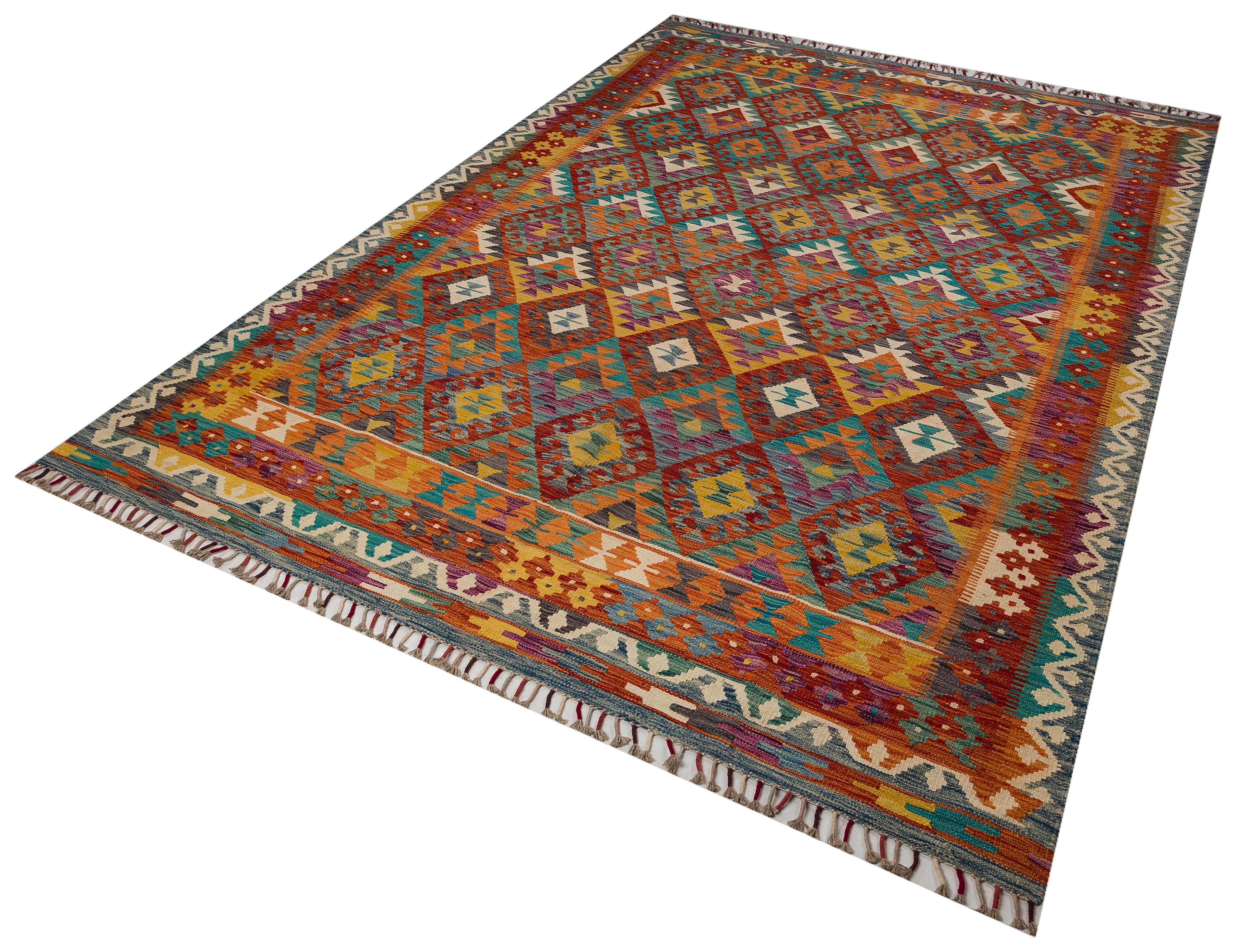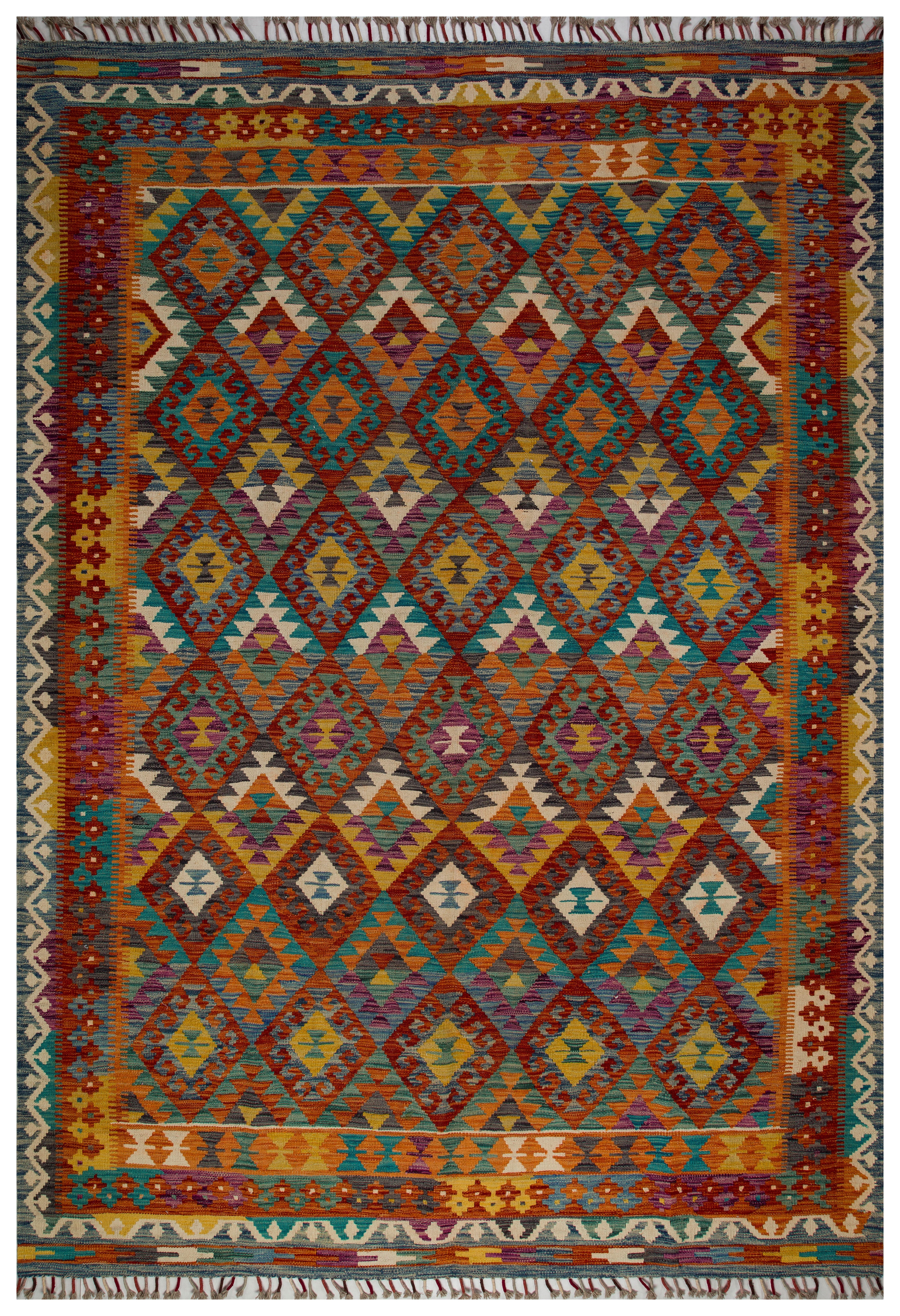 EL DOKUMA YÜNE YÜN OTANTİK DESEN AFGAN KİLİM (AF-1014)
