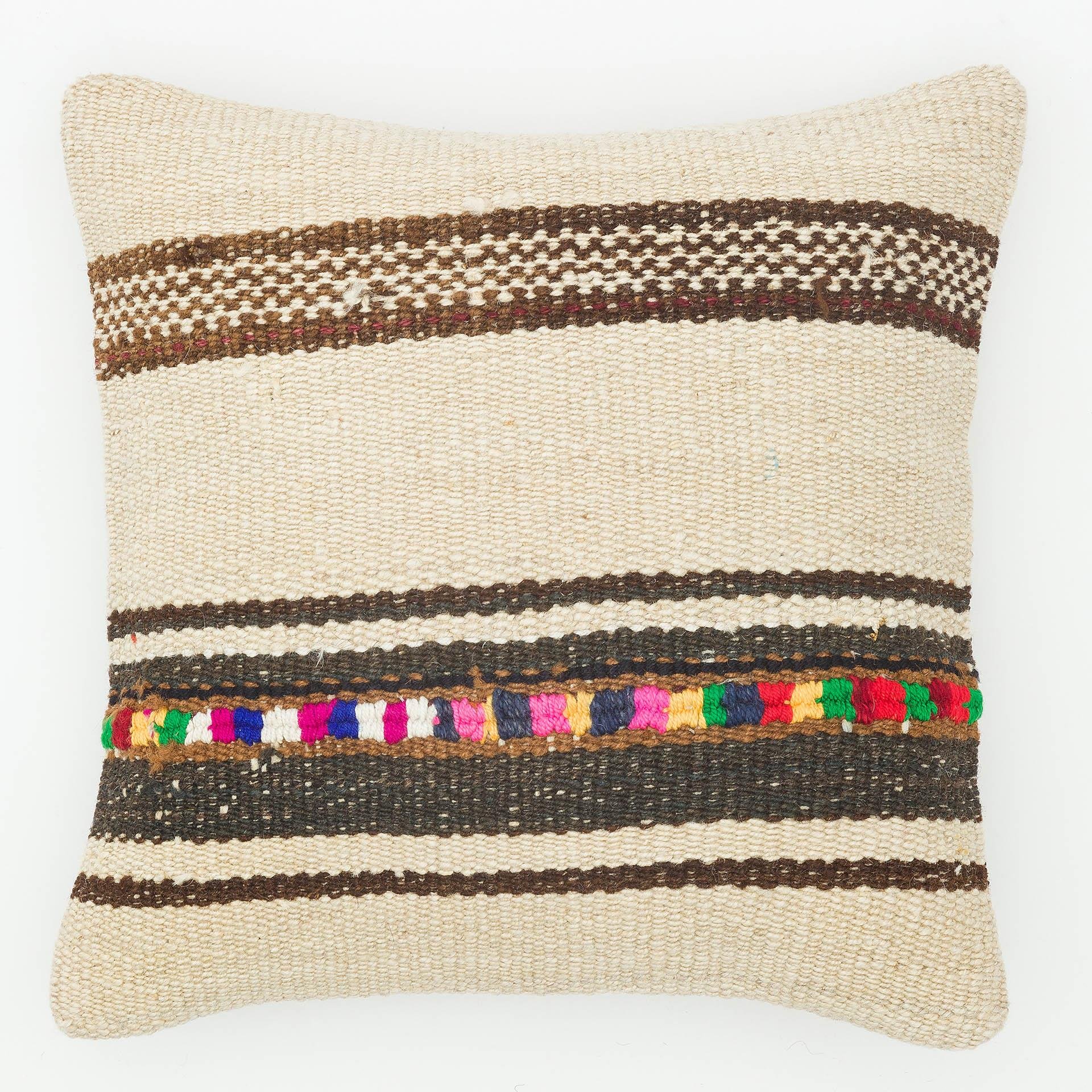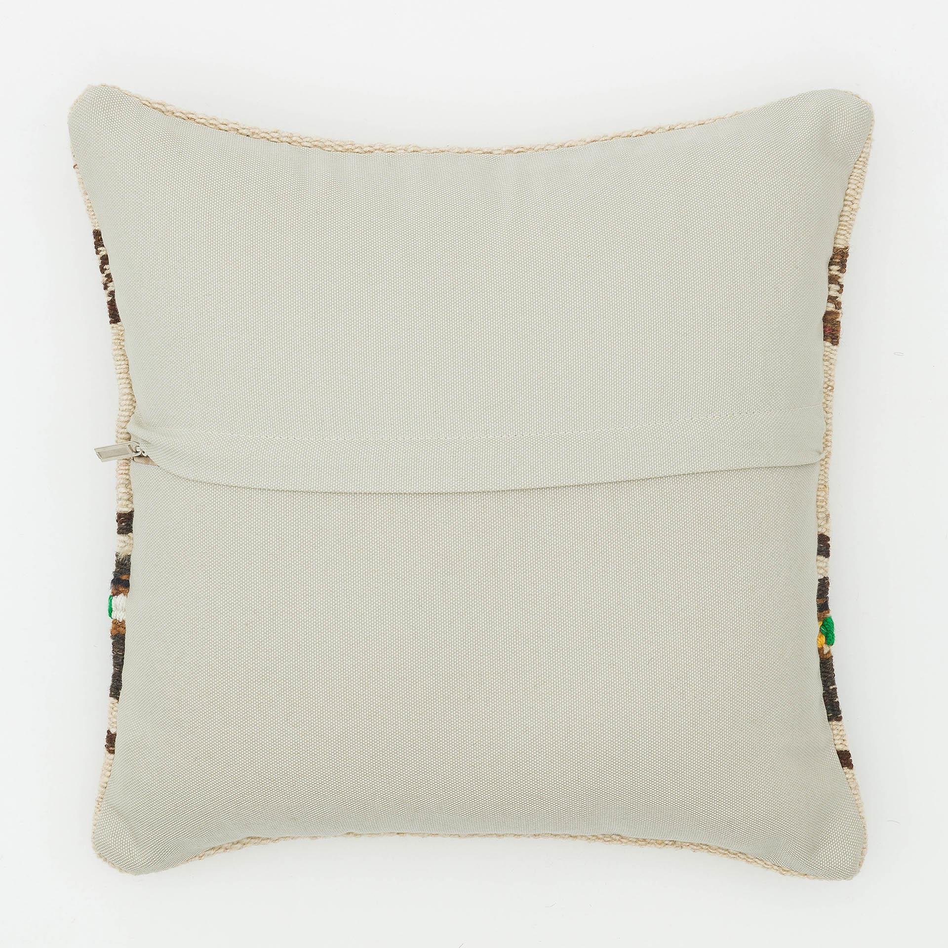 EL DÜĞÜMLÜ BEYAZ ETNİK KENDİR KİLİM YASTIK KILIFI (KR-13625)