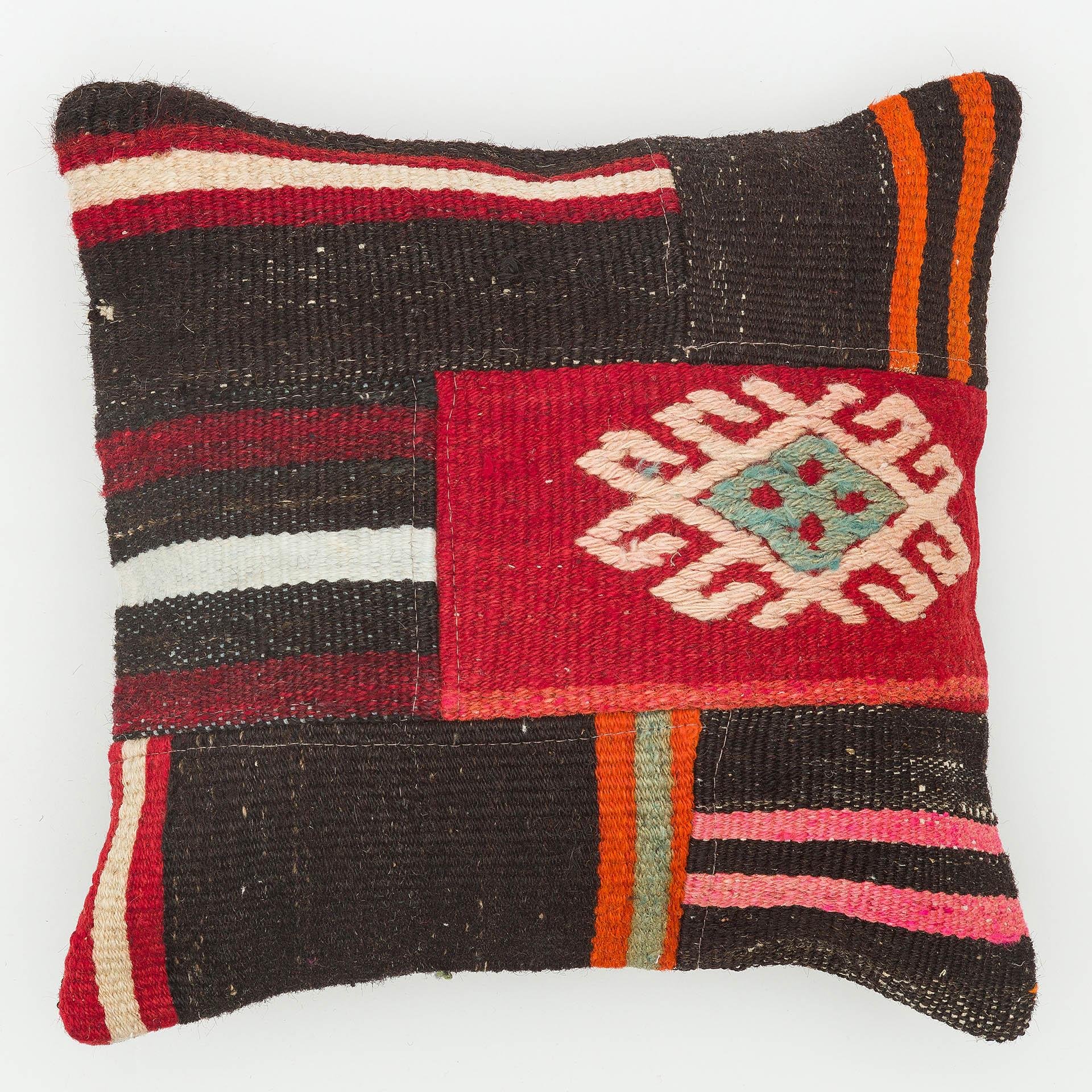 EL DÜĞÜMLÜ SİYAH KAHVERENGİ RENKLİ VİNTAGE YASTIK KILIFI (KR-13736)