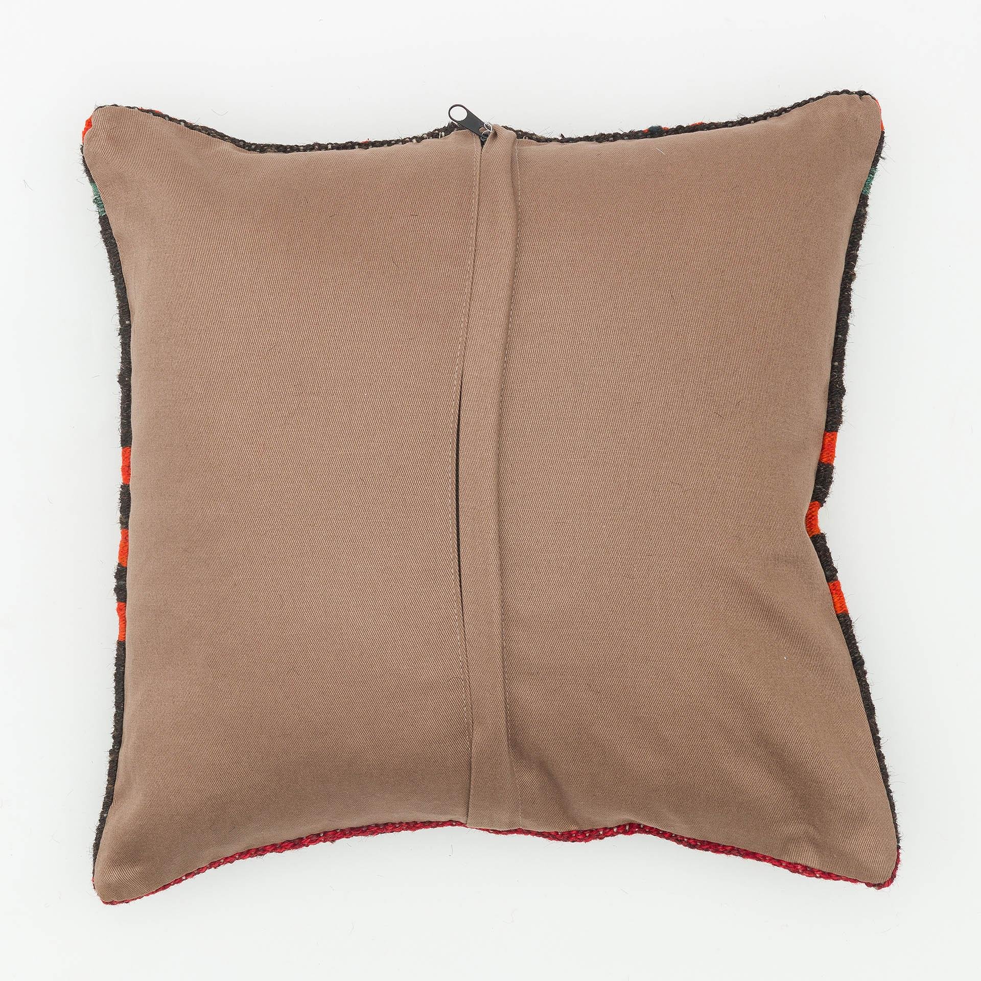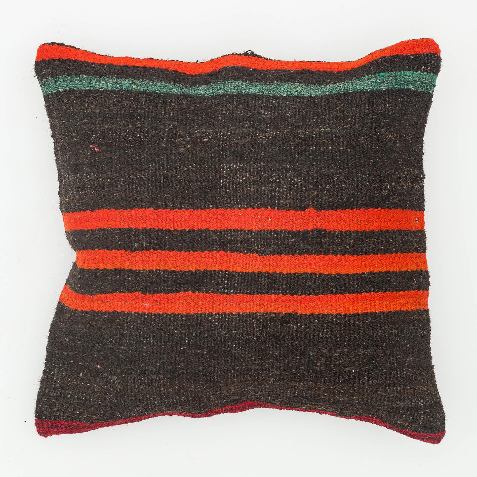 EL DÜĞÜMLÜ TURUNCU ÇİZGİLİ SİYAH KEÇİ KILI YASTIK KILIFI (KR-13743)