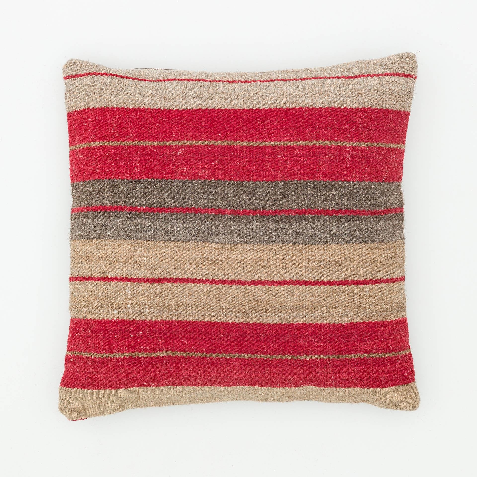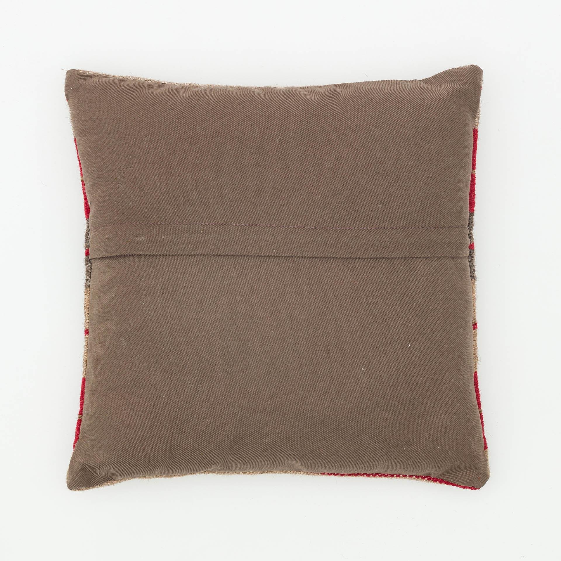 EŞSİZ EL DOKUMA BEJ KİRMIZİ RENGİ KEÇİ KİLİ YÜNLÜ KİLİM YASTIK KILIFI (KR-13539)