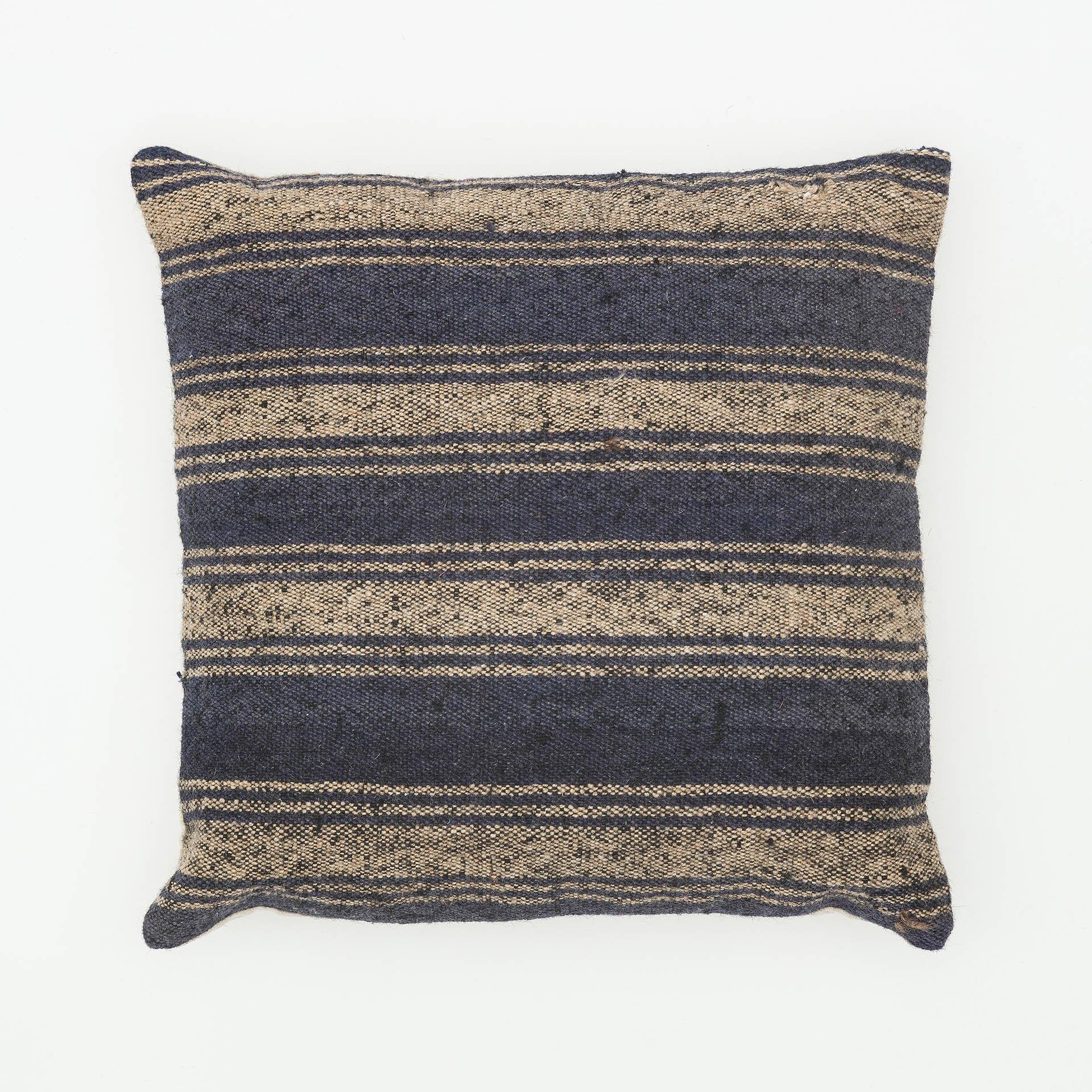 EŞSİZ EL DOKUMA BEJ LACİVERT RENGİ KİLİM YASTIK KILIFI (KR-13536)