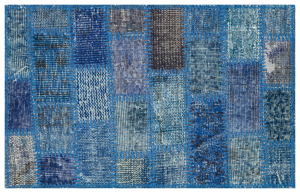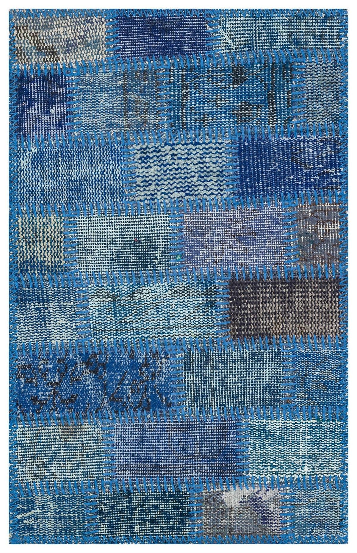 Eşsiz El Dokuma Mavi Rengi Patchwork Halı Paspas-50x80 (PS-2010)