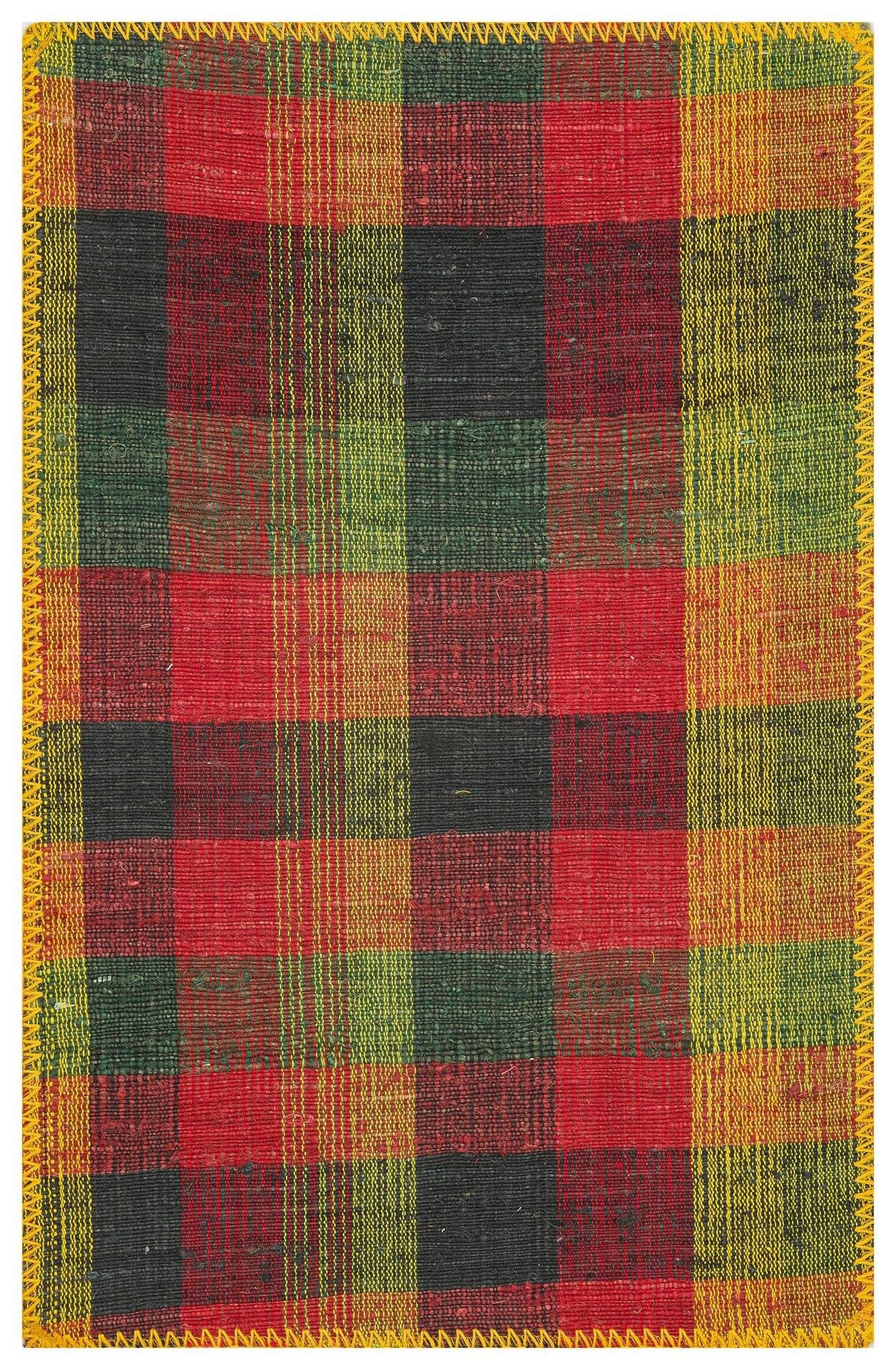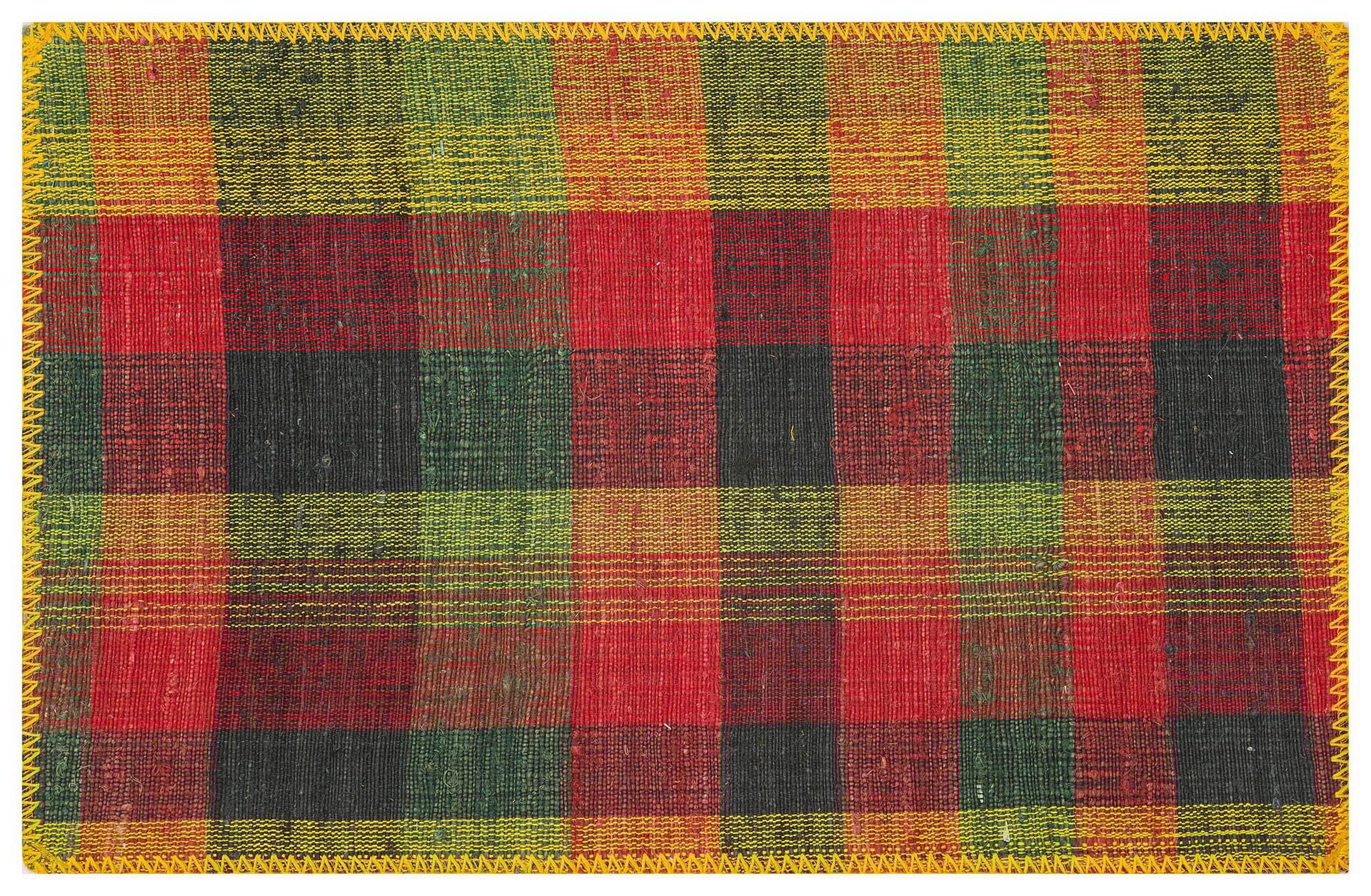 EŞSİZ EL YAPIMI ÇOK RENKLİ KARELİ DESEN ÇAPUT PALA YÜNLÜ KİLİM PASPAS (PS-2131)