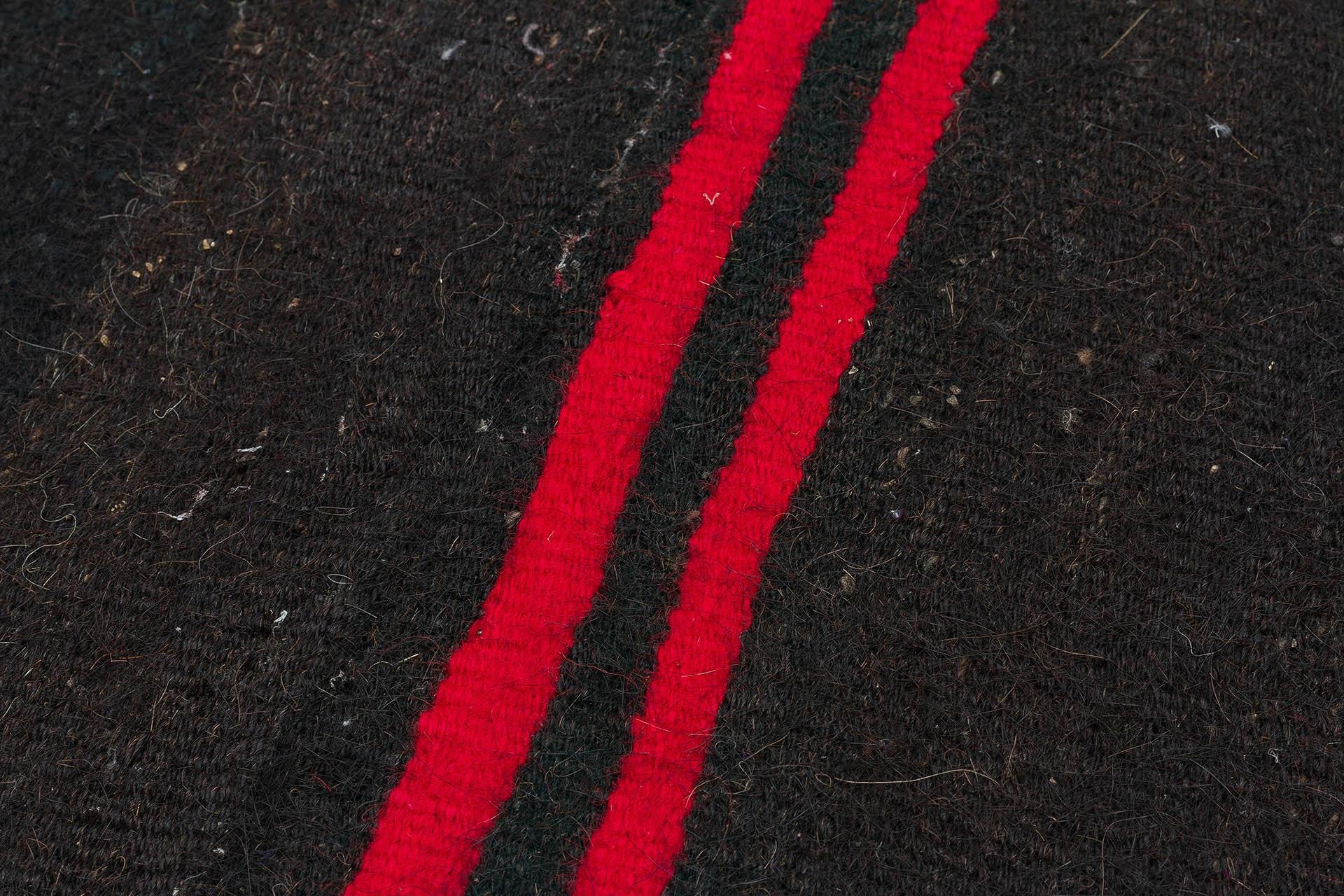 GELENEKSEL EL DOKUMA PEMBE SARİ ÇİZGİLİ KEÇİ KILI KİLİM PASPAS