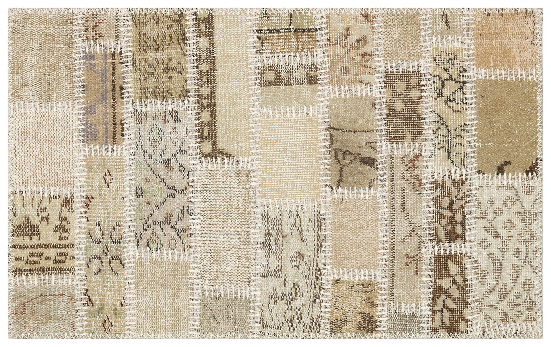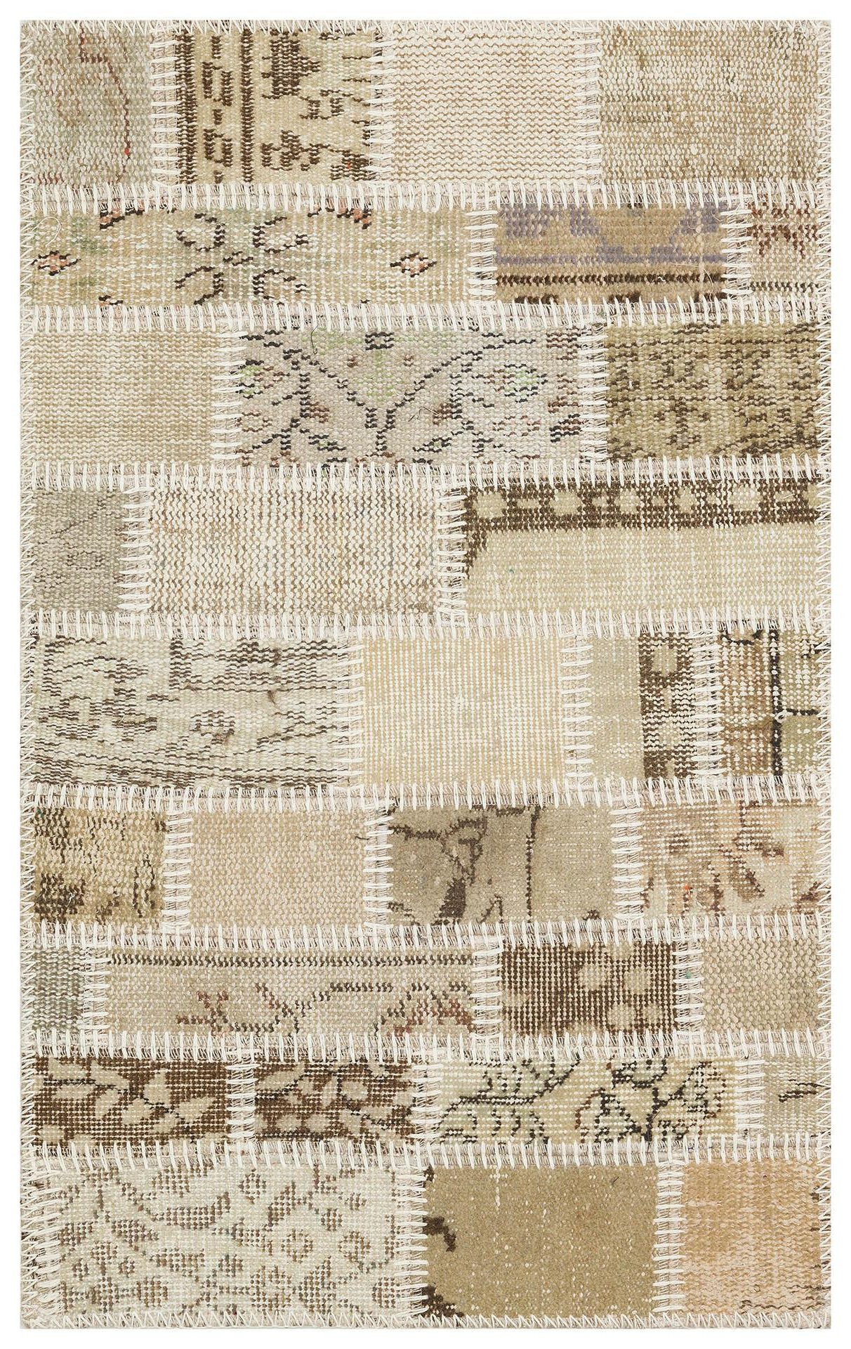 GENELEKSEL EL DOKUMA BEJ RENGİ PATCHWORK HALI PASPAS (PS -2224)