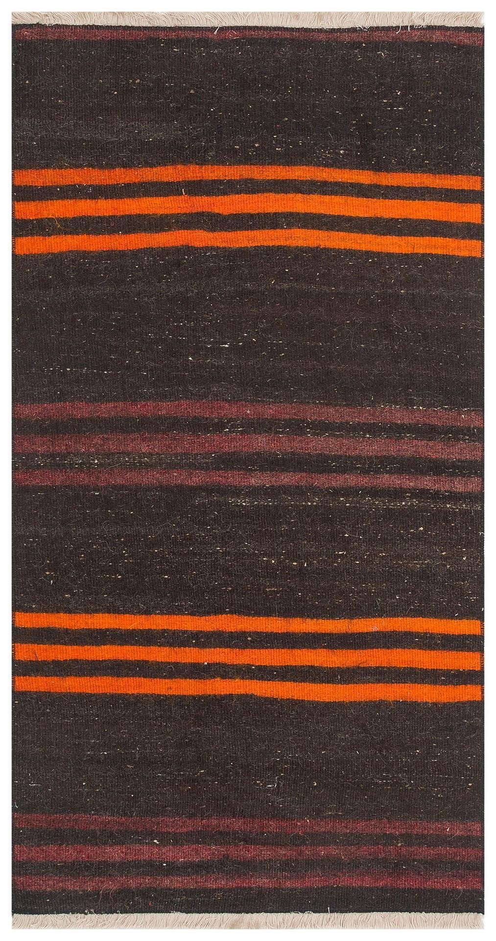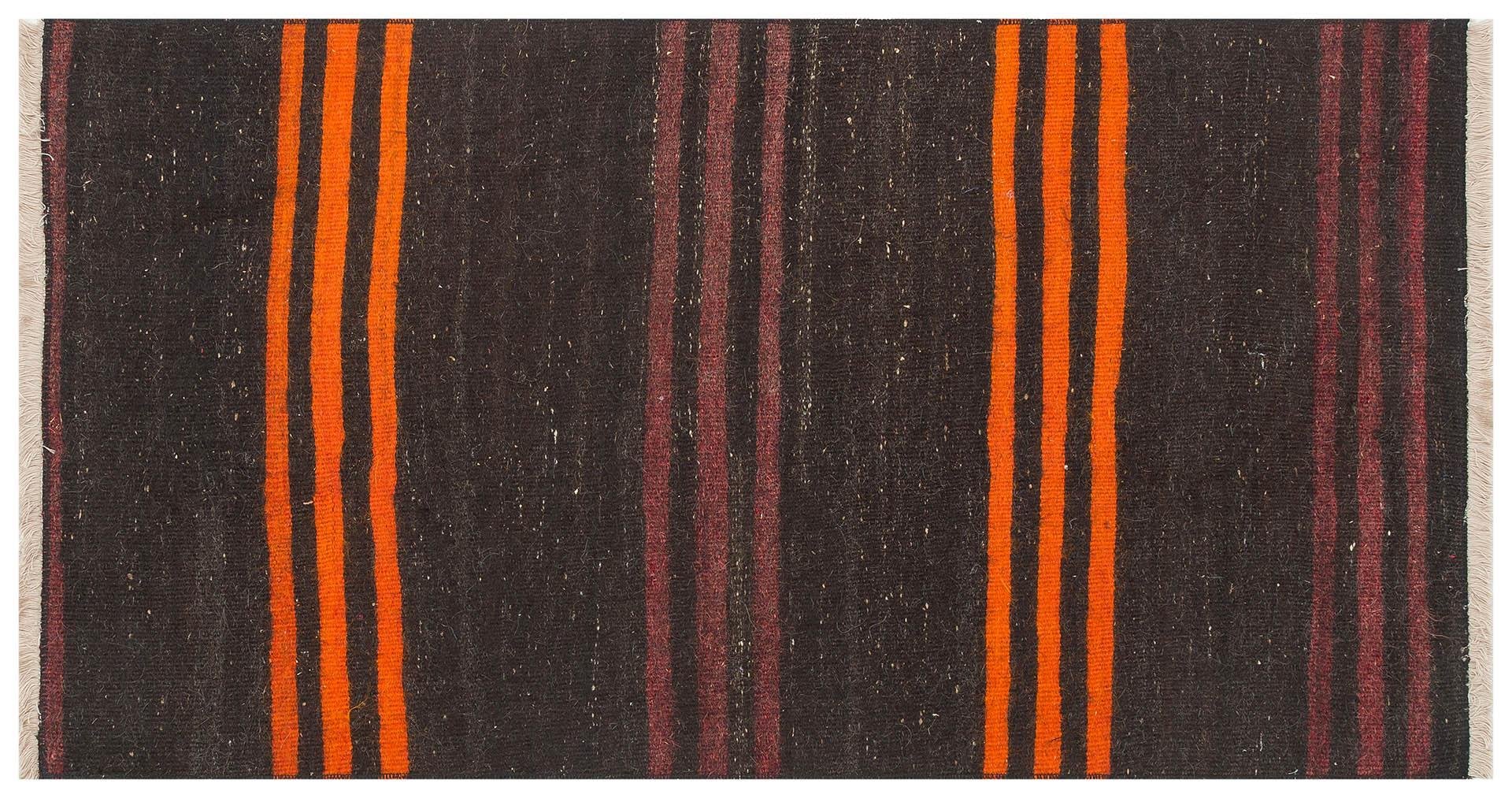 GENELEKSEL EL DOKUMA BORDO TURUNCU ÇİZGİLİ ANADOLU KİLİM (KL-11822)