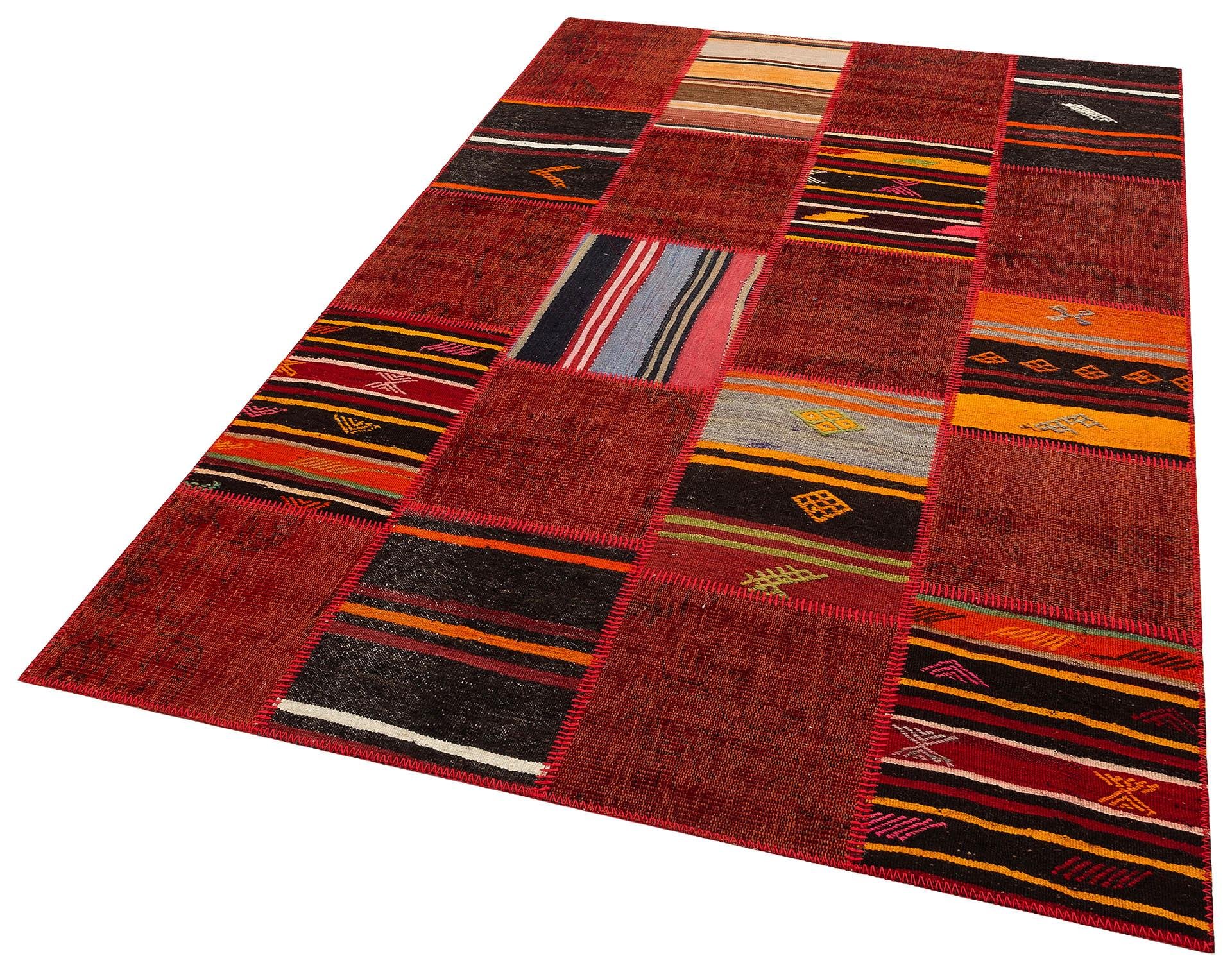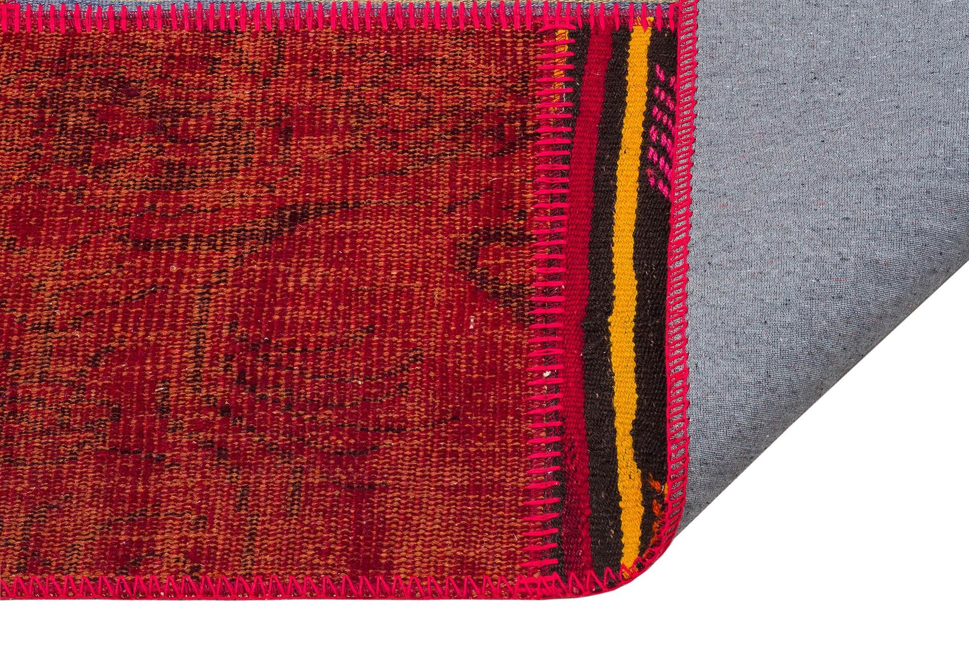 Geneleksel El Dokuma Kırmızı Rengi Halı Kilim Karışık Patchwork Halısı (PW-1056)