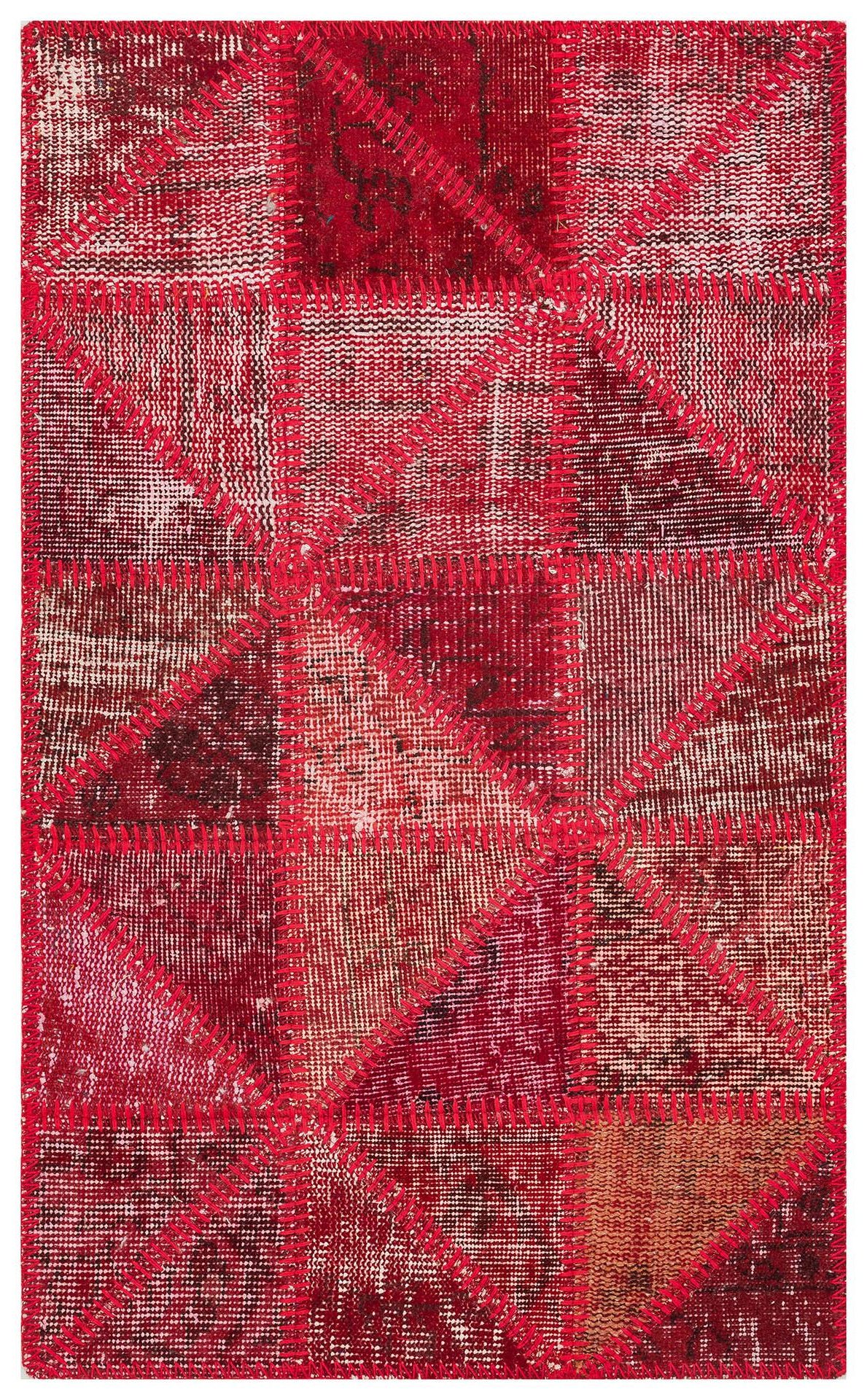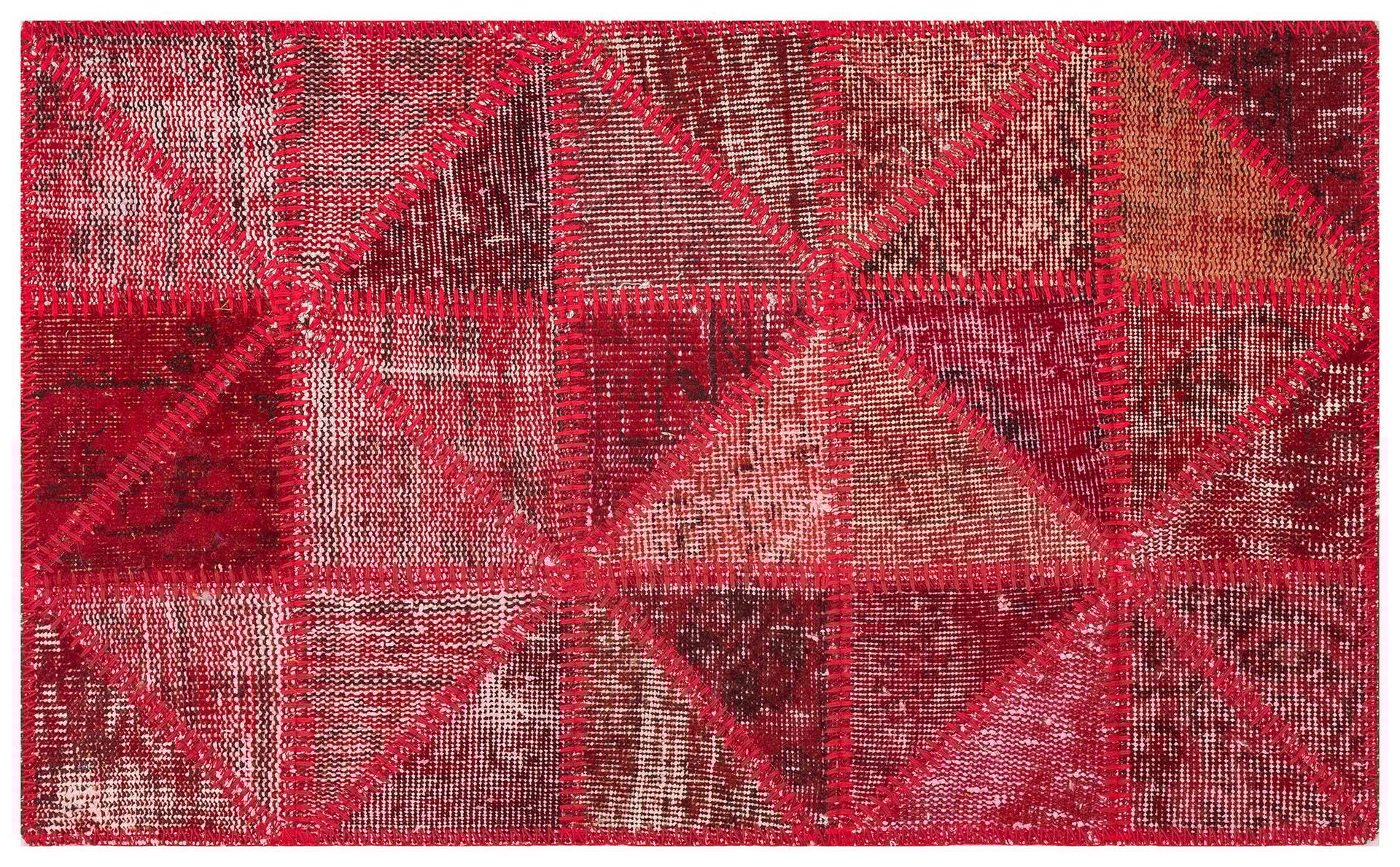 GENELEKSEL EL DOKUMA KIRMIZI RENGİ PATCHWORK HALI PASPAS (PS -2254)