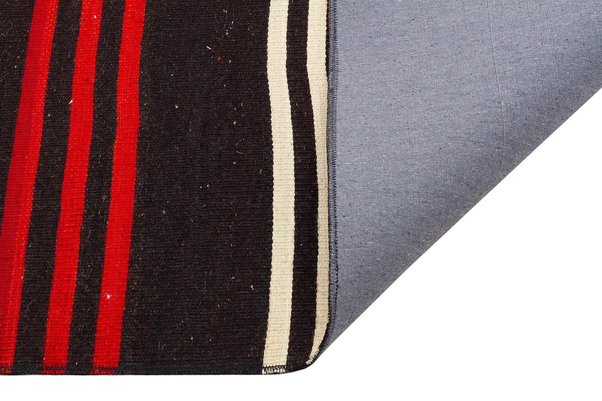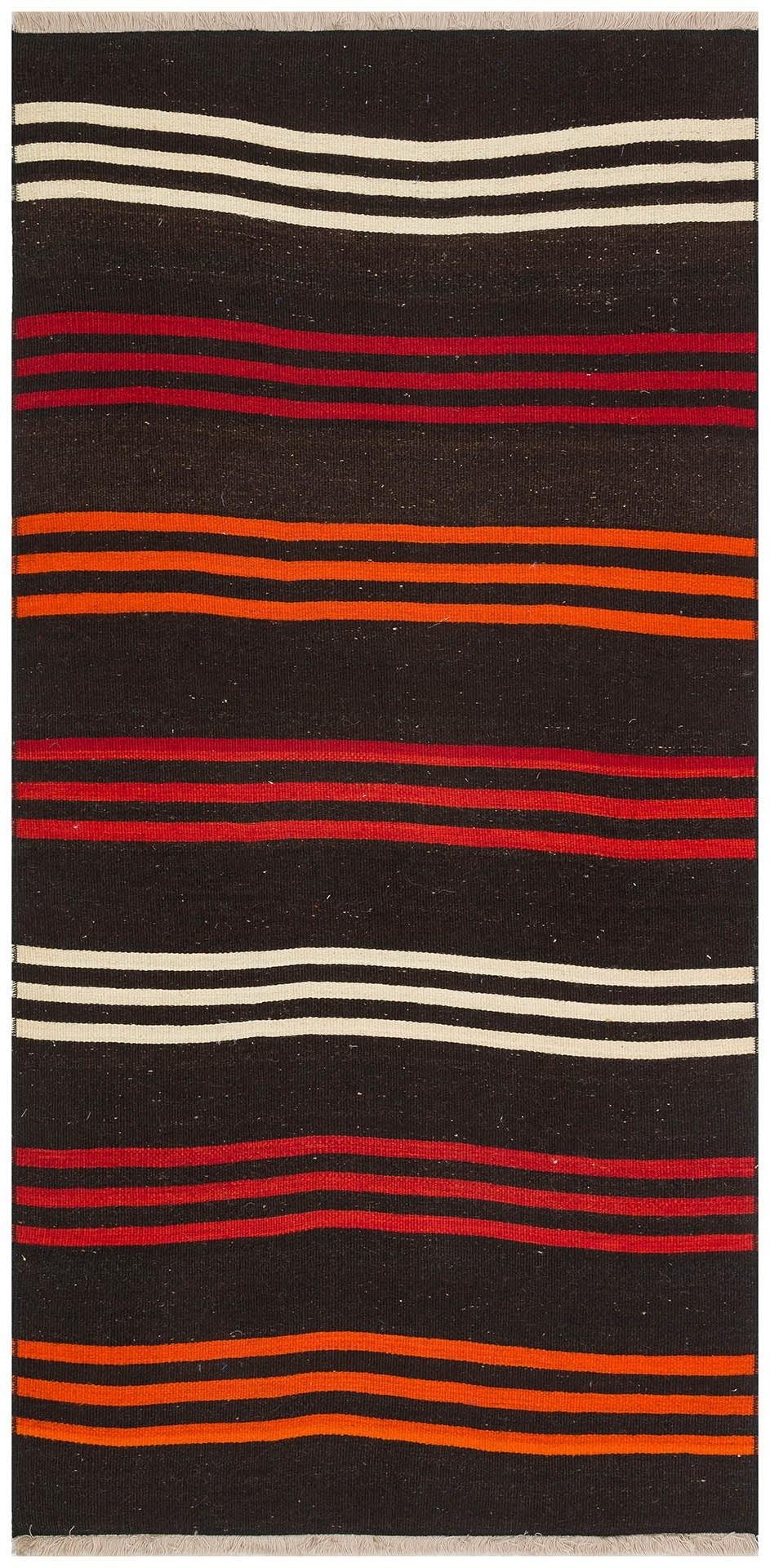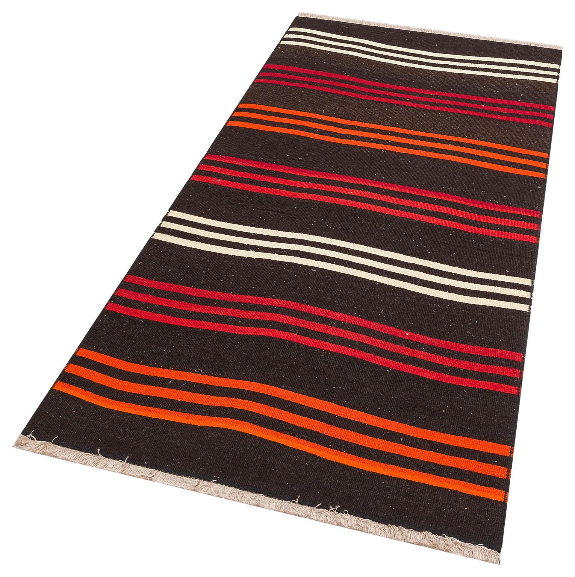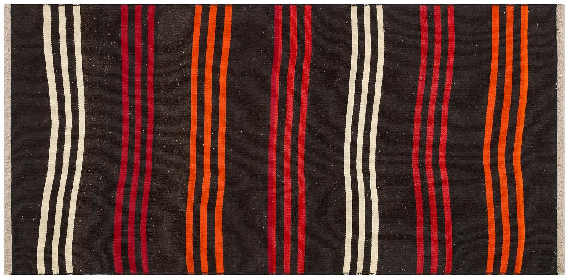 GENELEKSEL EL DOKUMA KIRMIZI TURUNCU ÇİZGİLİ DESEN YÜN KİLİM (KL-4102)