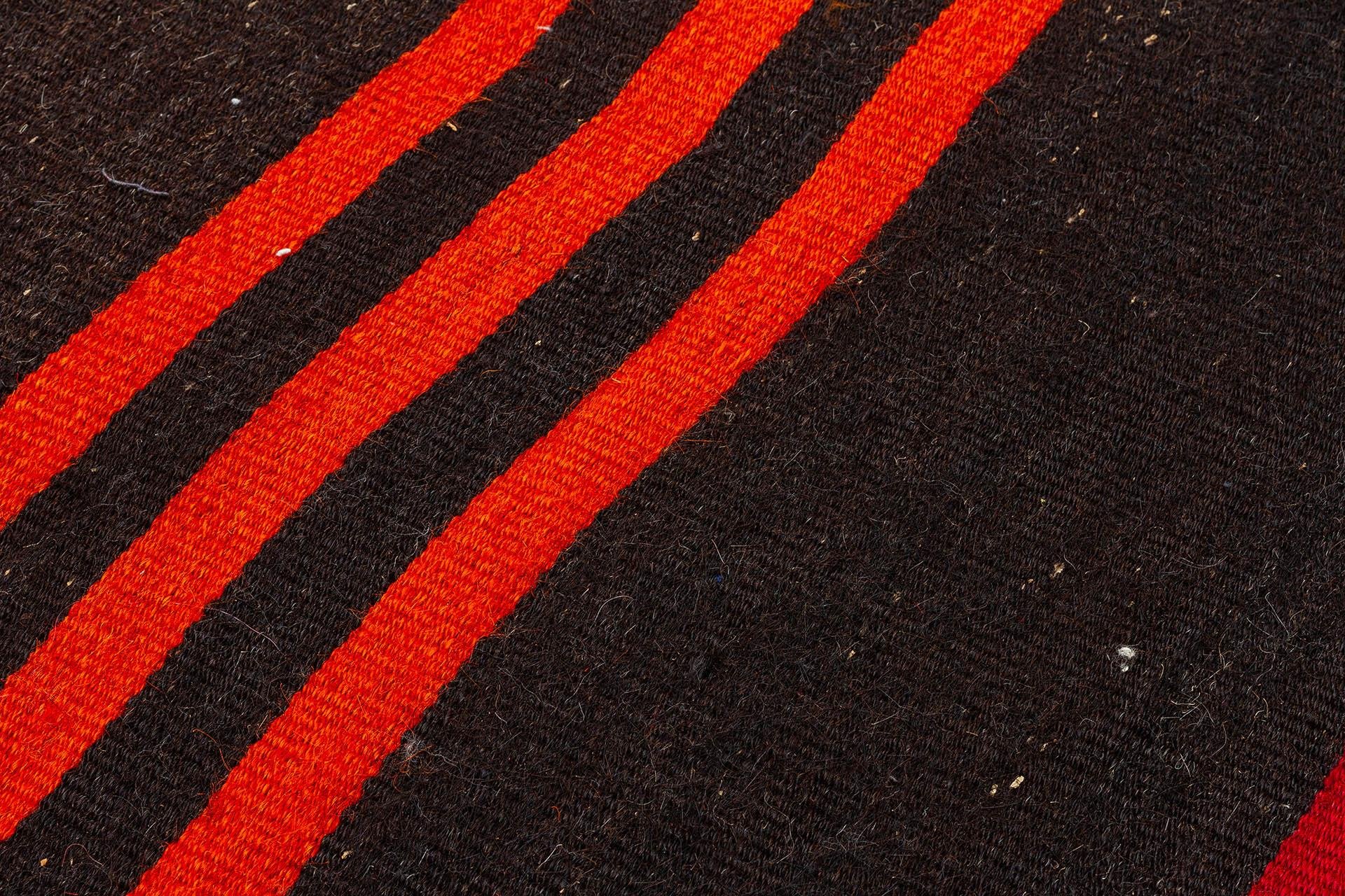 GENELEKSEL EL DOKUMA  KIRMIZI TURUNCU ÇİZGİLİ DESEN YÜN KİLİM