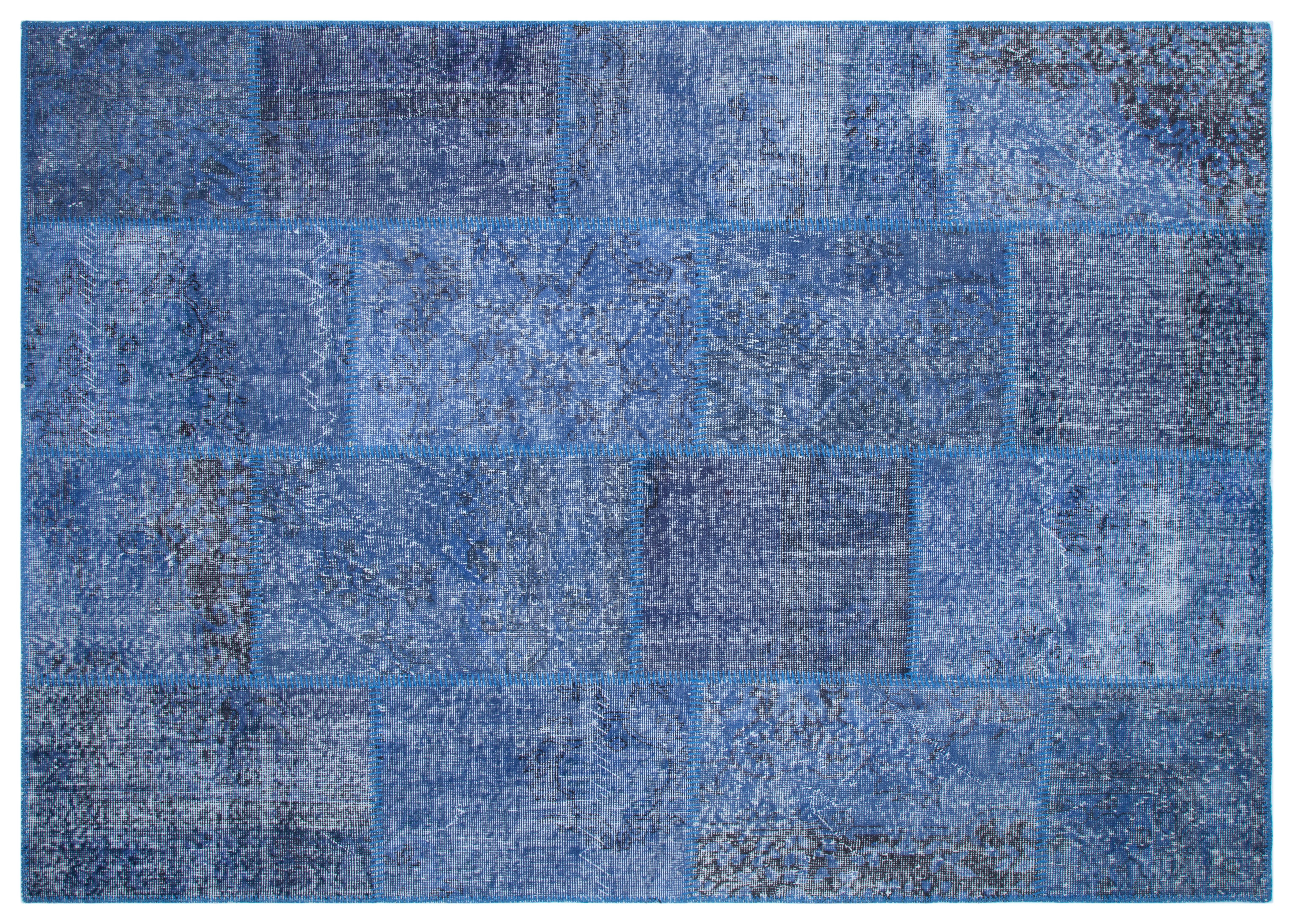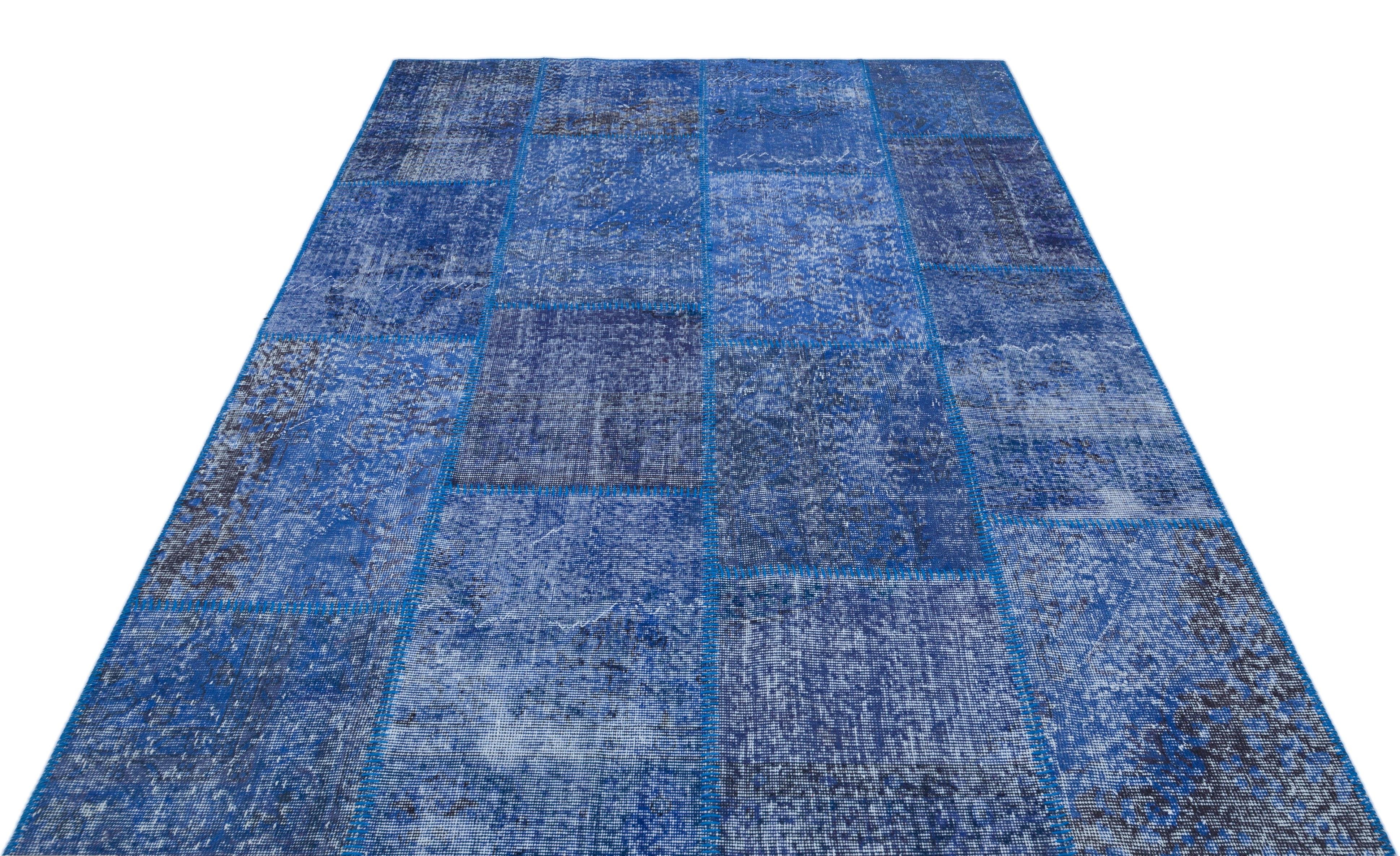 Geneleksel El Dokuma Mavi Rengi Patchwork Halı (420MV)