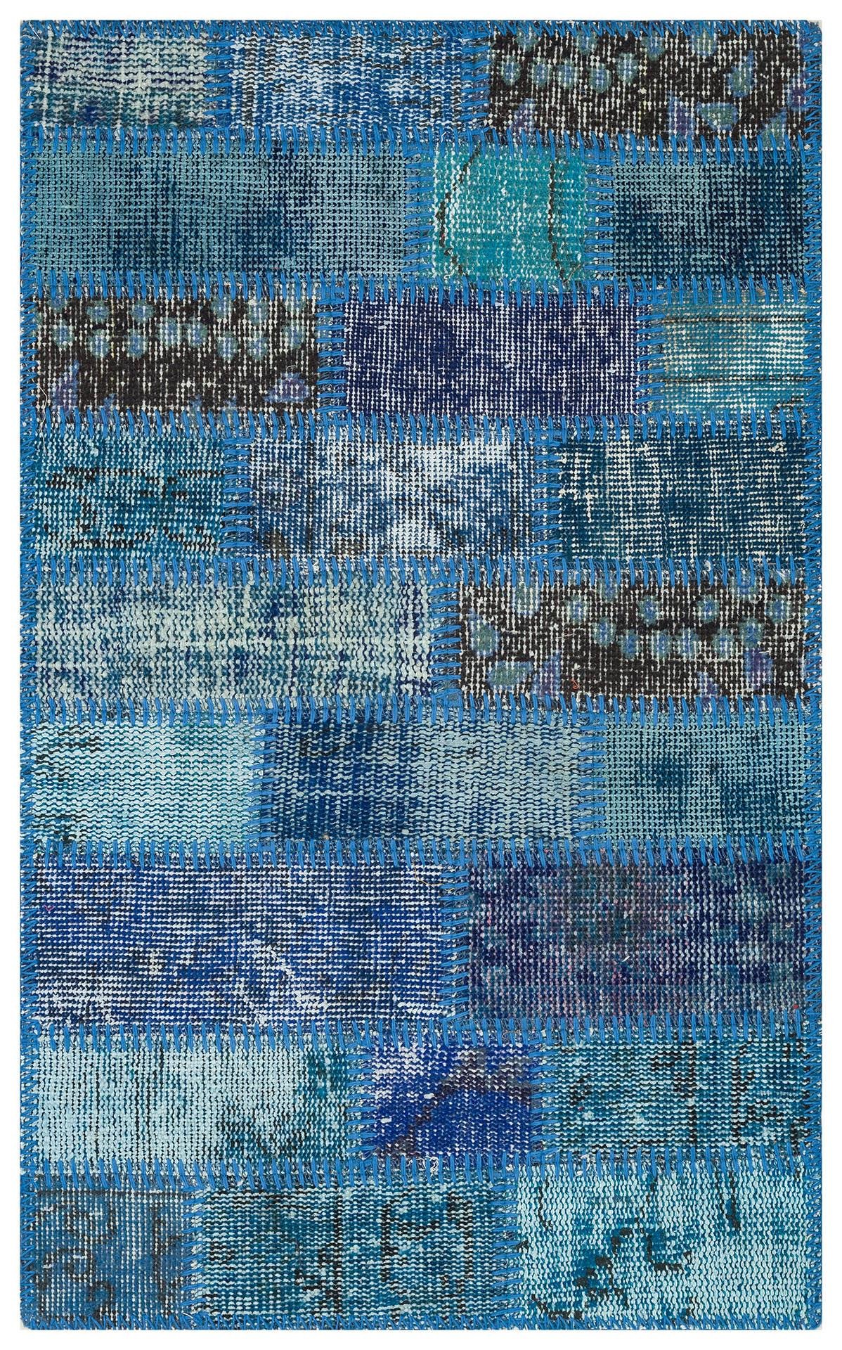 GENELEKSEL EL DOKUMA MAVİ RENGİ PATCHWORK HALI PASPAS (PS -2240)