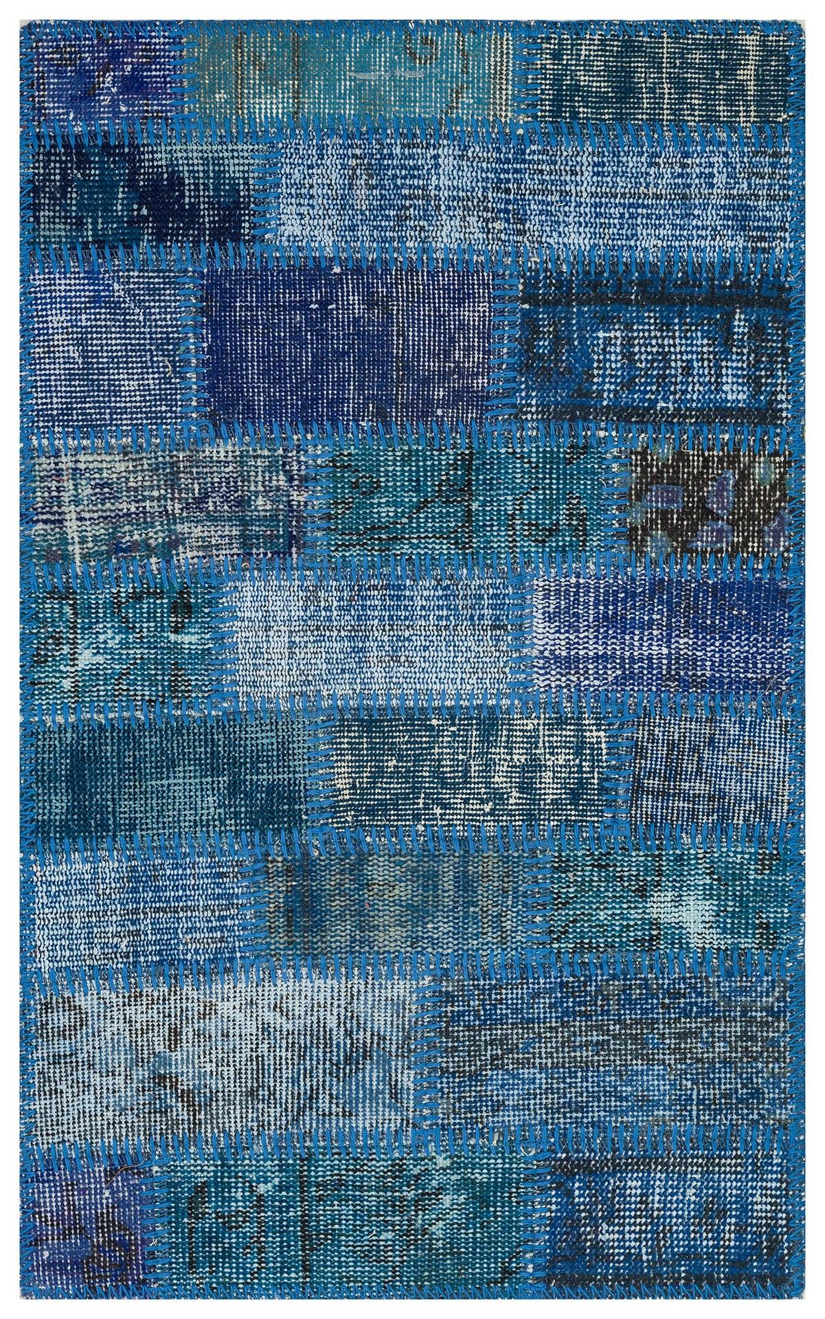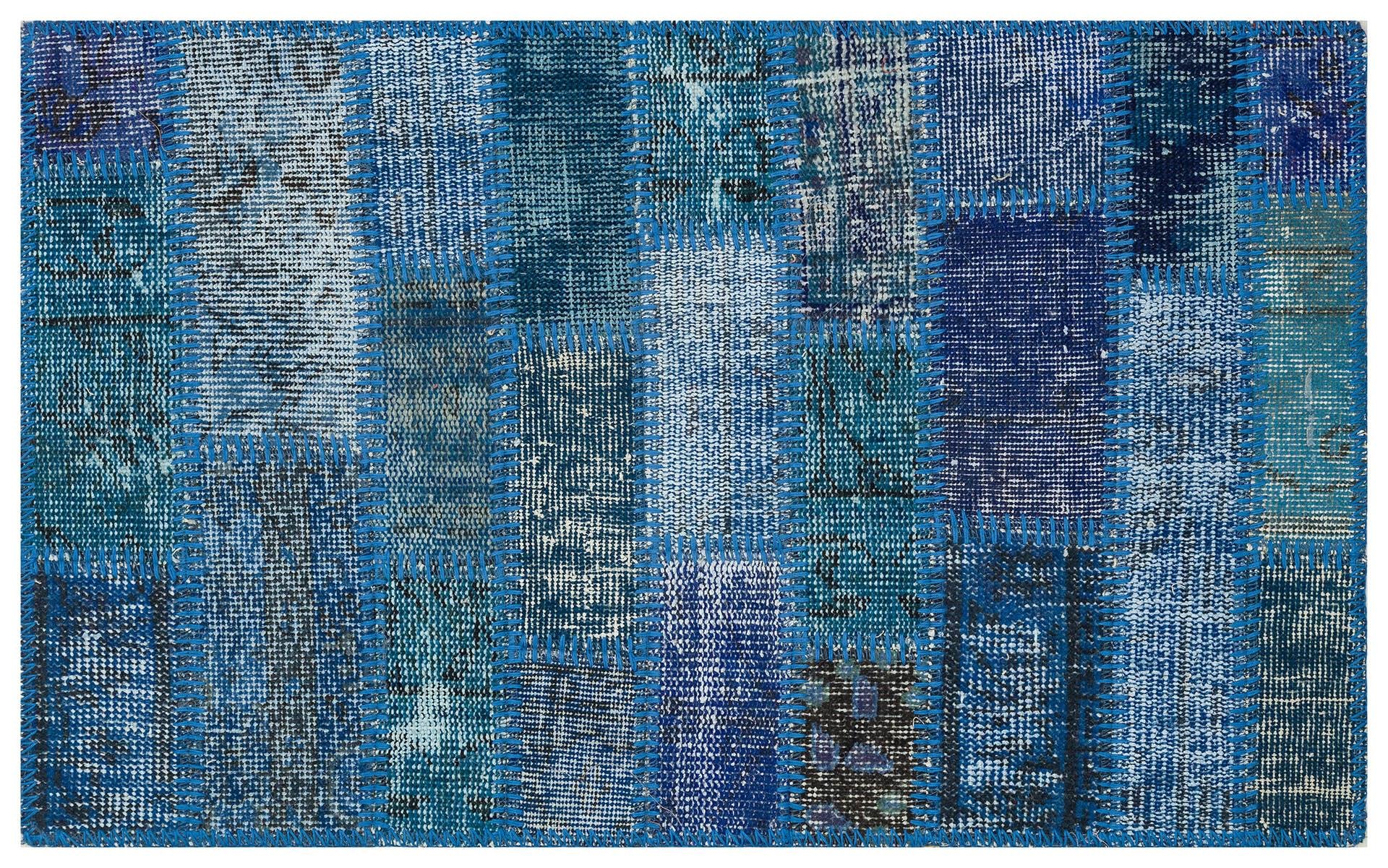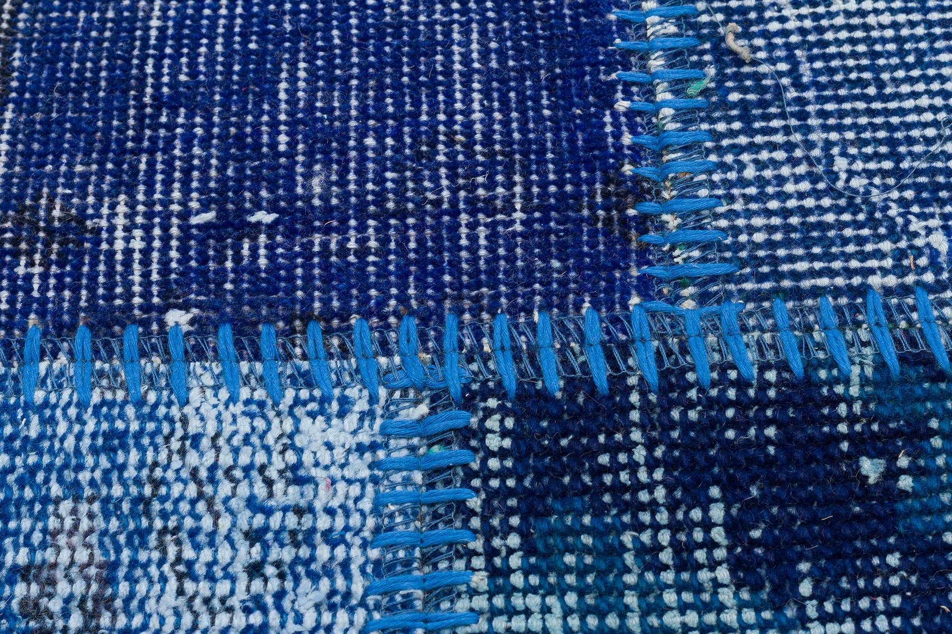 GENELEKSEL EL DOKUMA MAVİ RENGİ PATCHWORK HALI PASPAS (PS -2241)