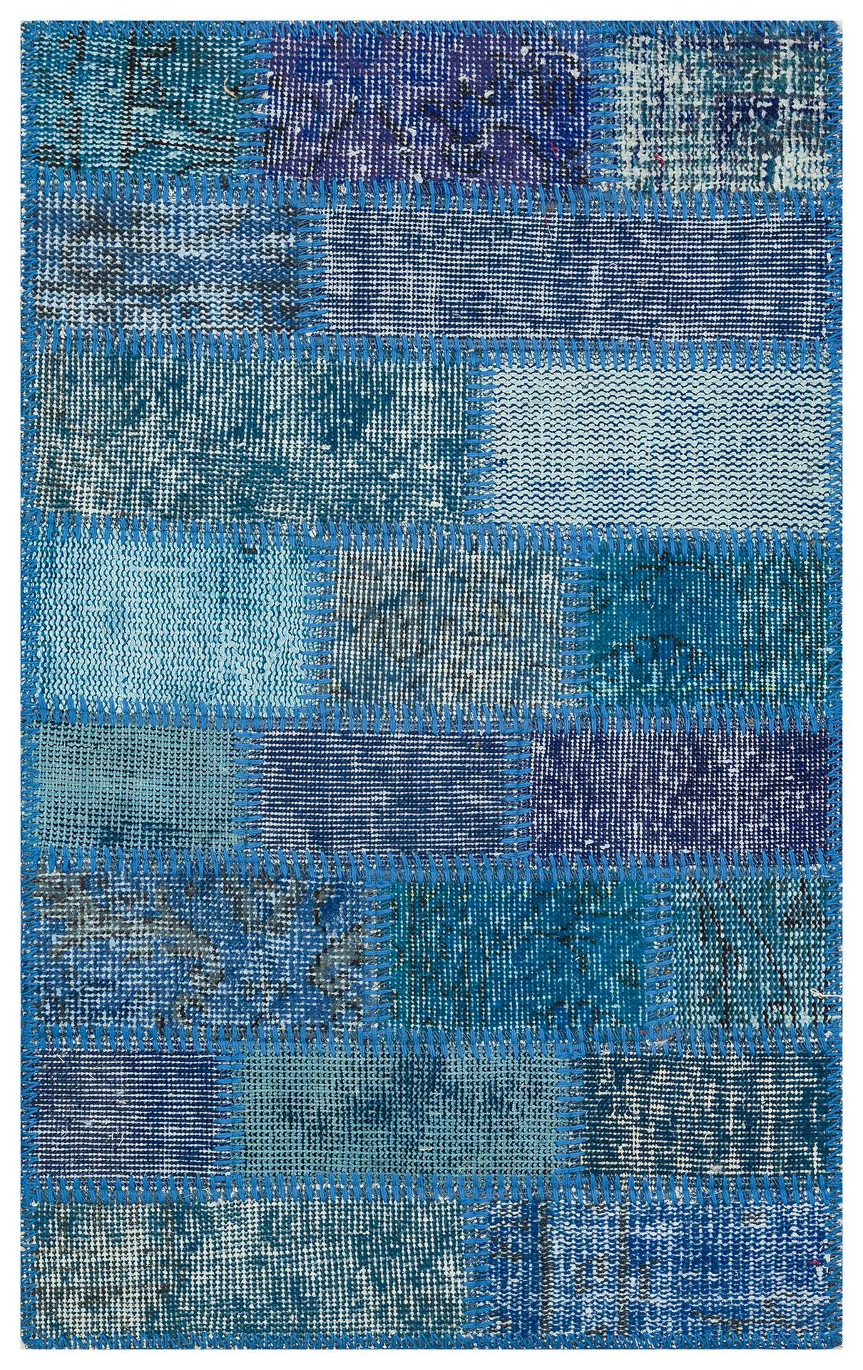 GENELEKSEL EL DOKUMA MAVİ RENGİ PATCHWORK HALI PASPAS (PS -2243)