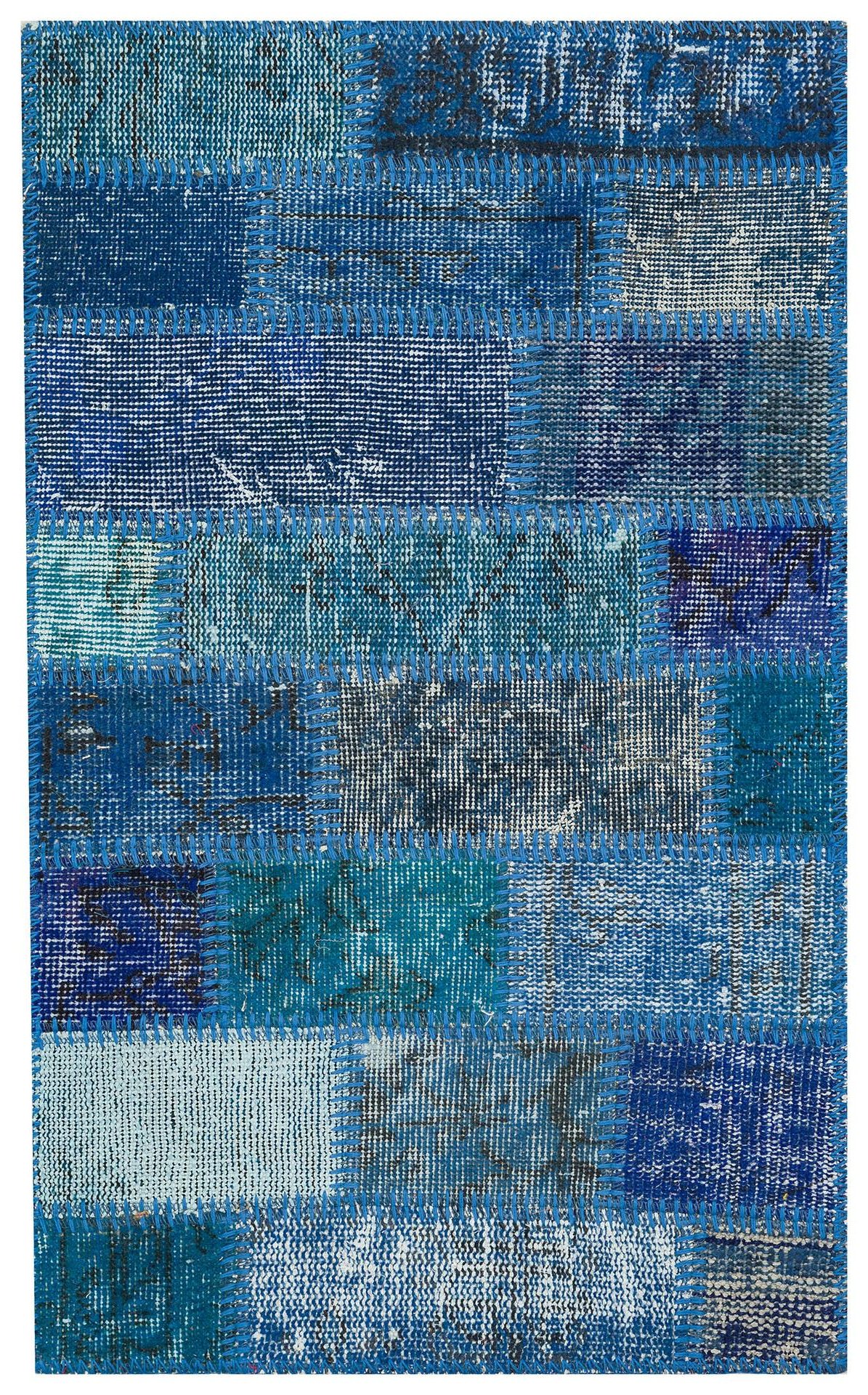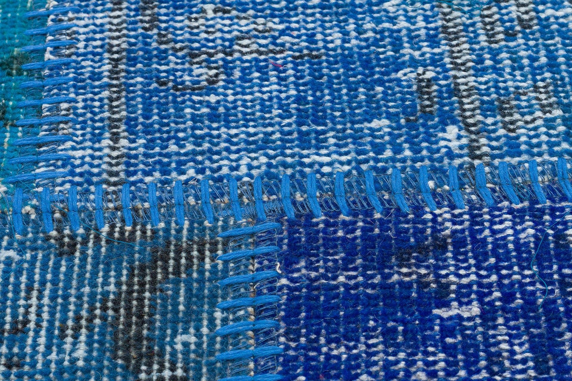 GENELEKSEL EL DOKUMA MAVİ RENGİ PATCHWORK HALI PASPAS (PS -2255)
