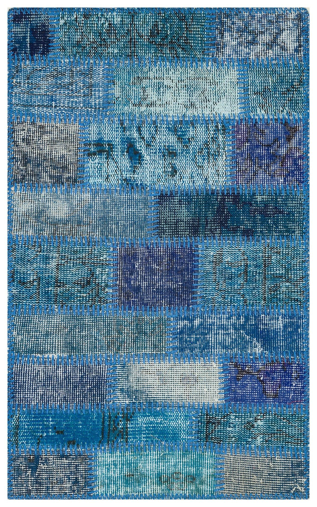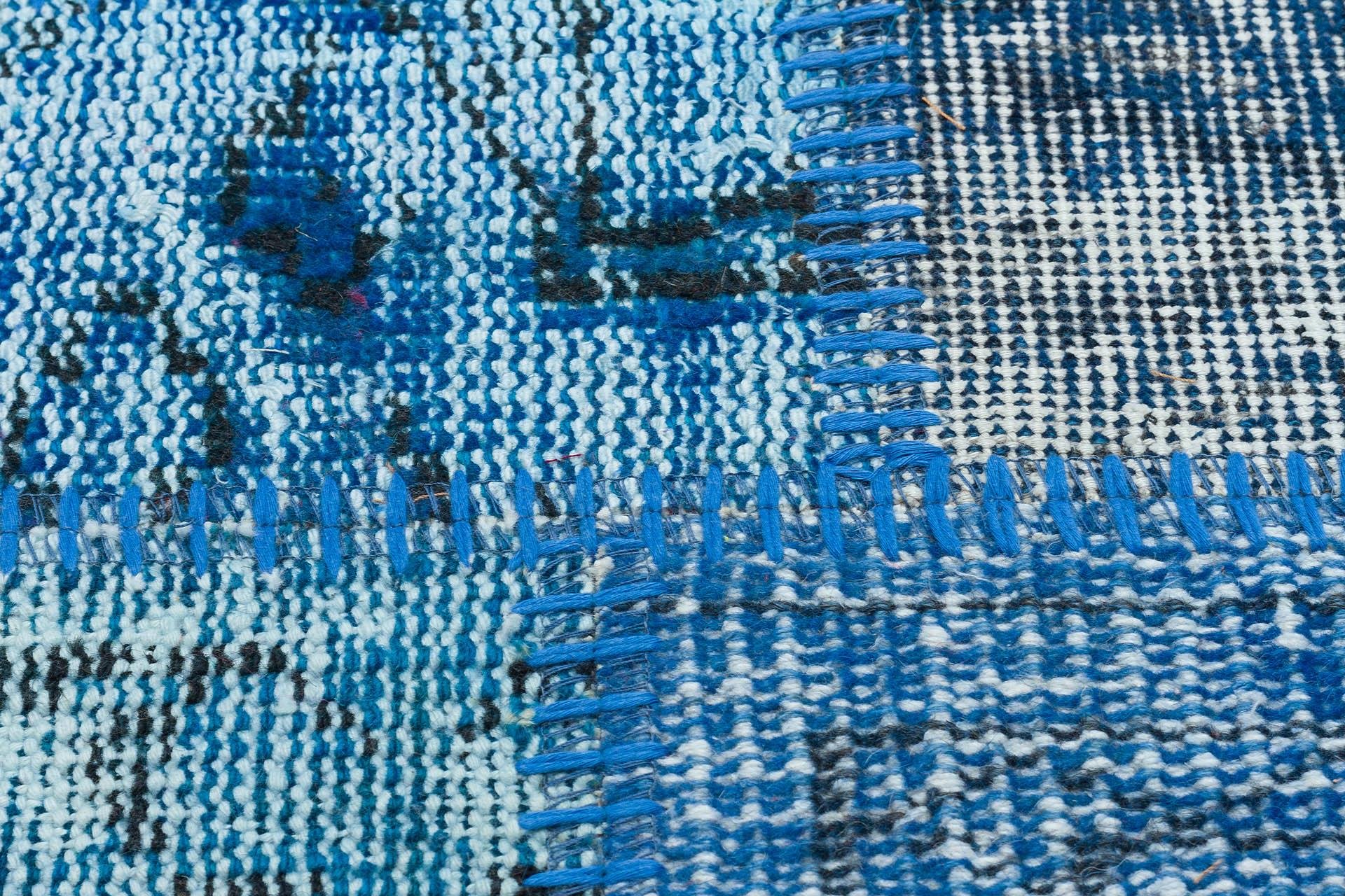GENELEKSEL EL DOKUMA MAVİ RENGİ PATCHWORK HALI PASPAS (PS -2256)