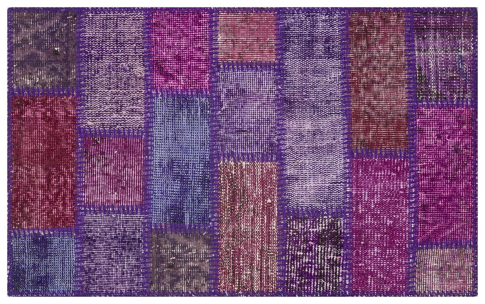 GENELEKSEL EL DOKUMA MOR RENGİ PATCHWORK HALI PASPAS (PS -2235)