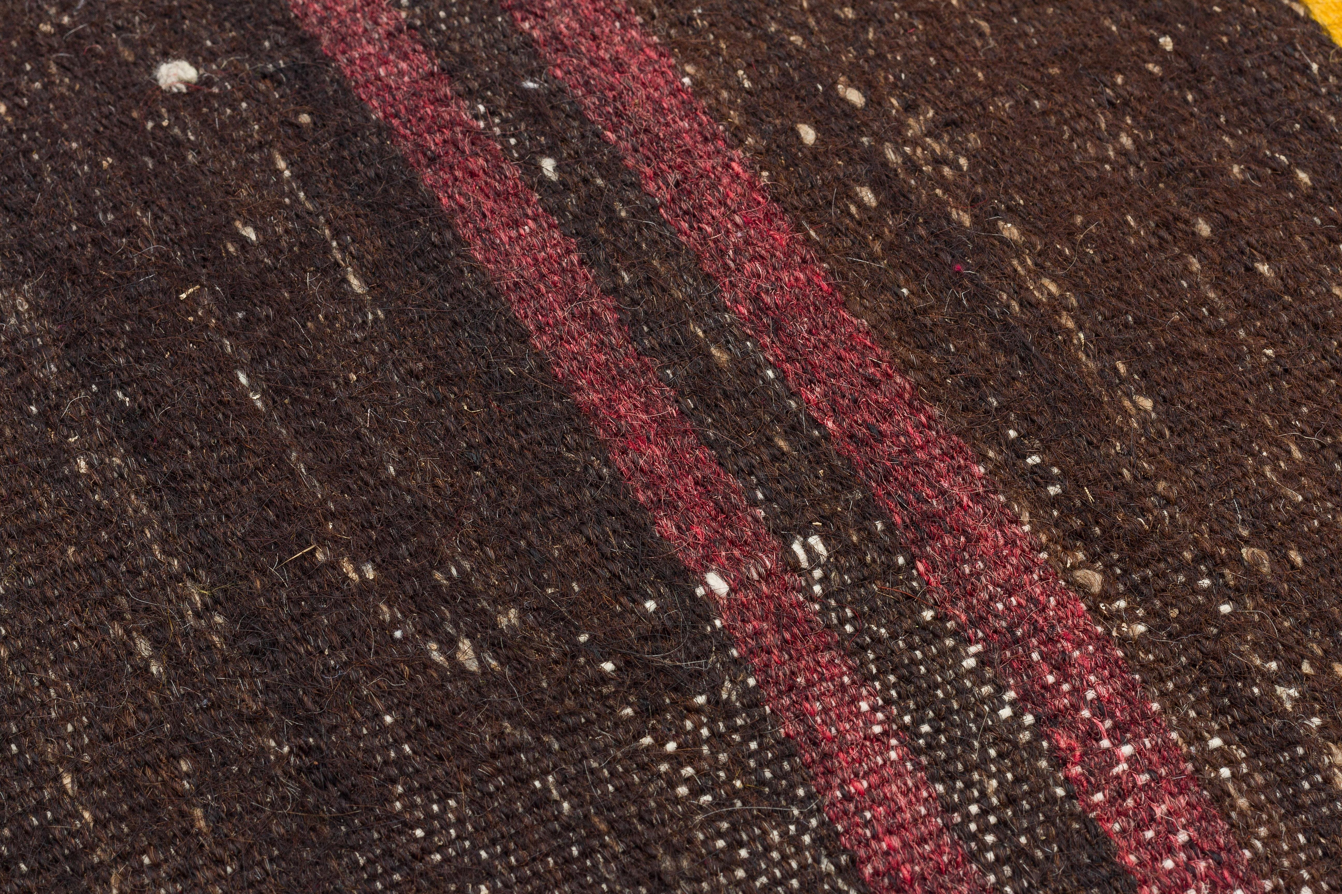 GENELEKSEL EL DOKUMA SARİ BORDO RENGİ ÇİZGİLİ DESEN KİLİM PASPAS