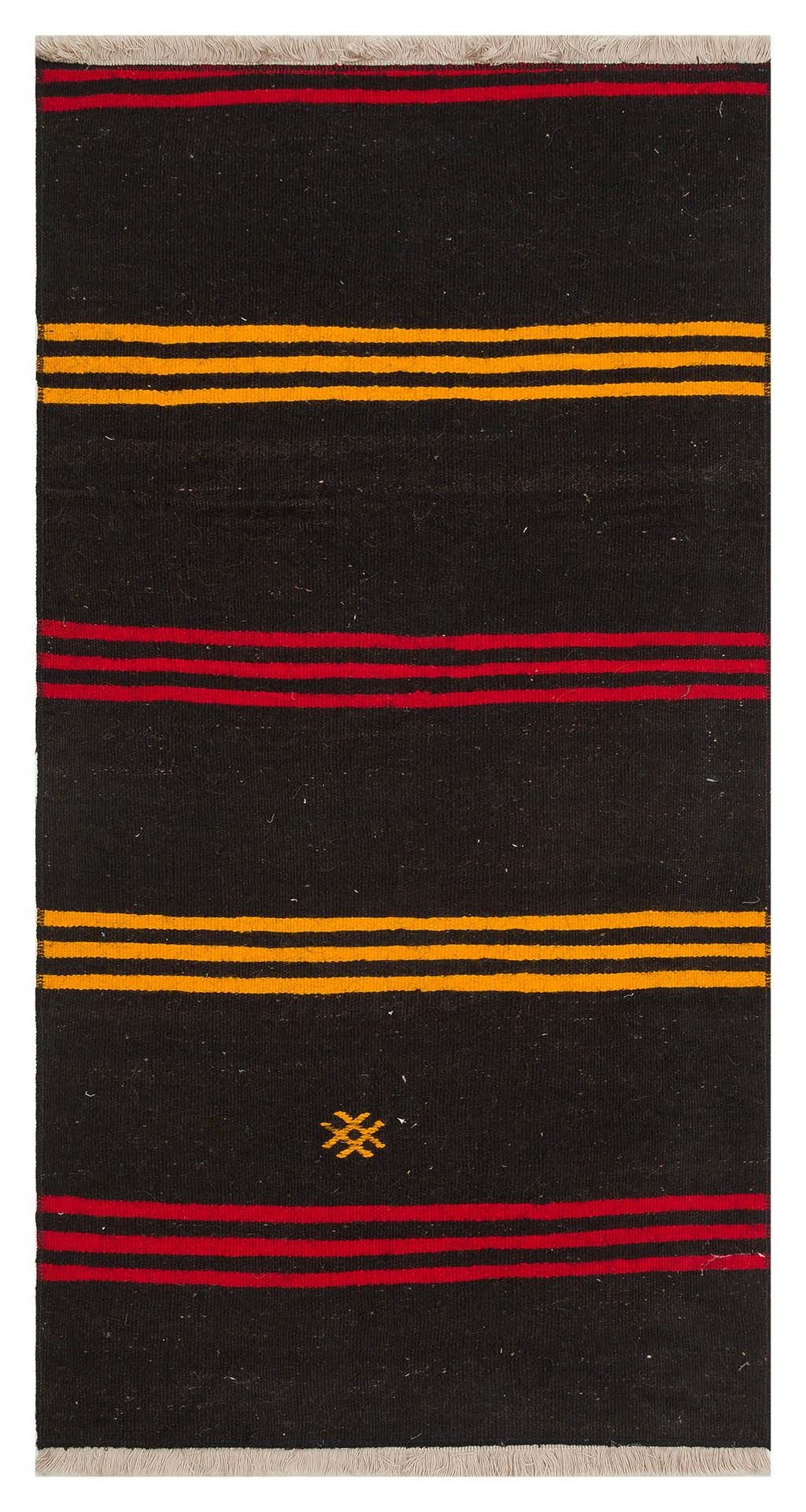 GENELEKSEL EL DOKUMA SARİ KIRMIZI RENGİ ÇİZGİLİ DESEN KİLİM (KL-13057)
