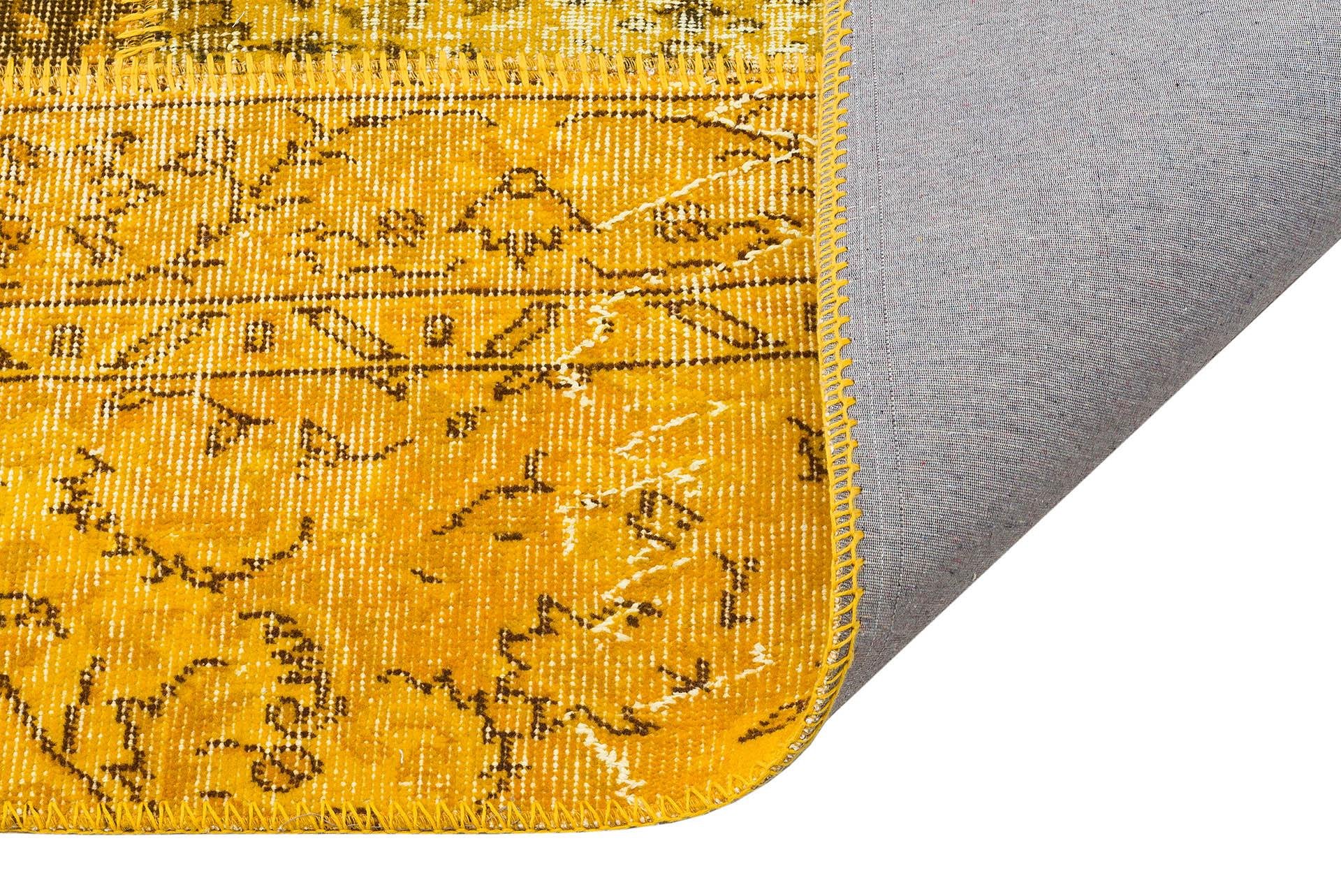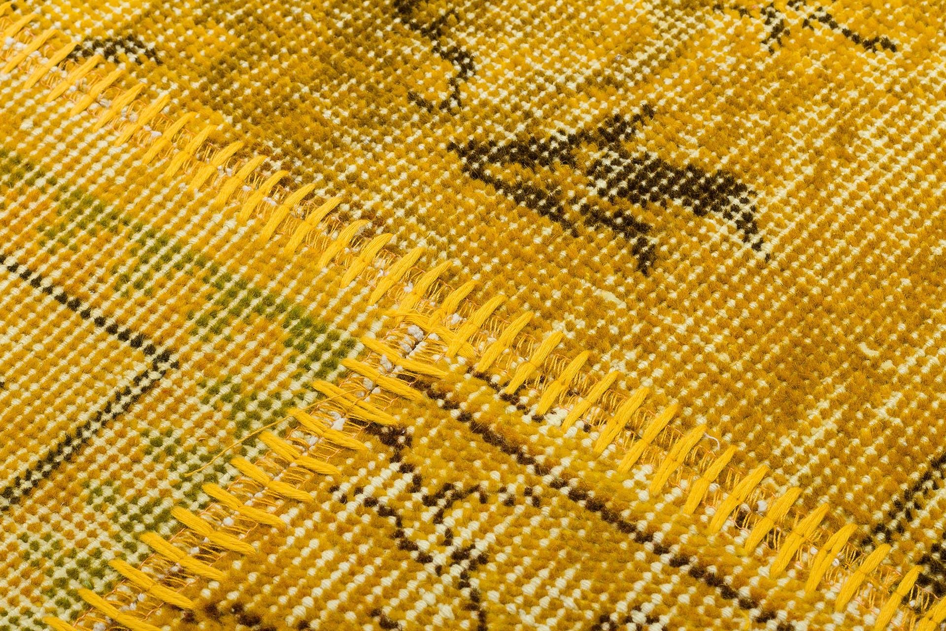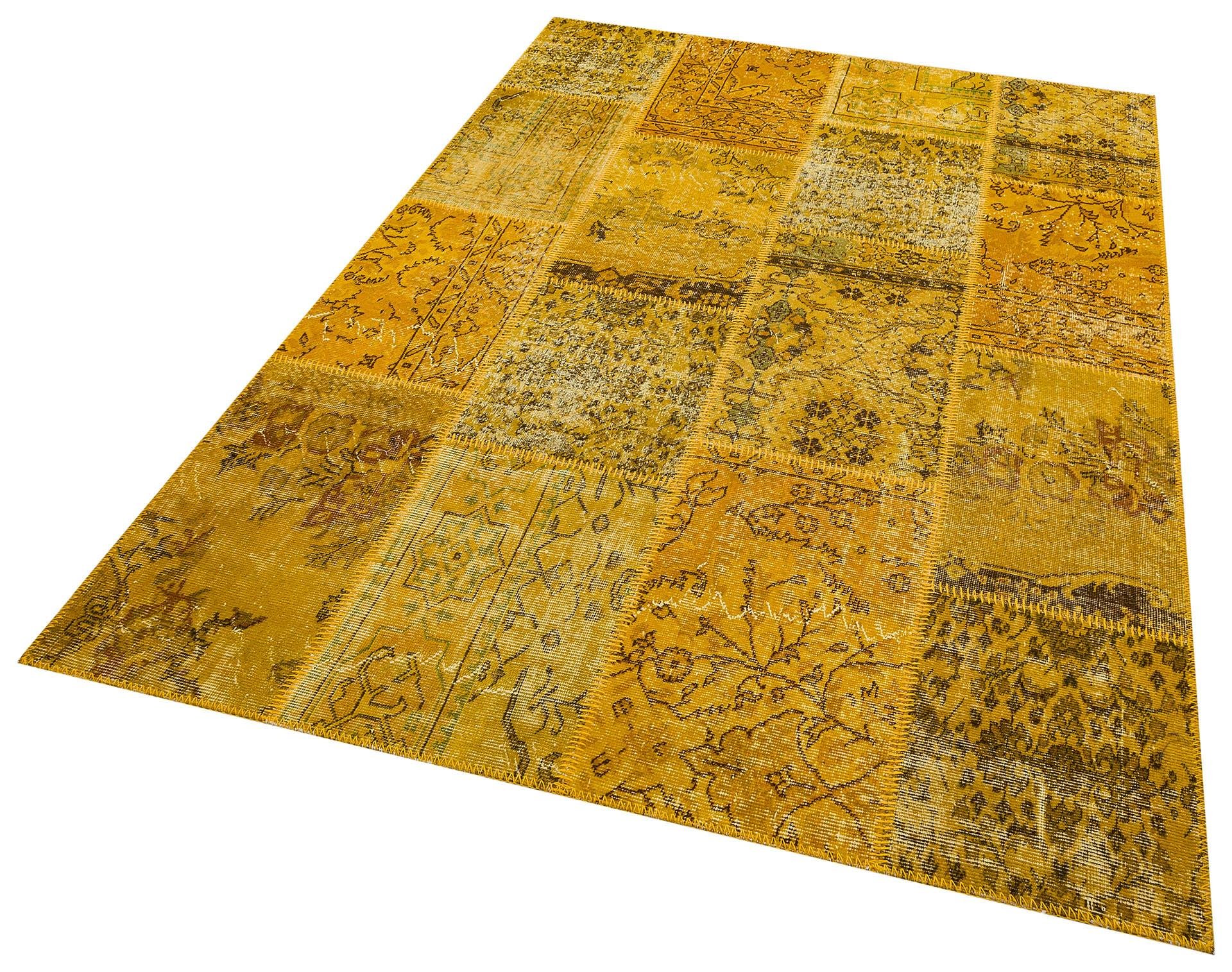 Geneleksel El Dokuma Sari Rengi Patchwork Halı (724SR)