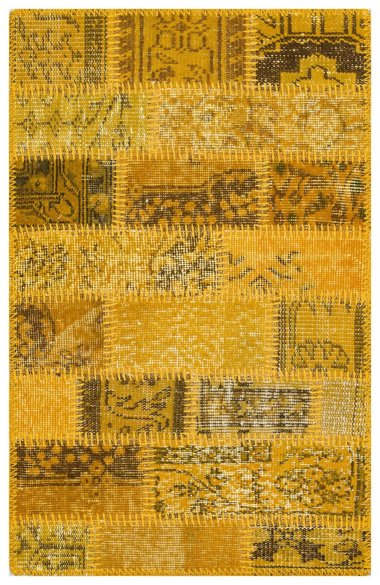 GENELEKSEL EL DOKUMA SARİ RENGİ PATCHWORK HALI PASPAS (PS -2253)