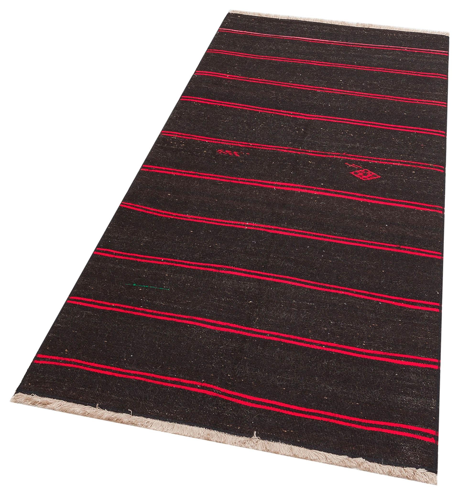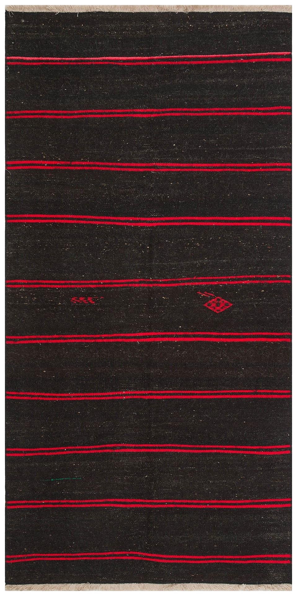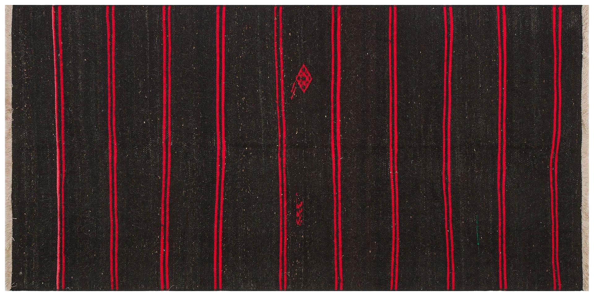 GENELEKSEL EL DOKUMA SİYAH KİRMİZİ RENGİ ÇİZGİLİ DESEN KİLİM (KL-4205)