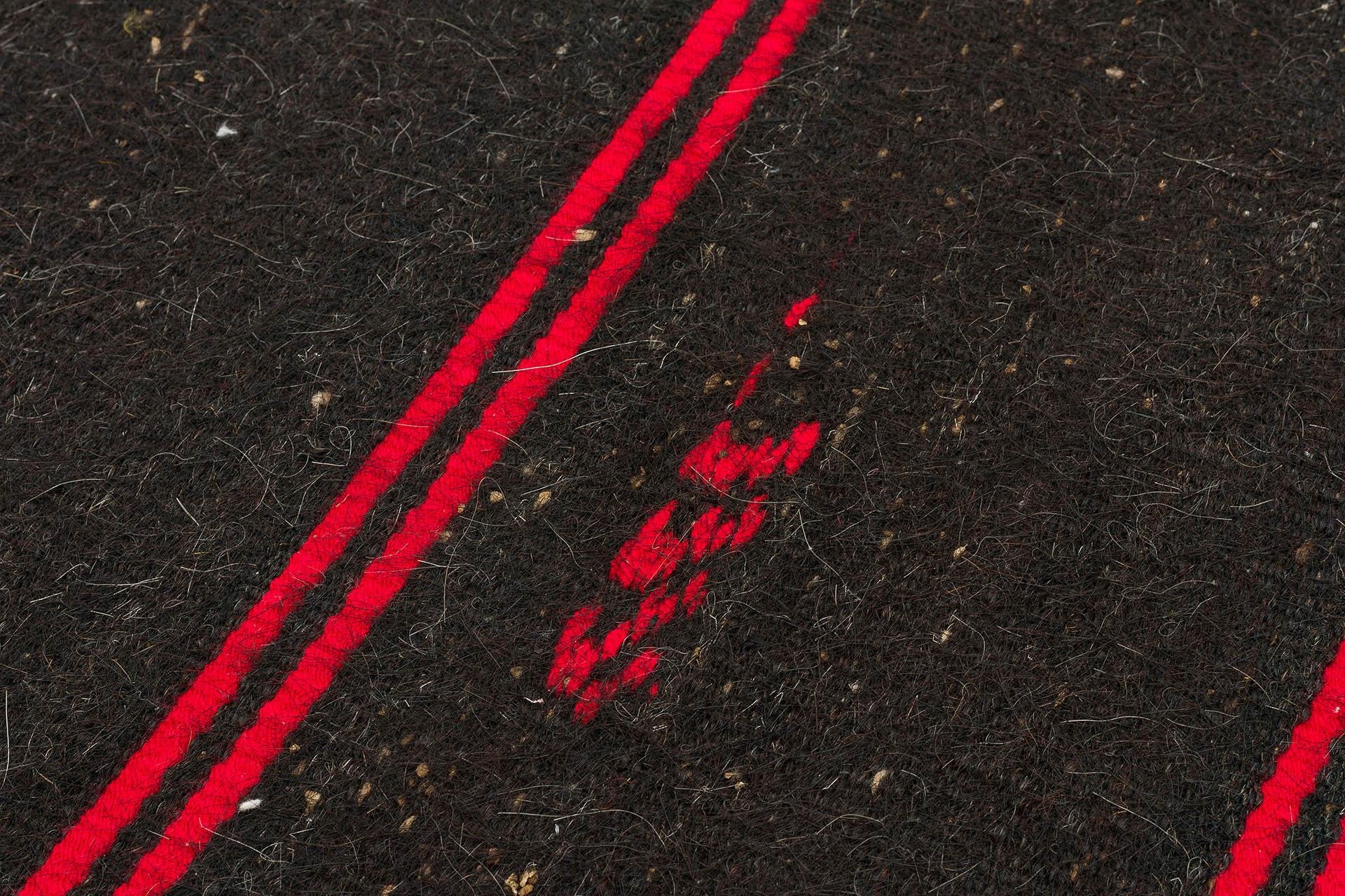 GENELEKSEL EL DOKUMA SİYAH KİRMİZİ RENGİ ÇİZGİLİ DESEN KİLİM