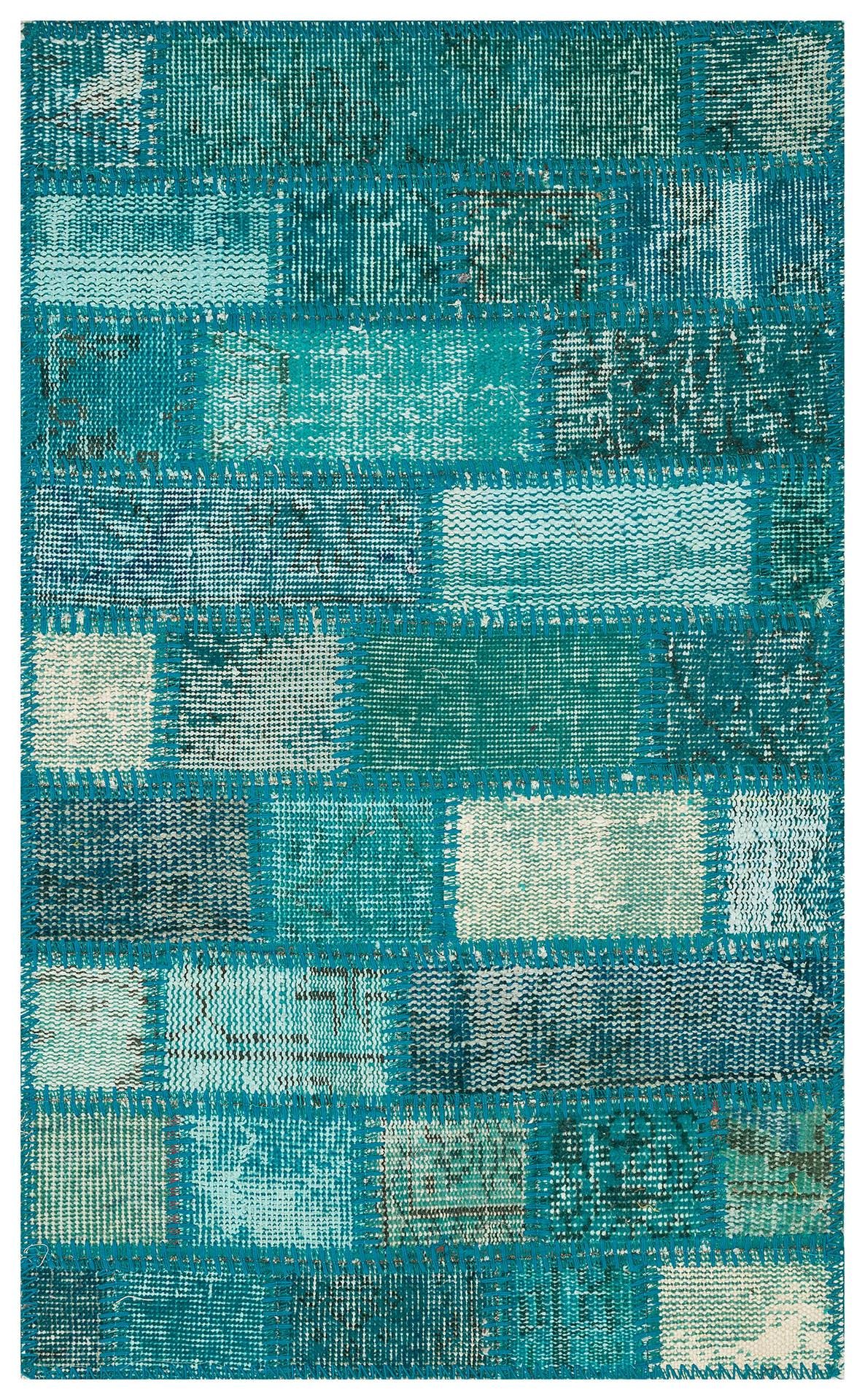 GENELEKSEL EL DOKUMA TURKUAZ RENGİ PATCHWORK HALI PASPAS (PS -2238)
