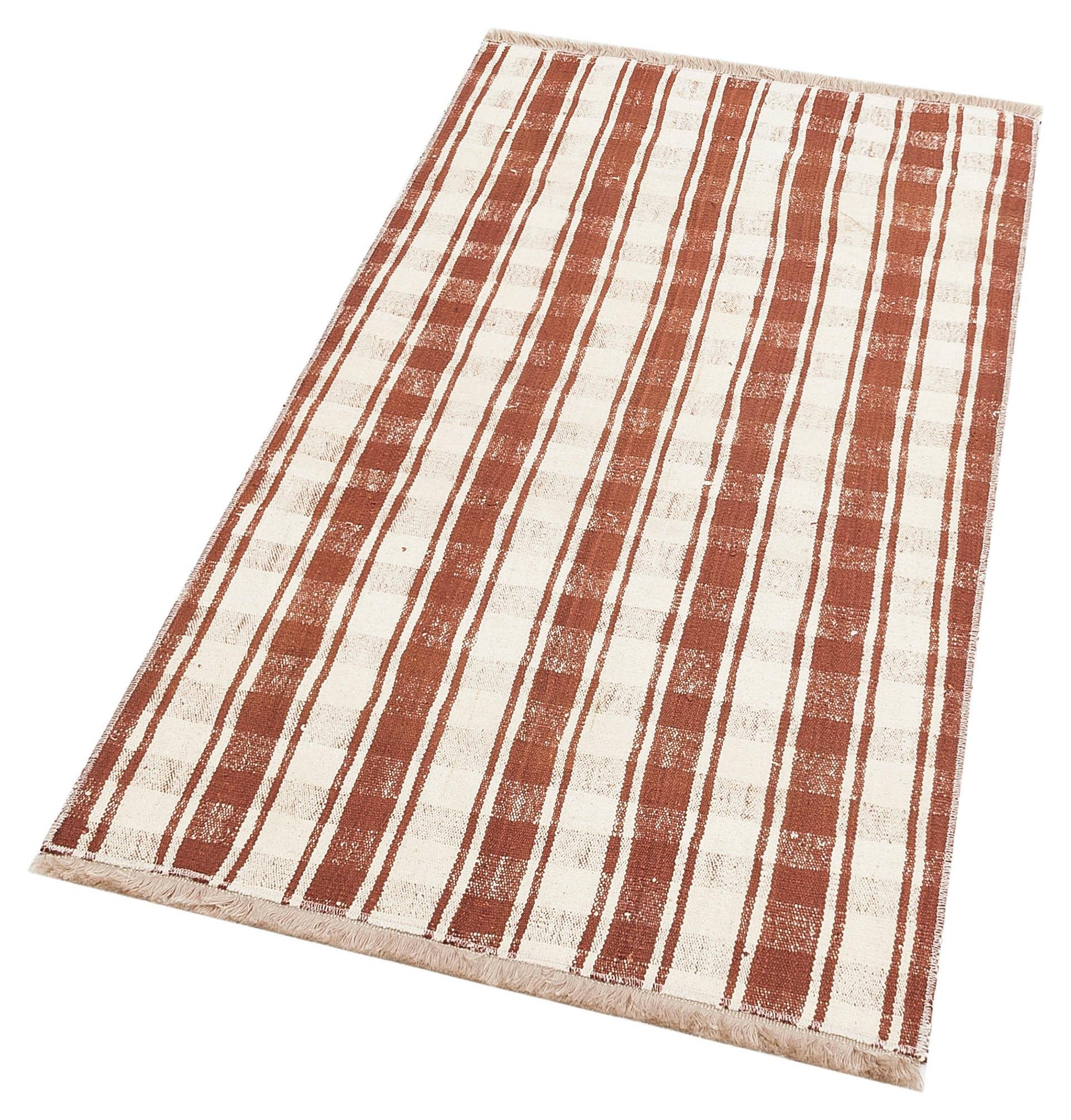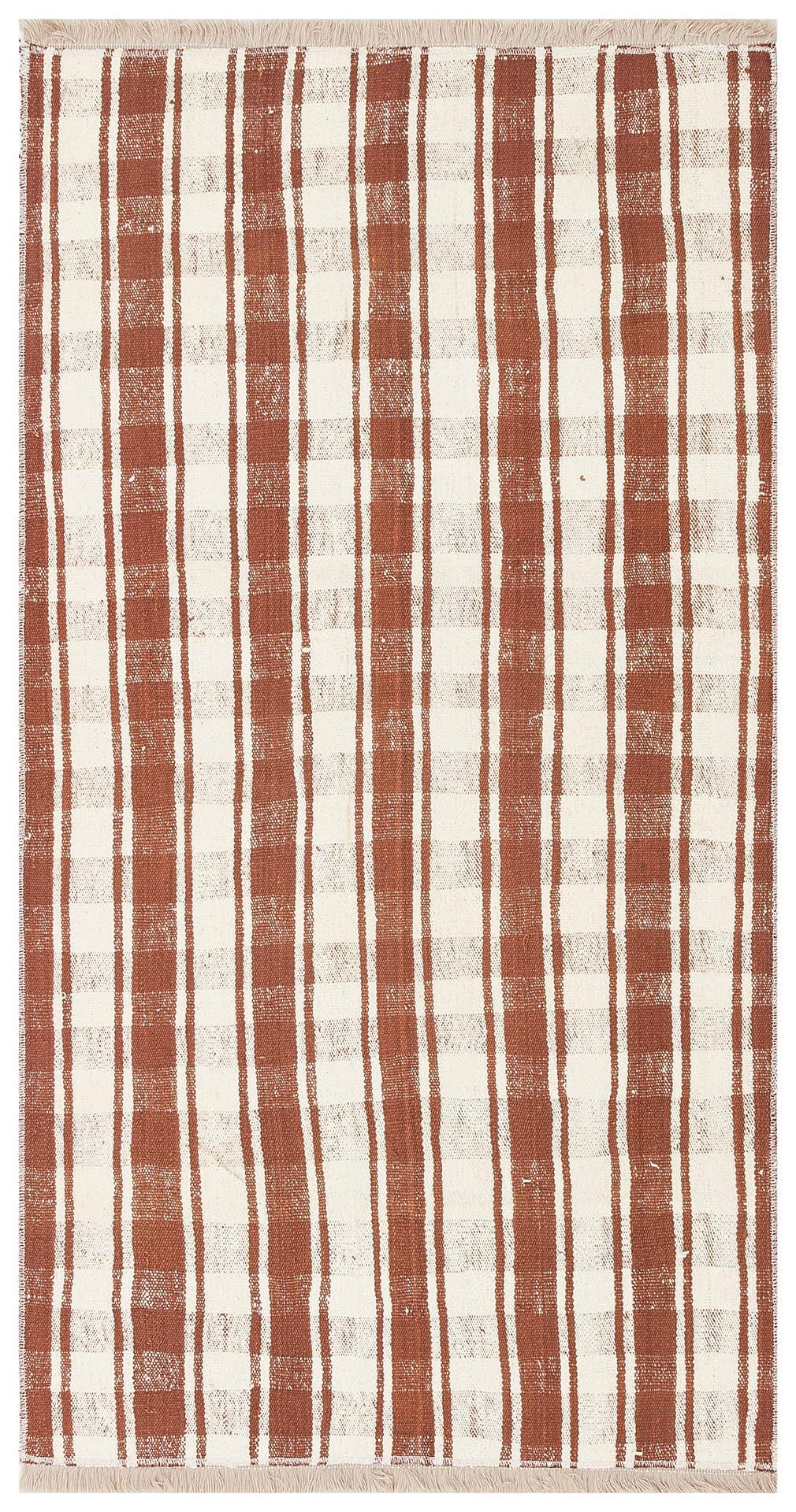 GERÇEK EL DOKUMA BEYAZ KAHVERENGİ KENDİR KİLİMİ (KL-11871)