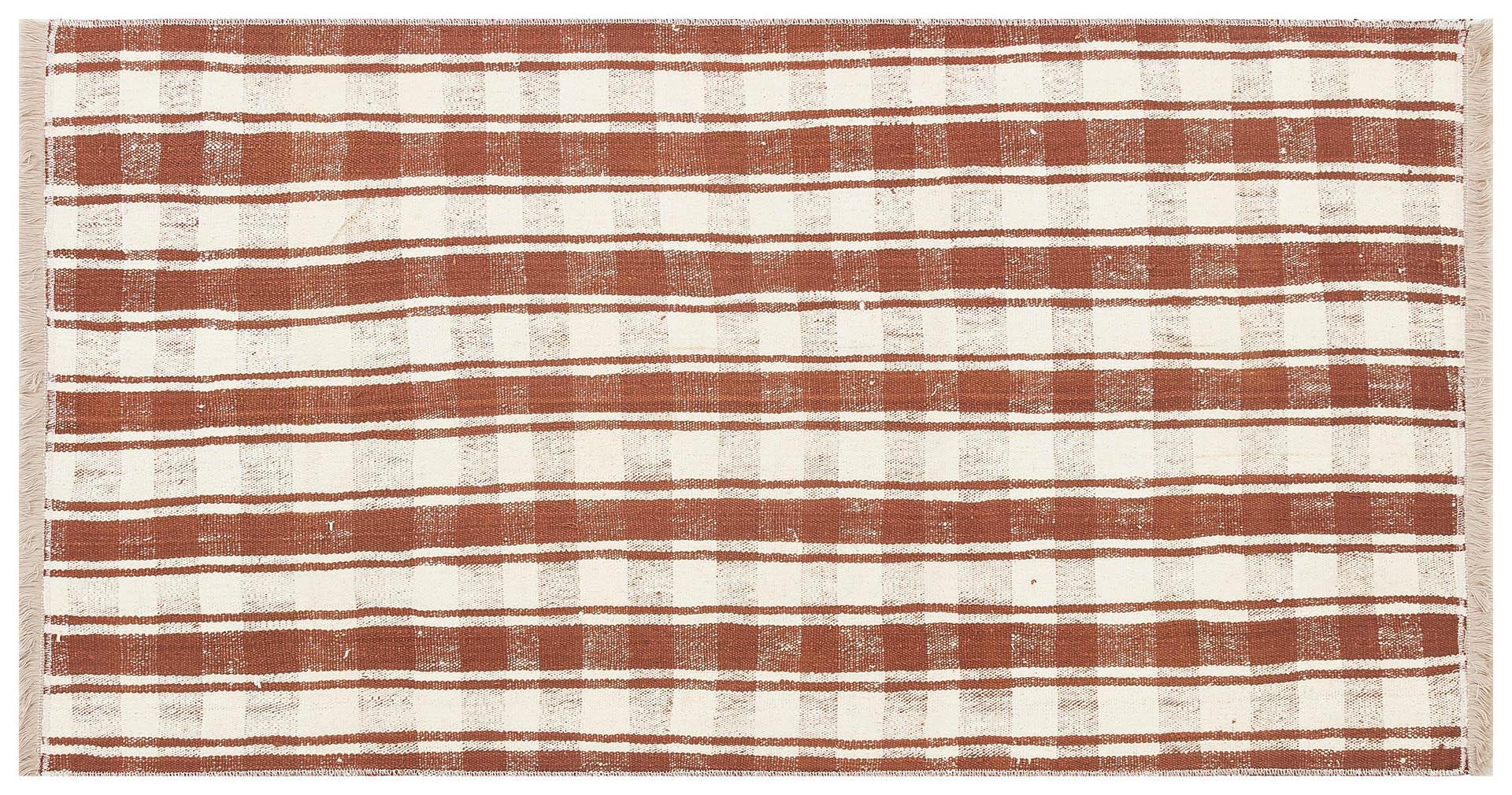 GERÇEK EL DOKUMA BEYAZ KAHVERENGİ KENDİR KİLİMİ
