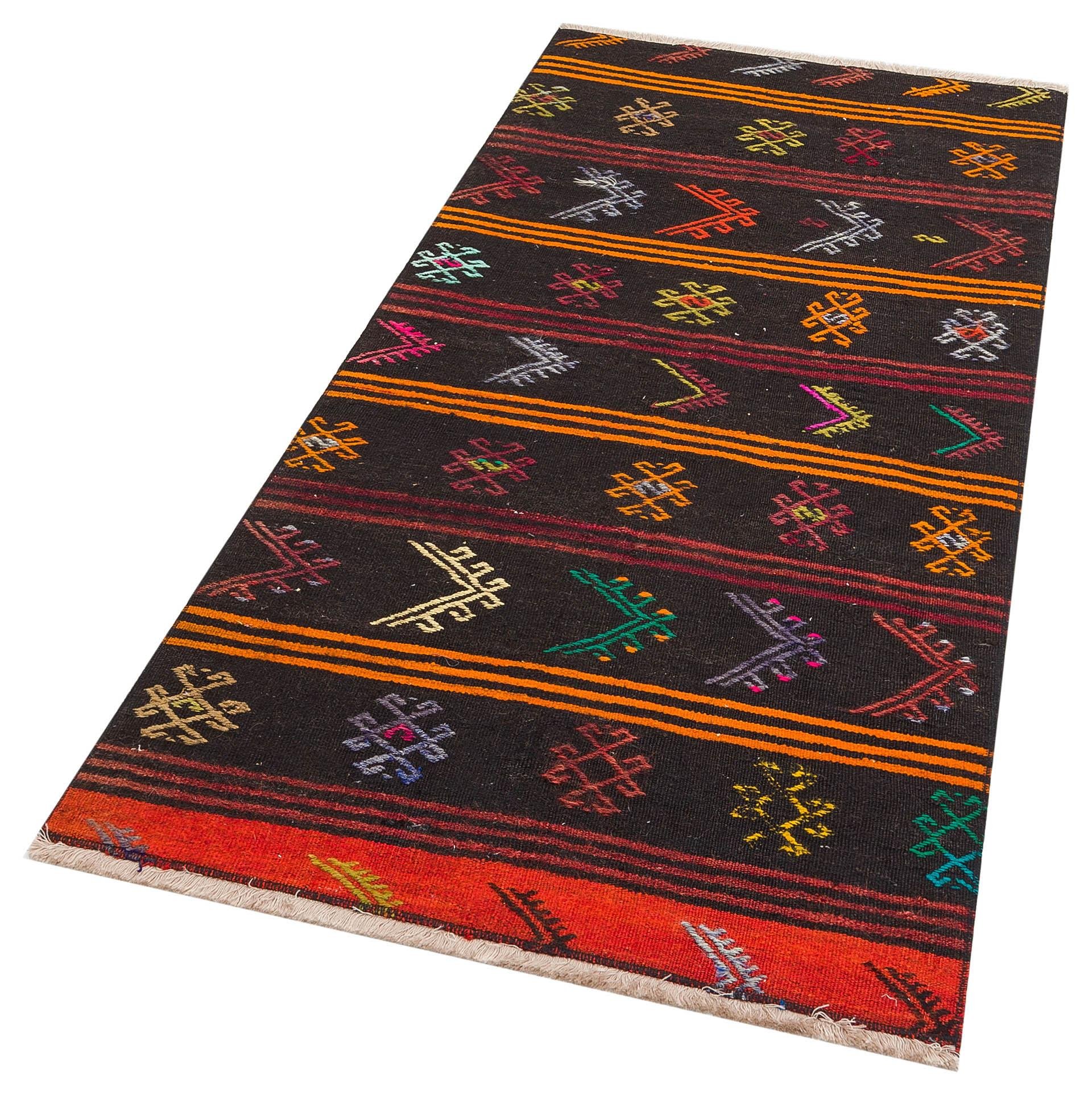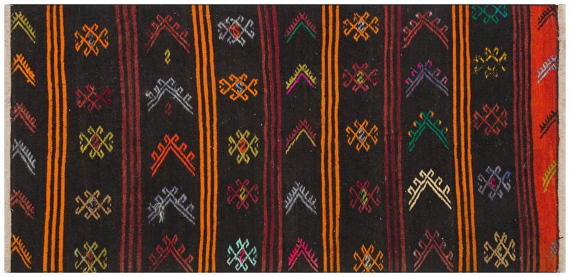 GERÇEK EL DOKUMA ÇOK RENKLİ ÇİÇEKLİ DESEN KEÇİ YÜN KİLİM (KL-4111)