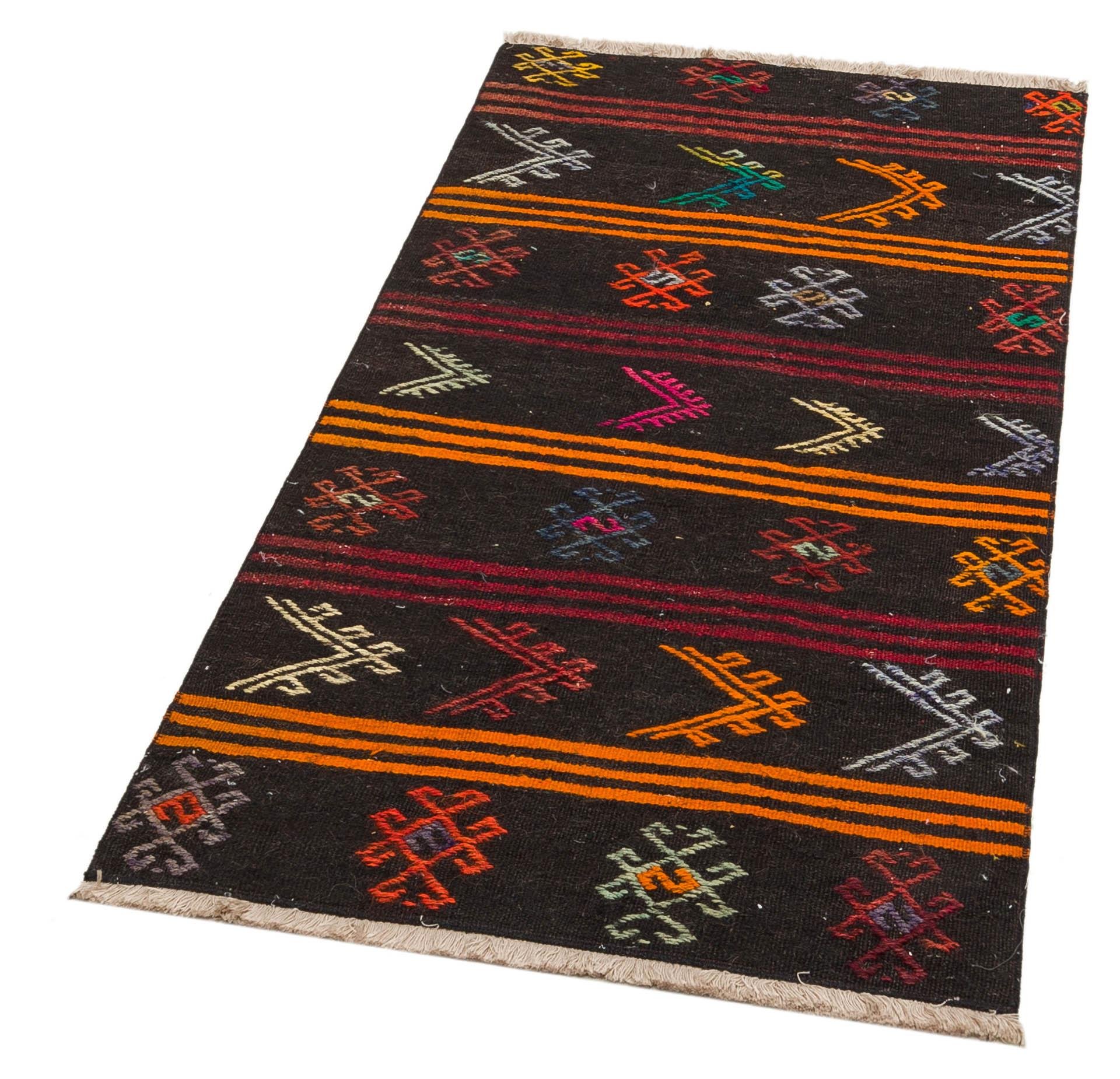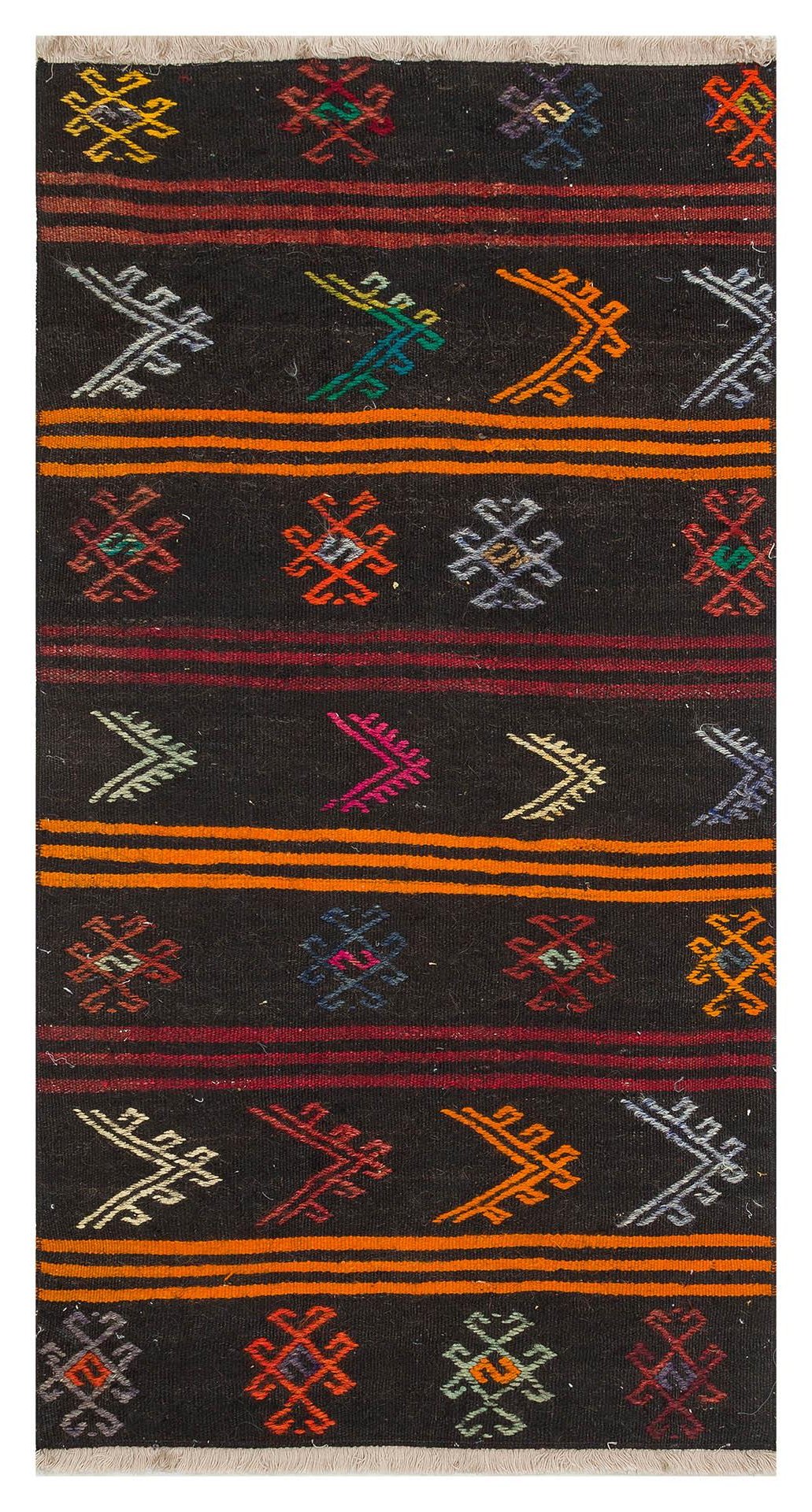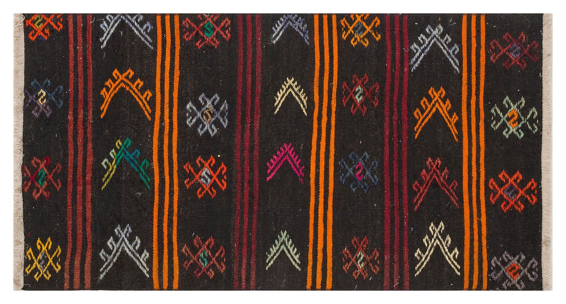GERÇEK EL DOKUMA ÇOK RENKLİ ÇİÇEKLİ YÜN KİLİM (KL-13043)