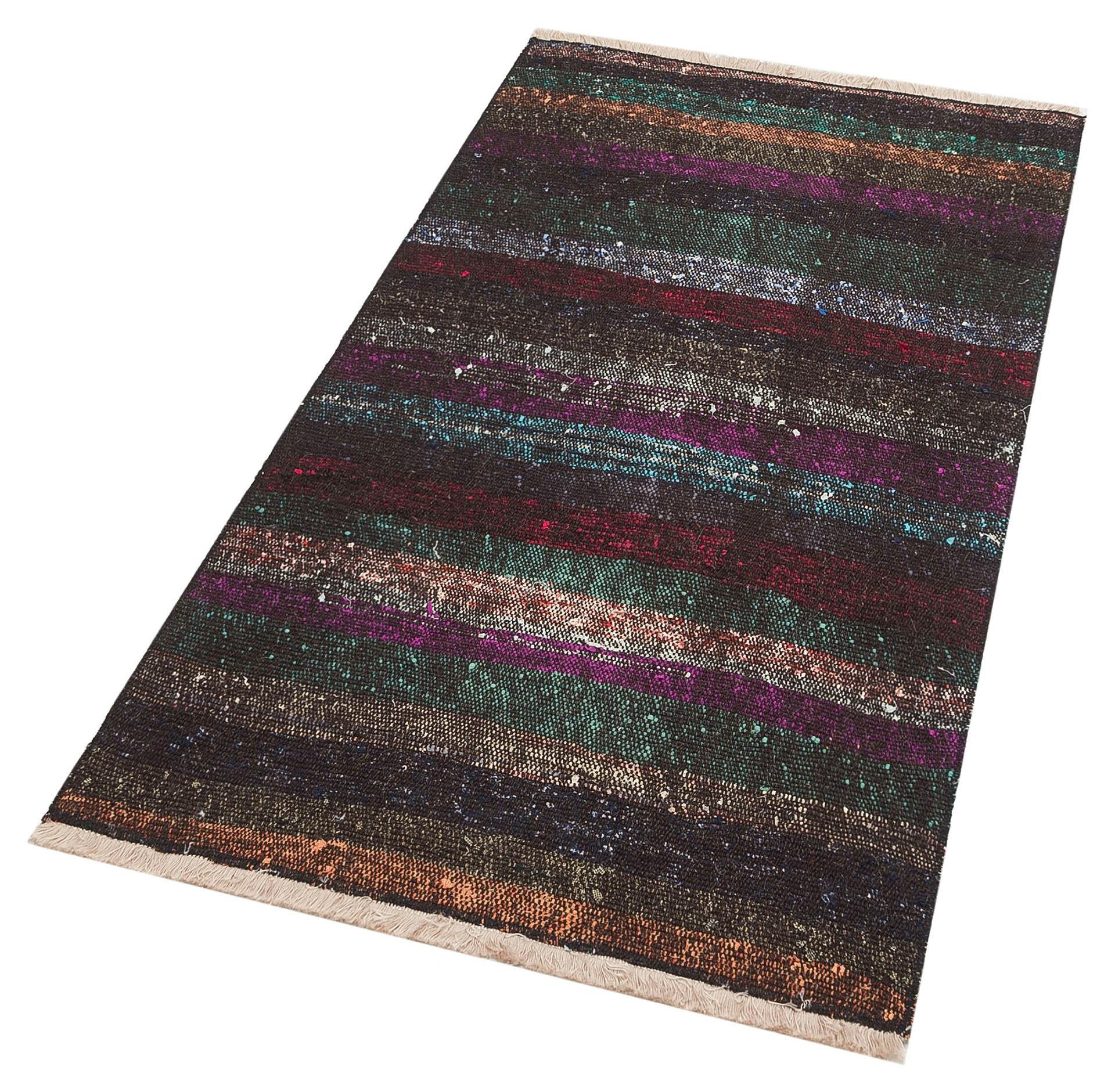 GERÇEK EL DOKUMA ÇOK RENKLİ DESEN KEÇİ KILI YÜN KİLİMİ (KL-11904)